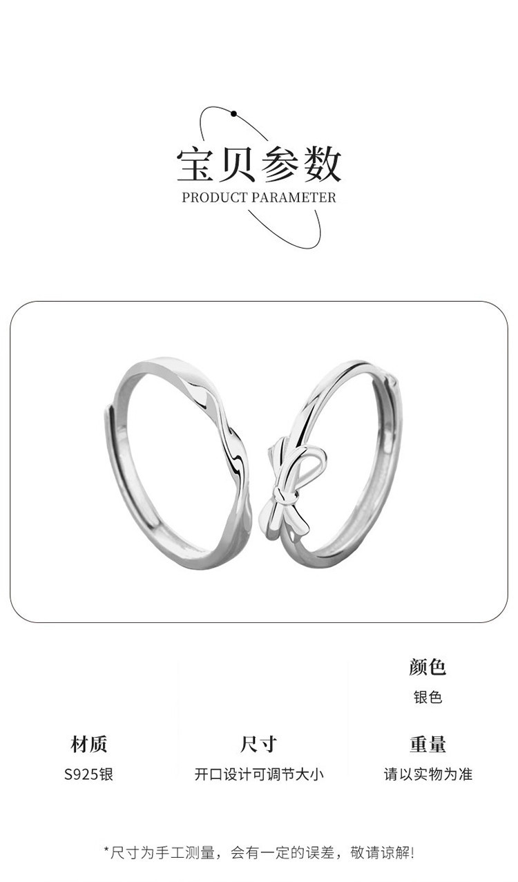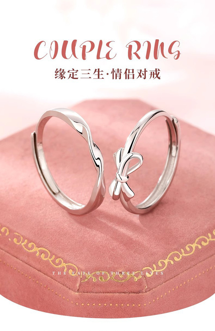 商品名称:S925银缘定三生情侣戒指轻奢小众设计感对戒情人礼物 468225