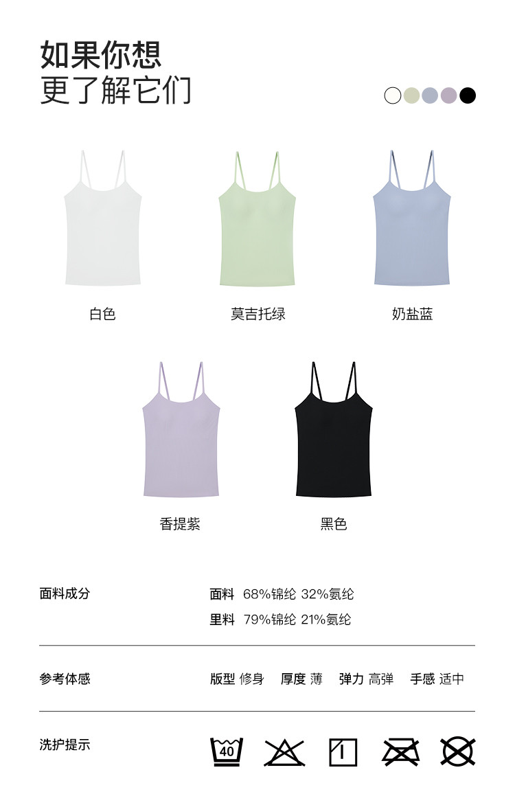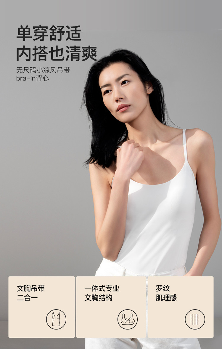 商品名称:【刘雯同款】无尺码带胸垫一体式免穿内衣吊带内搭打底背心女 708864