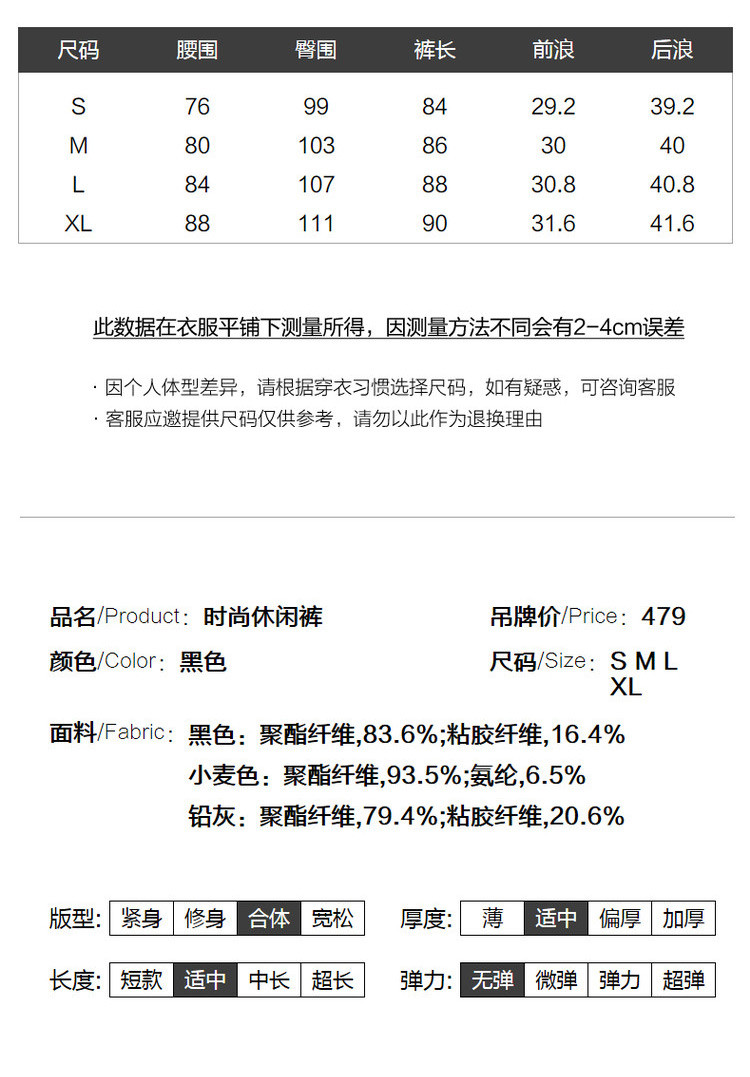 商品名称:【时髦指数爆表】春秋中腰九分裤哈伦裤女裤压褶休闲裤子女 193601
