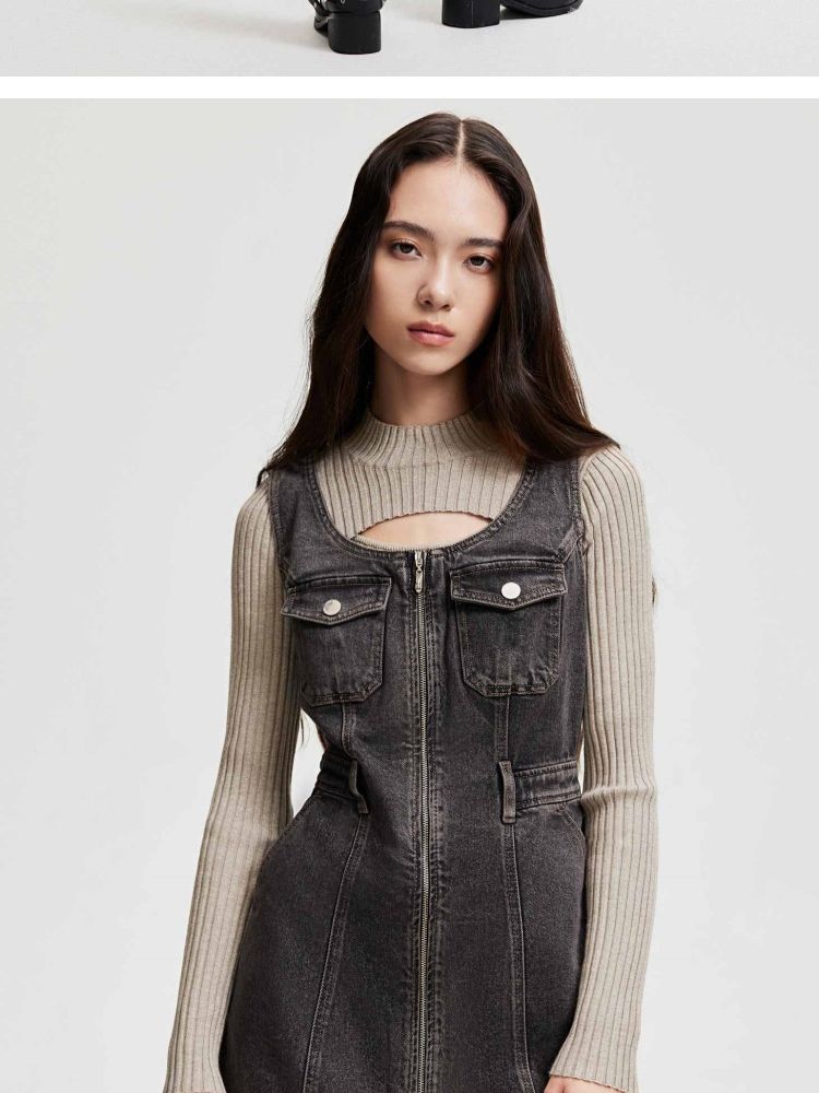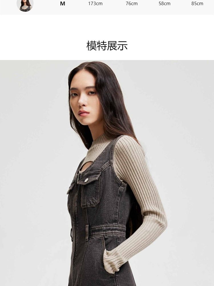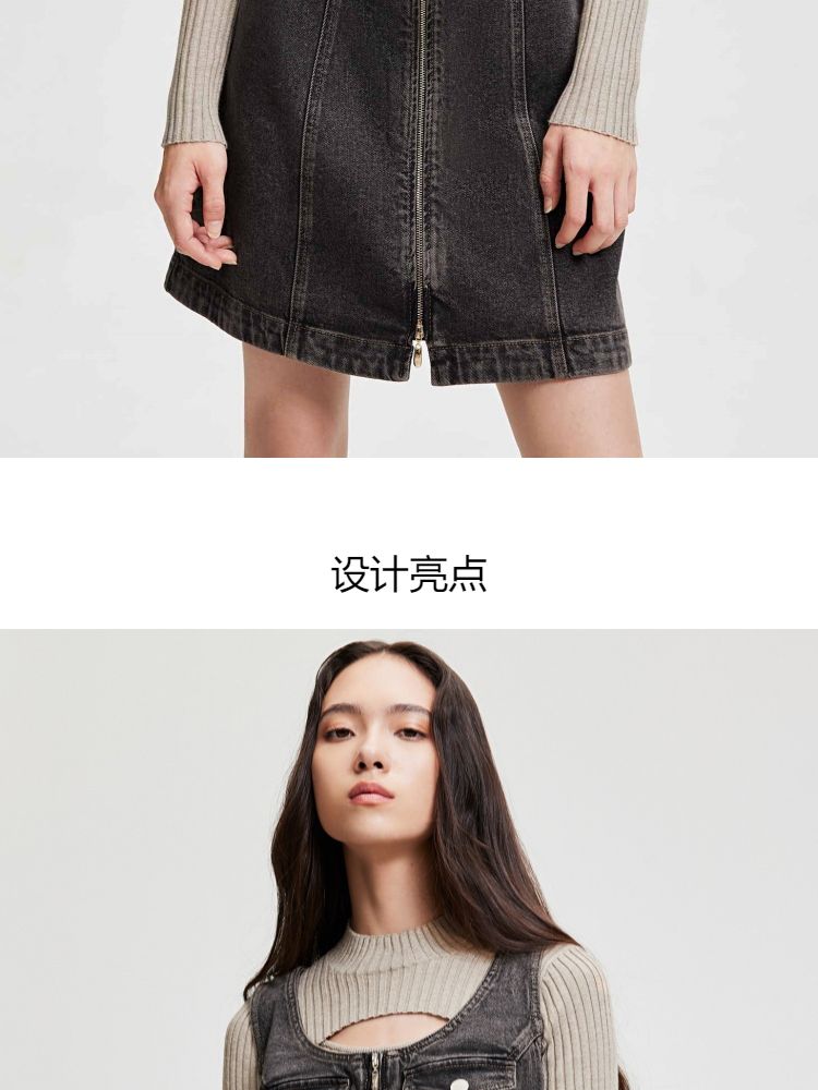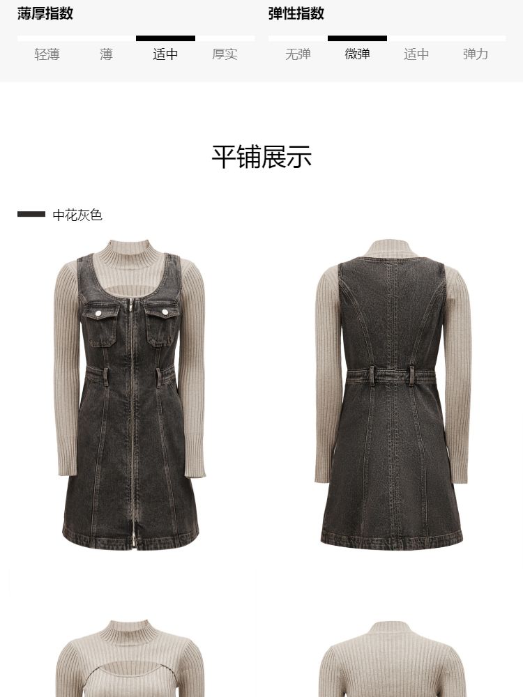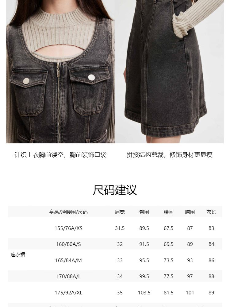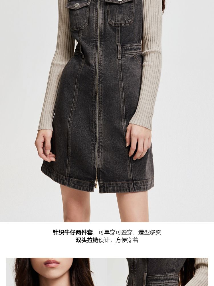 商品名称:【双头拉链】春季复古潮流口袋牛仔针织套装连衣裙女 748058