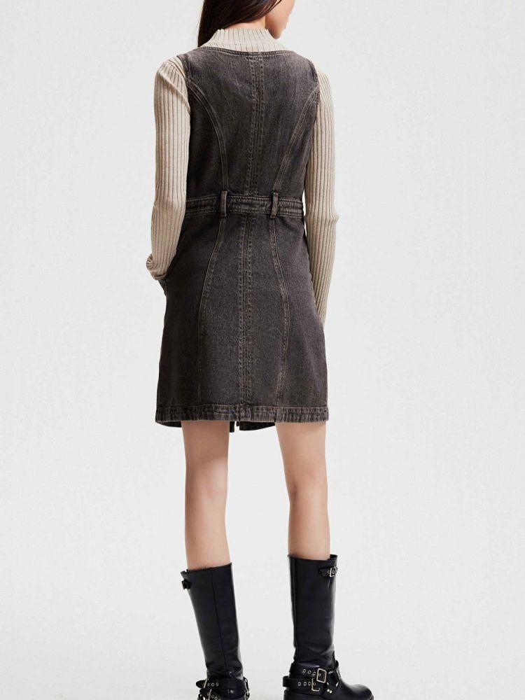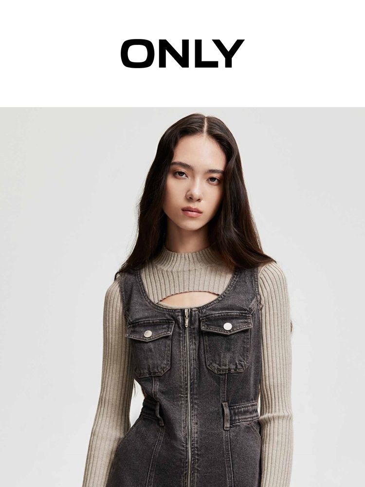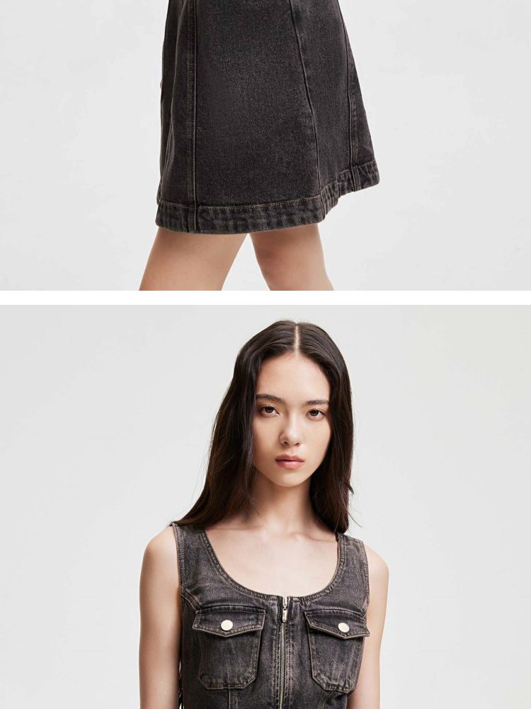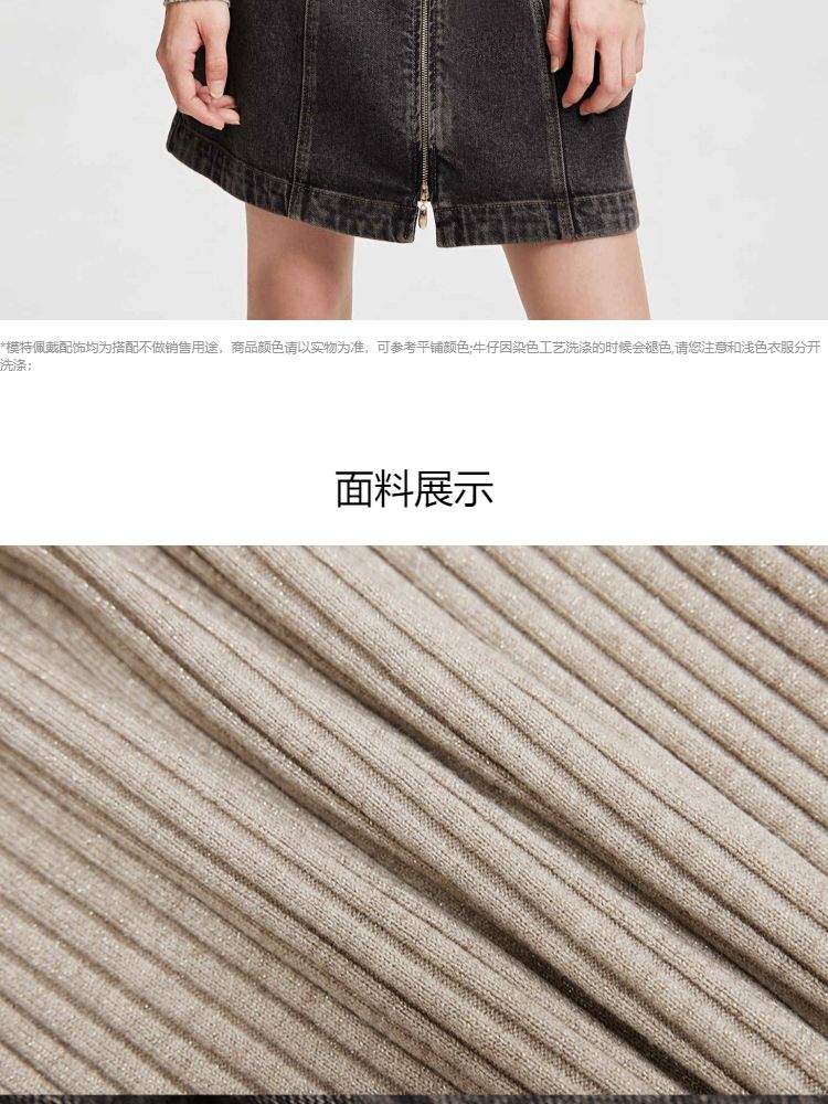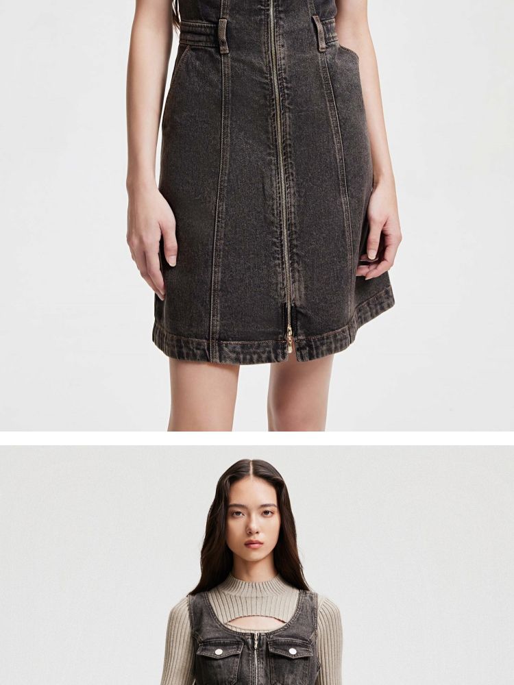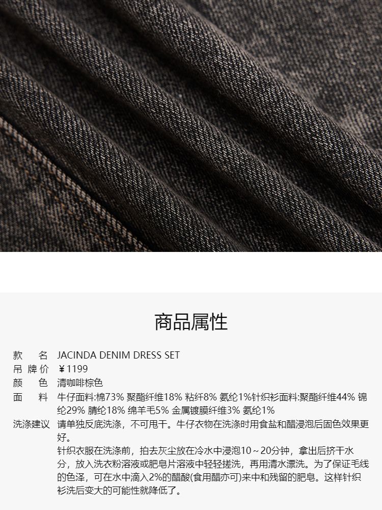 商品名称:【双头拉链】春季复古潮流口袋牛仔针织套装连衣裙女 748058