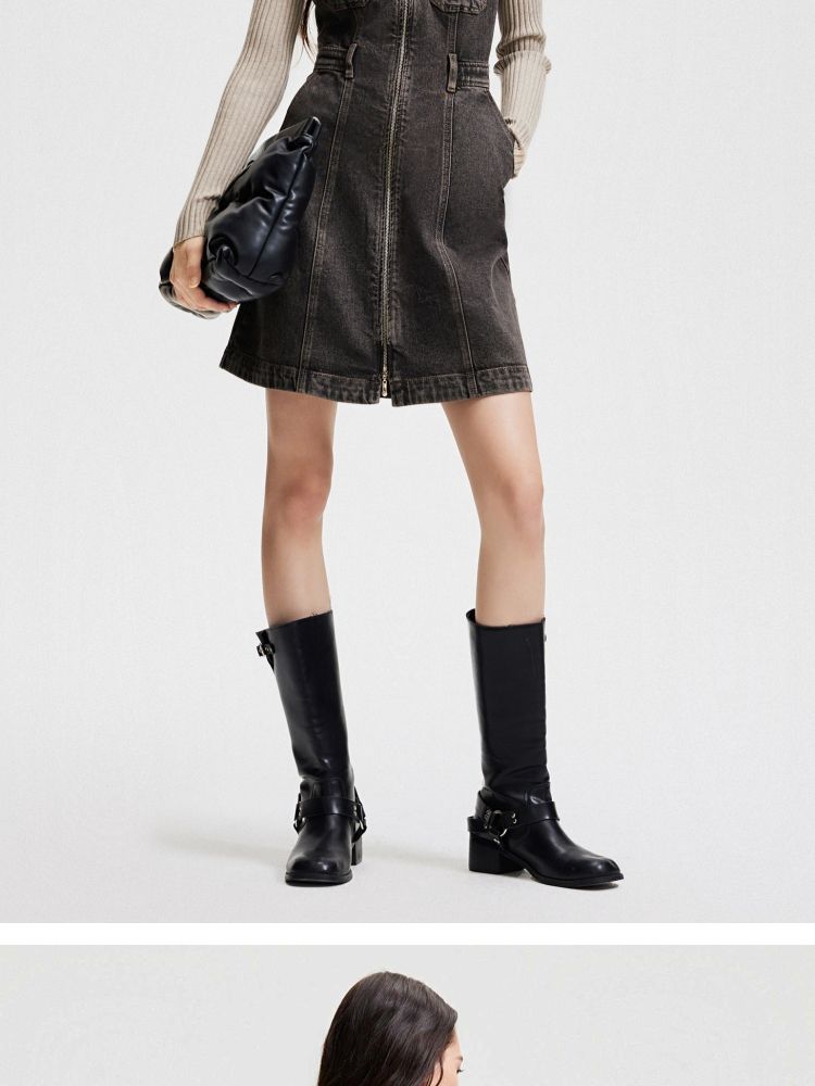 【双头拉链】春季复古潮流口袋牛仔针织套装连衣裙女 748058