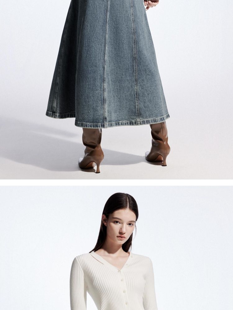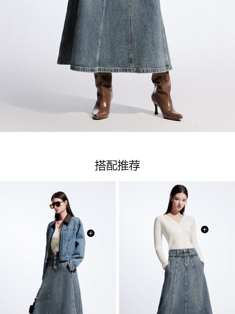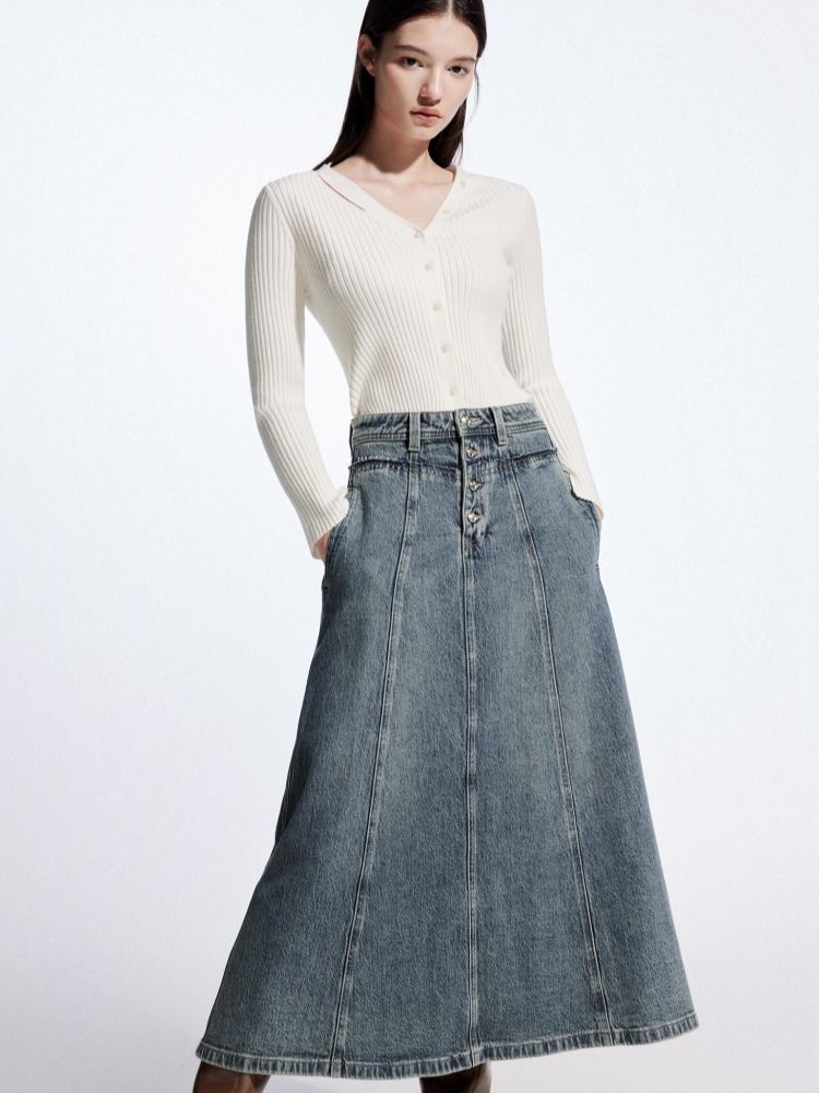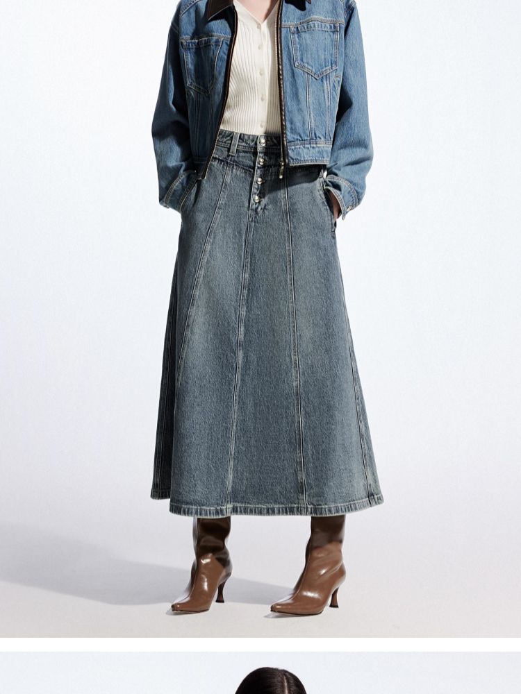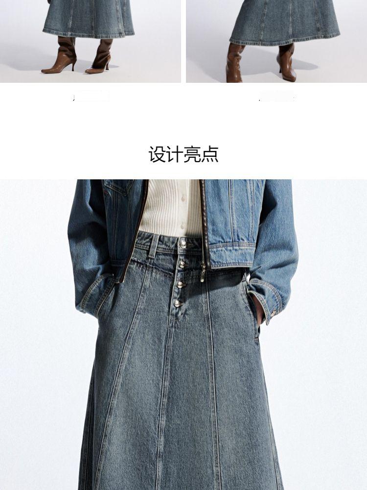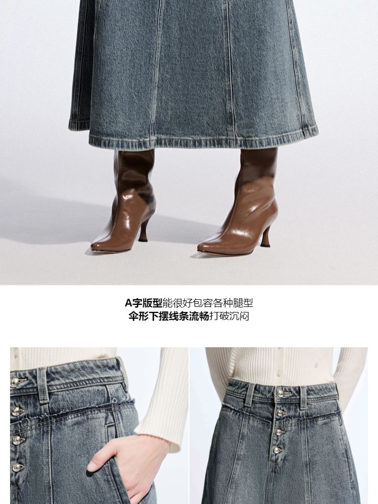 【毛边装饰】夏季高腰多粒扣A字中长裙牛仔半身裙女 067162