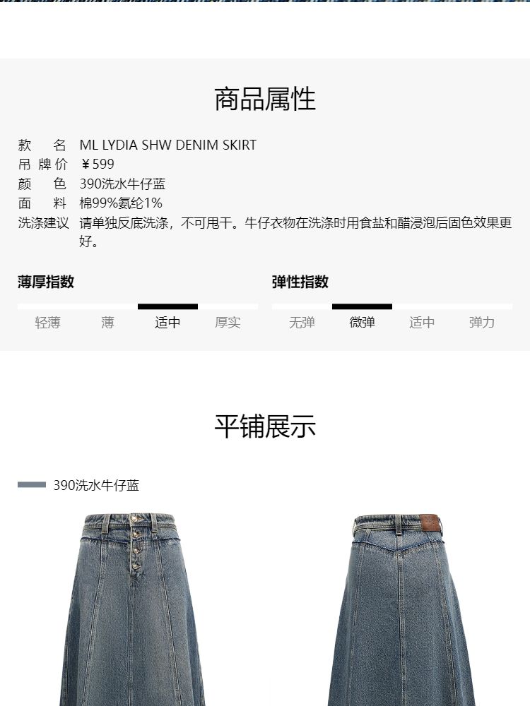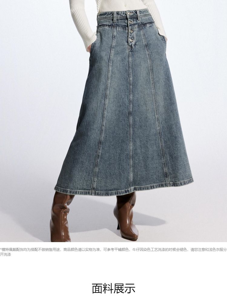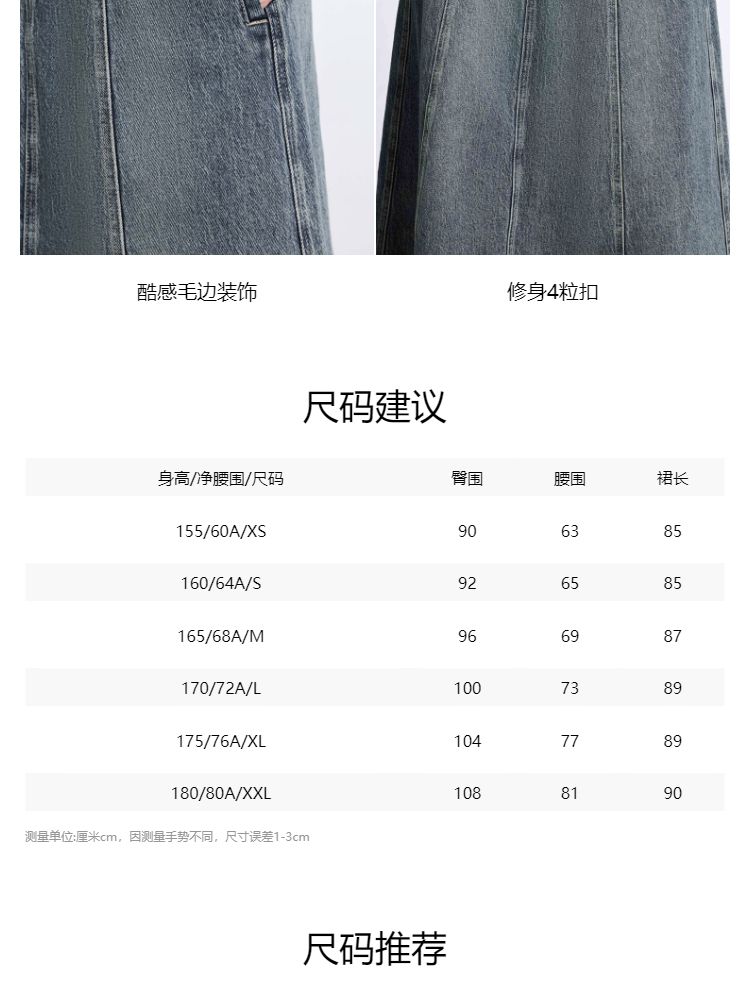 商品名称:【毛边装饰】夏季高腰多粒扣A字中长裙牛仔半身裙女 067162