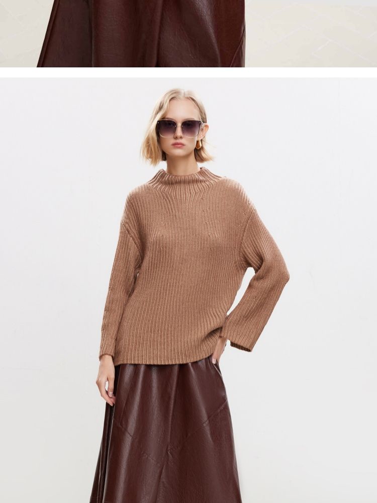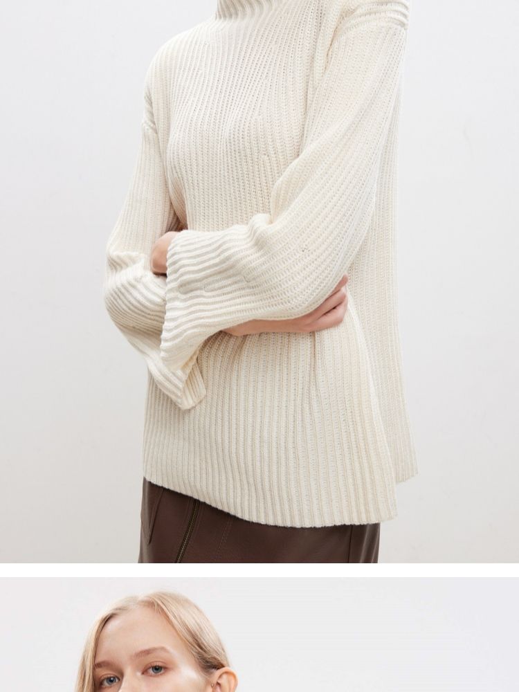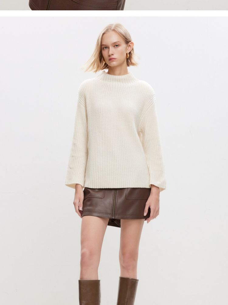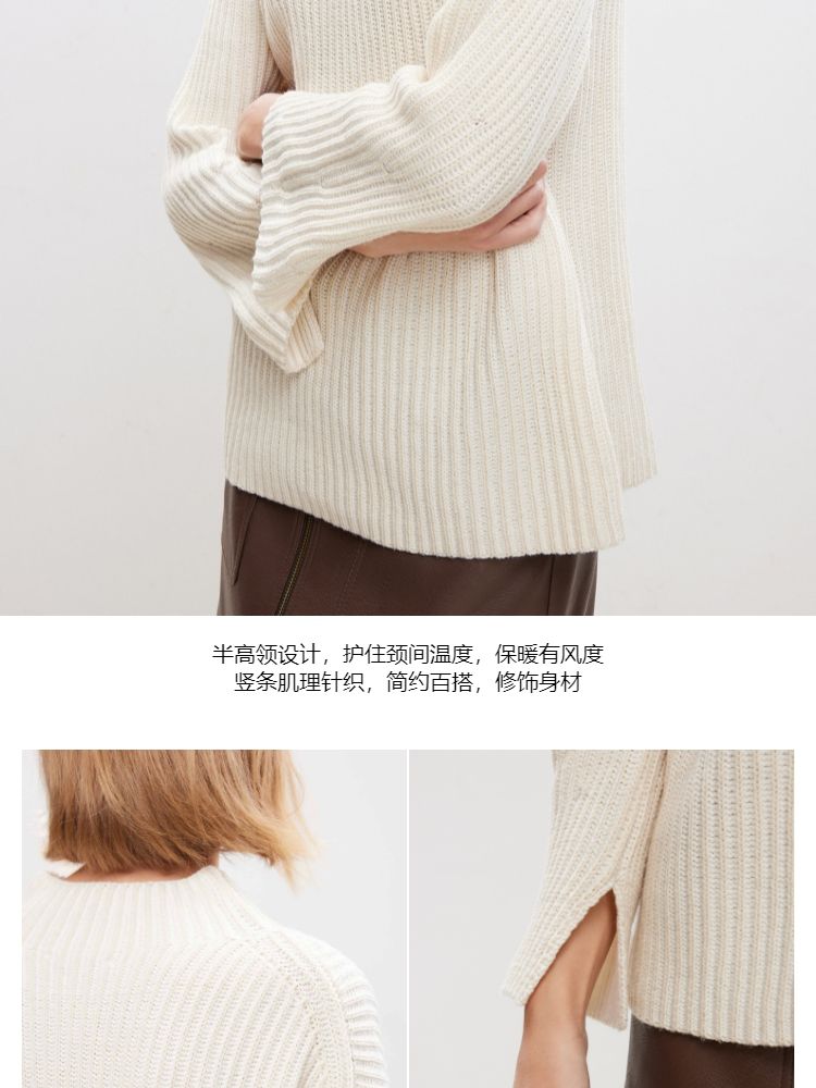 商品名称:【落肩宽松】春季休闲慵懒落肩宽松半高领针织衫女 536666