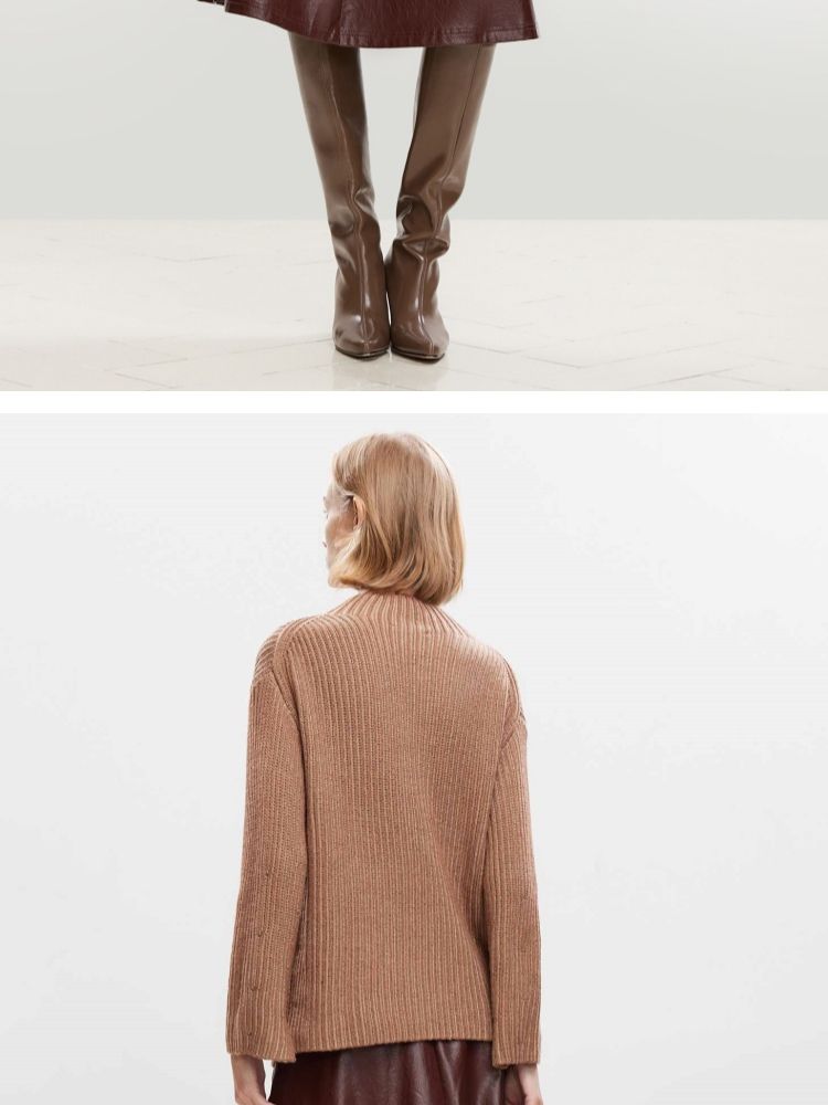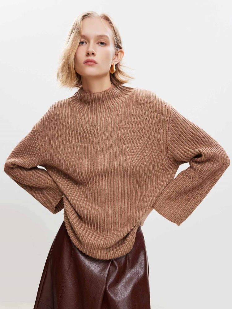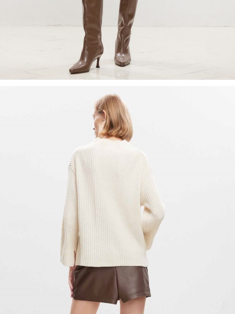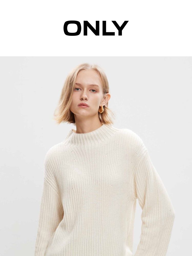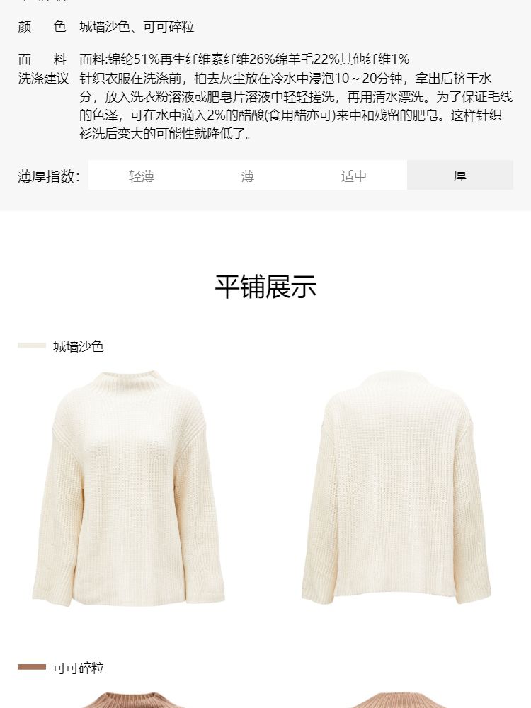 商品名称:【落肩宽松】春季休闲慵懒落肩宽松半高领针织衫女 536666