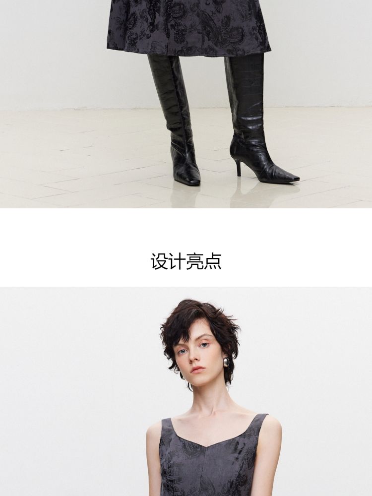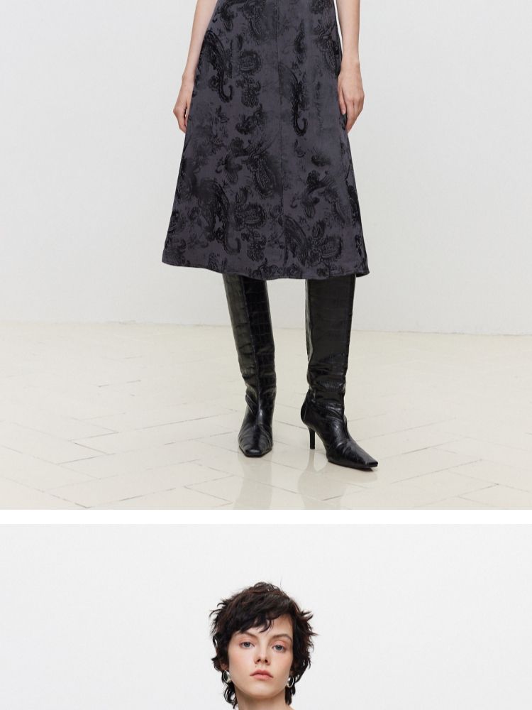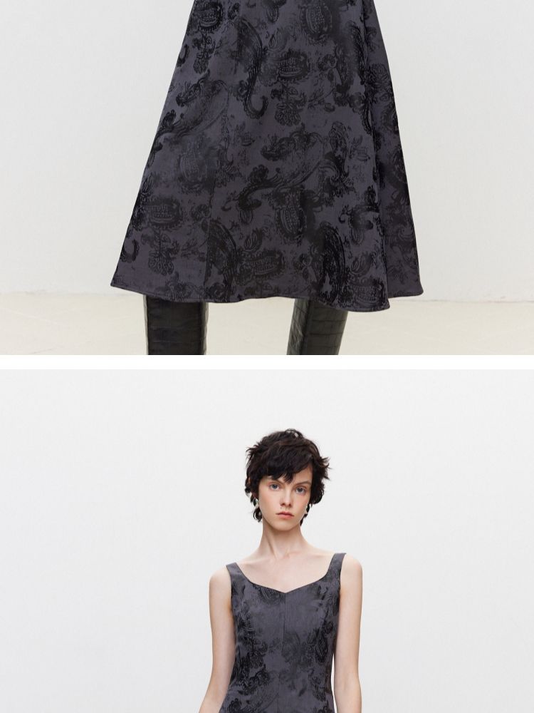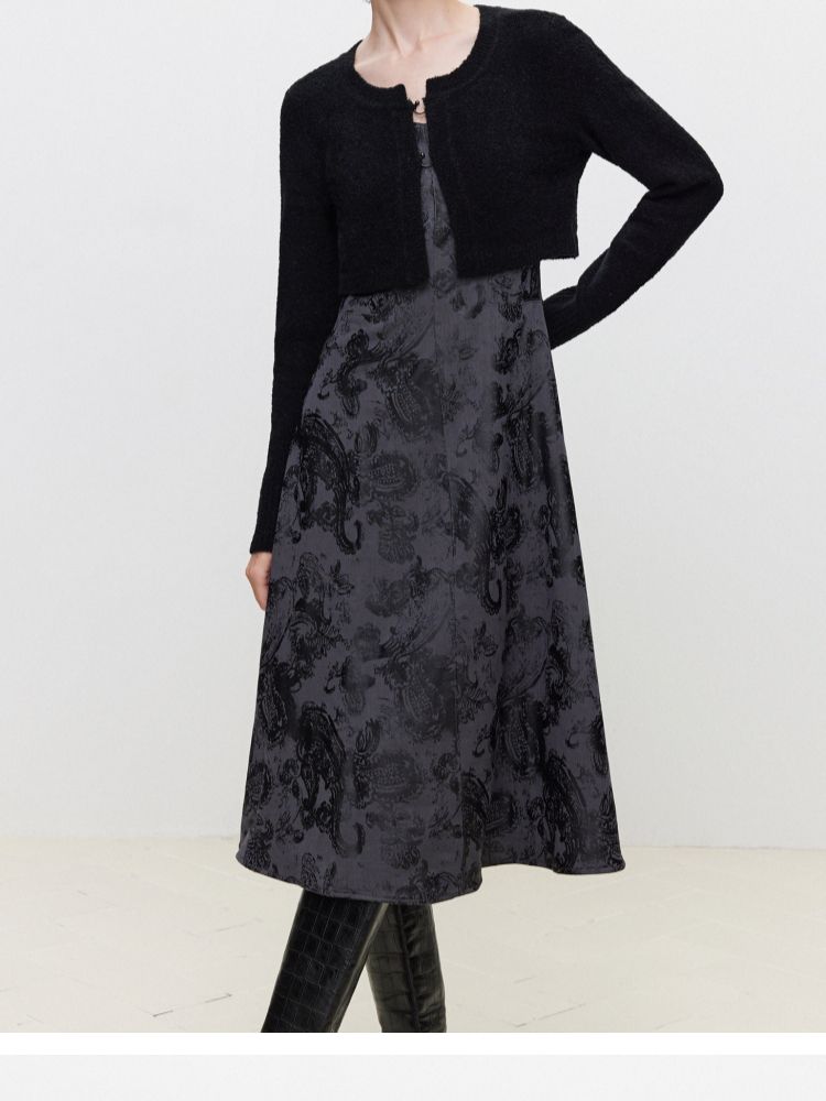 【A字套装】夏季设计感印花中长款连衣裙女 689114