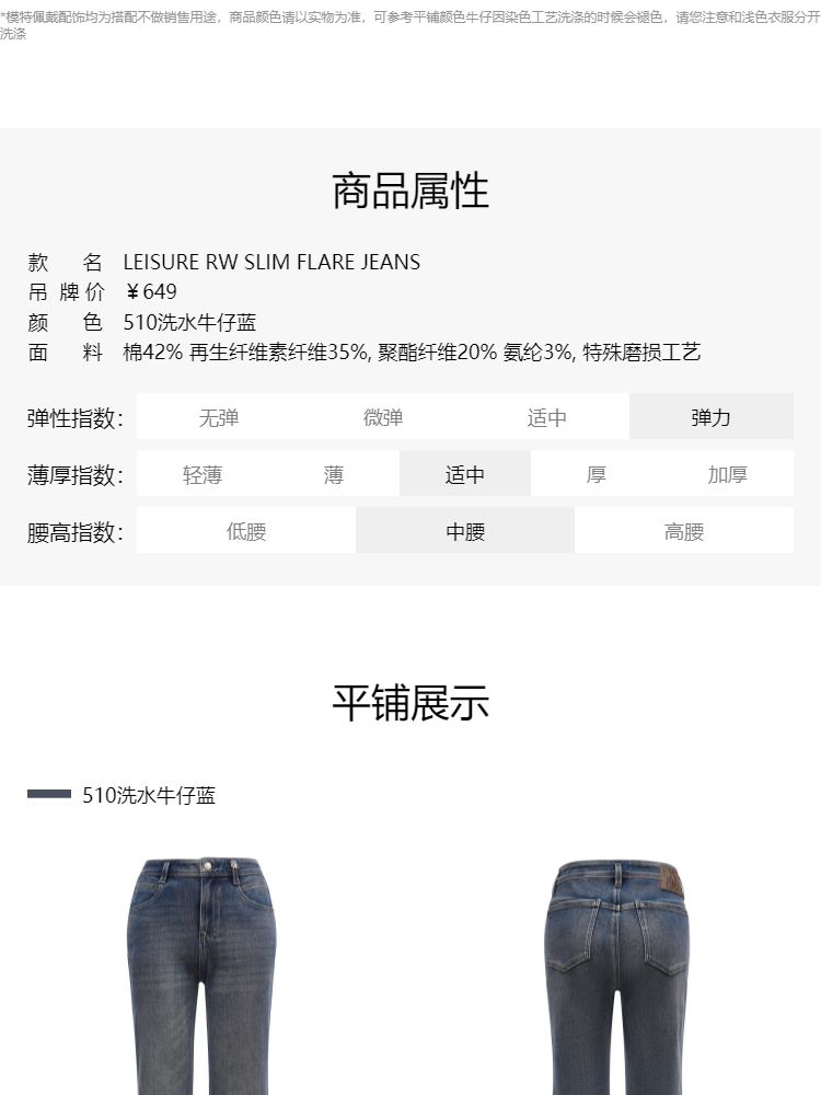 商品名称:【四面弹小个子喇叭裤】夏季简约通勤牛仔裤女 285210