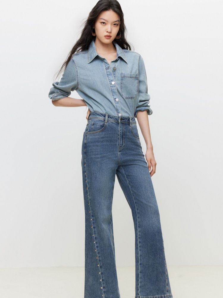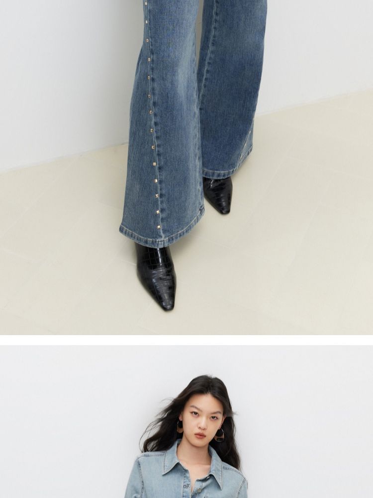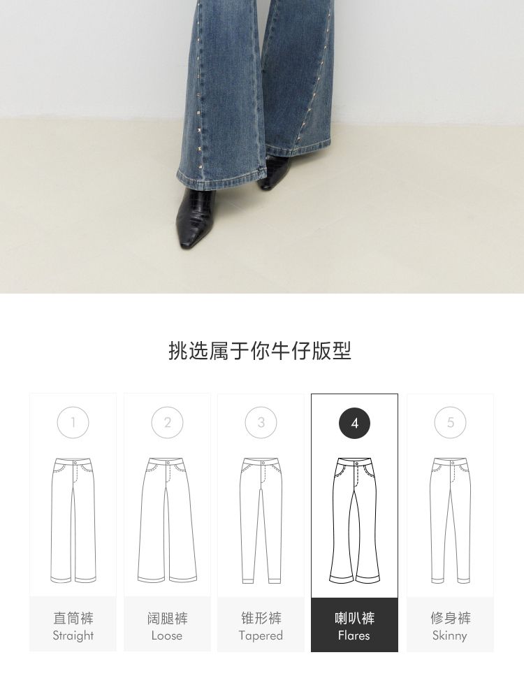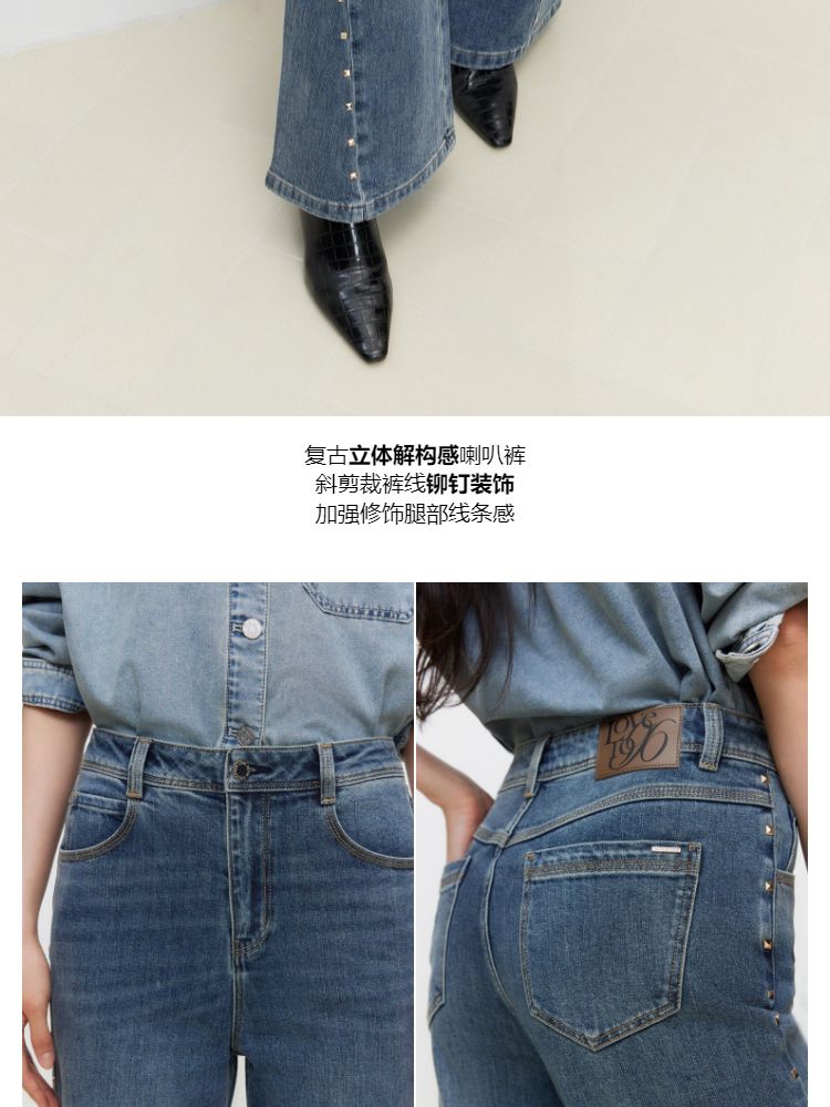 【高腰铆钉喇叭裤】夏季时尚辣妹风牛仔裤女 496602