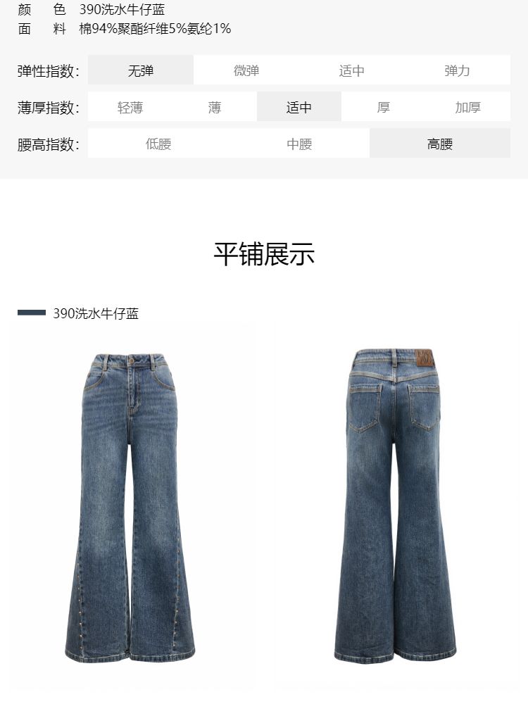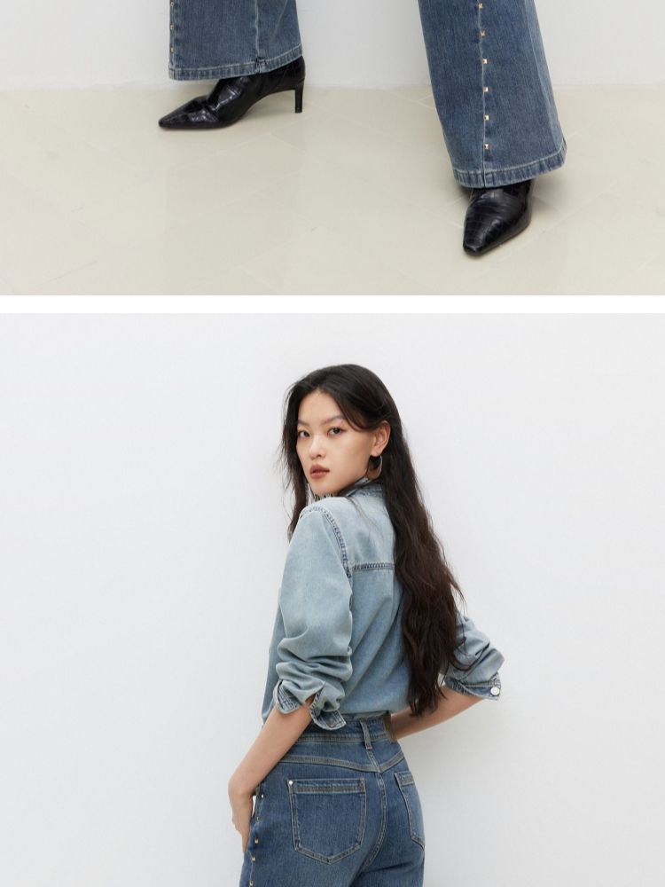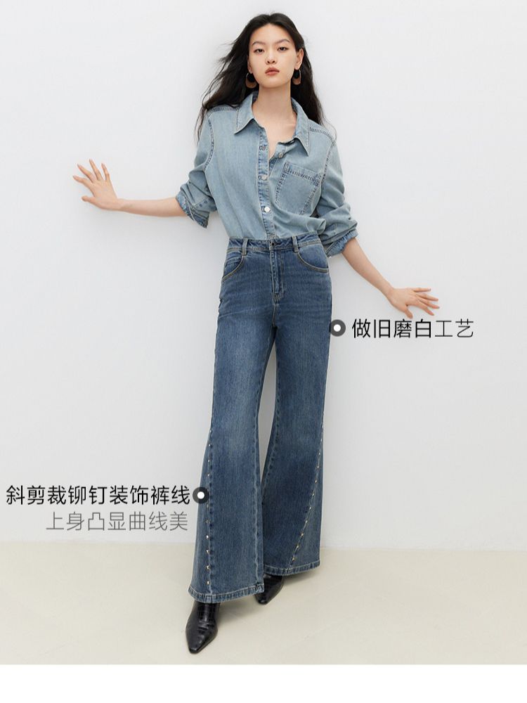 商品名称:【高腰铆钉喇叭裤】夏季时尚辣妹风牛仔裤女 496602