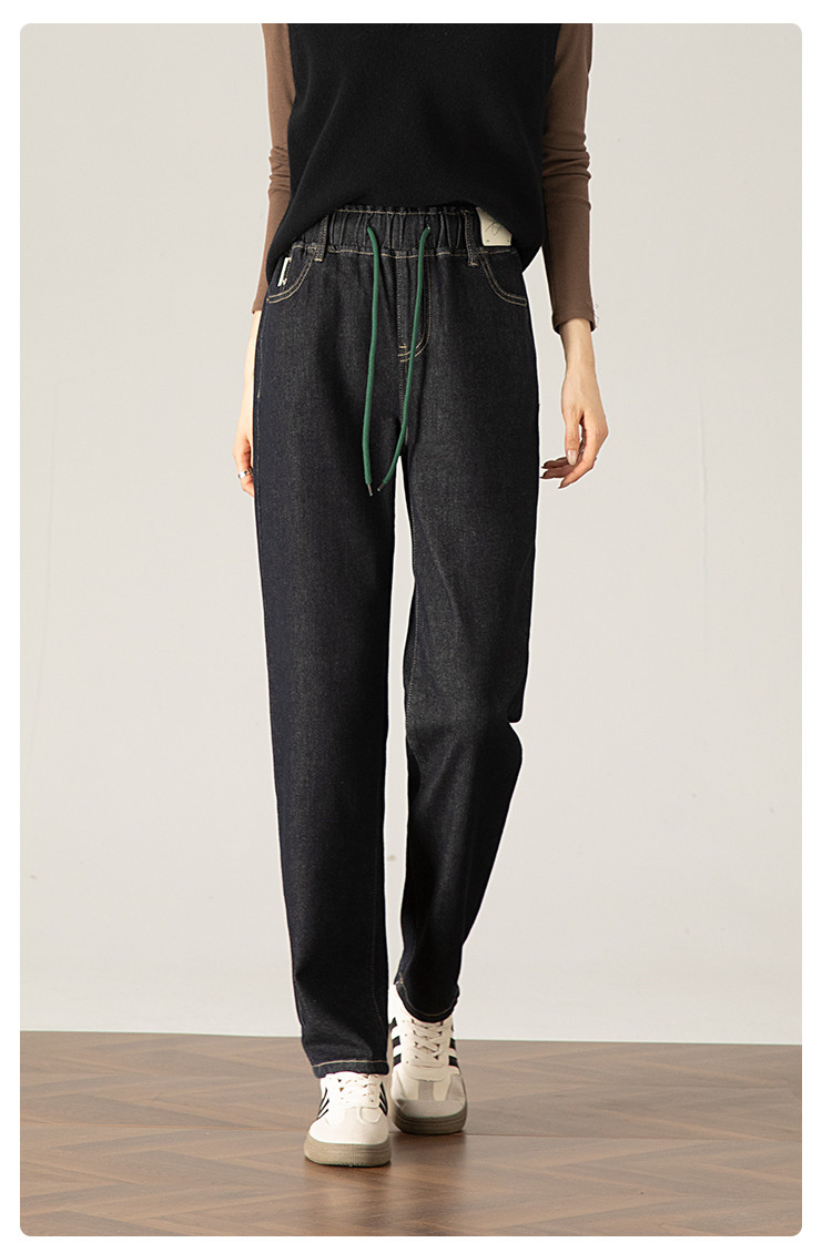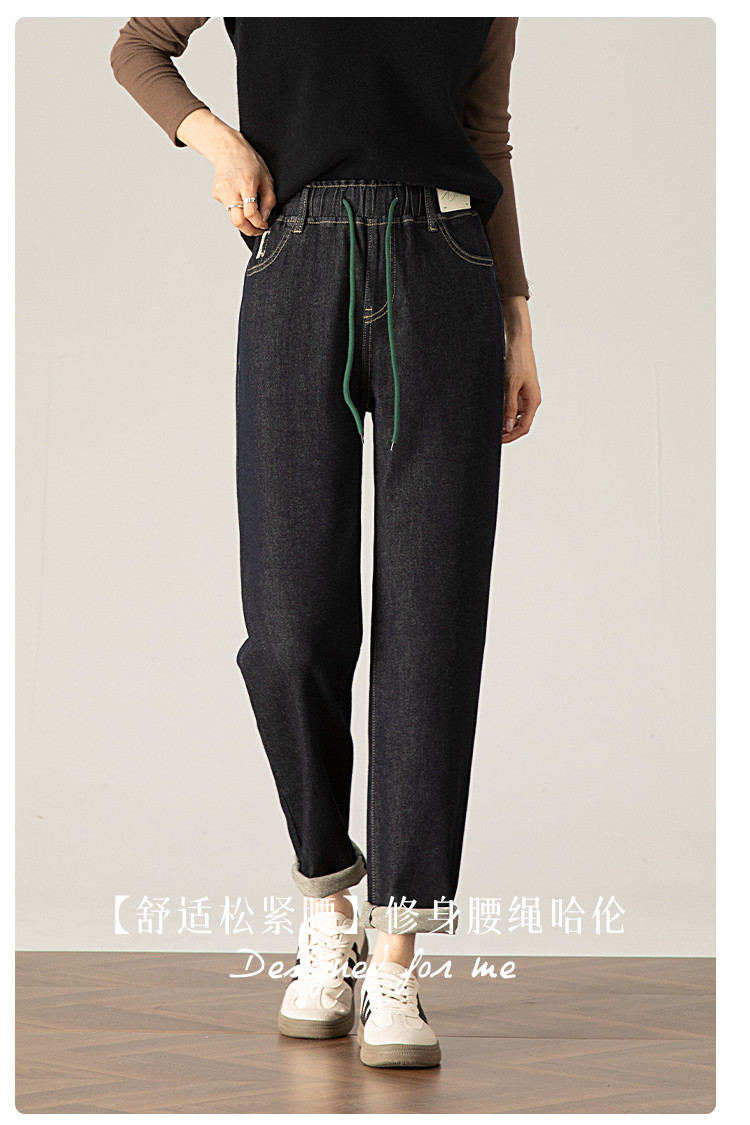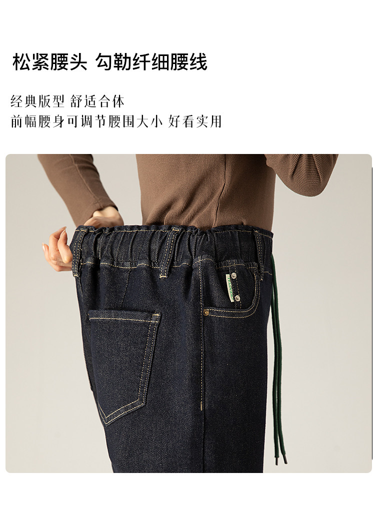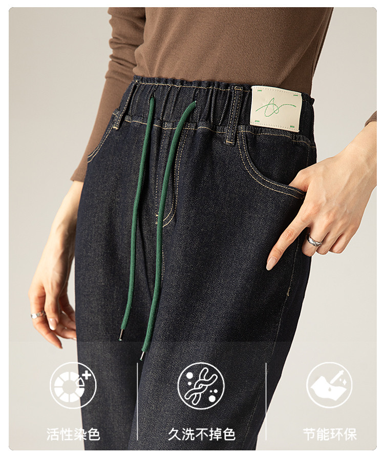 商品名称:【松量有型】锥形牛仔裤女春秋季畅销款防褪色松紧腰抽绳哈伦裤女 322241