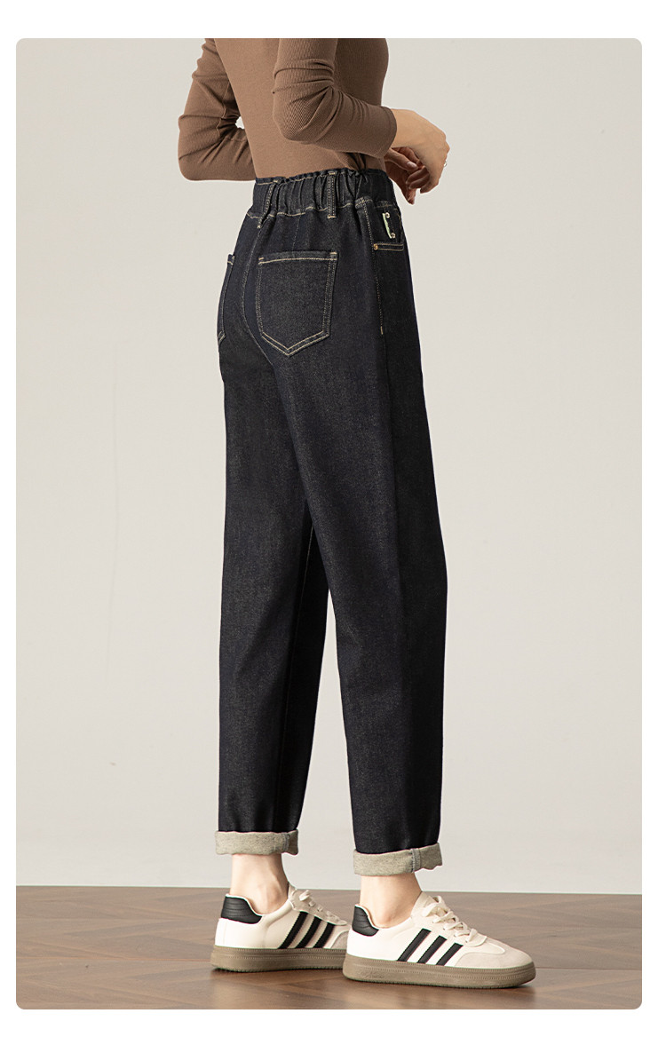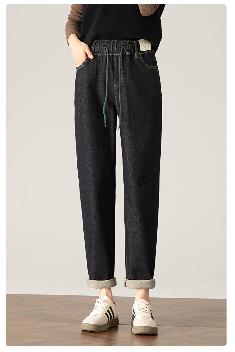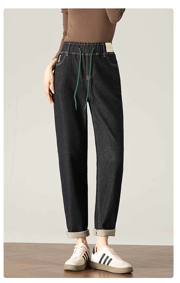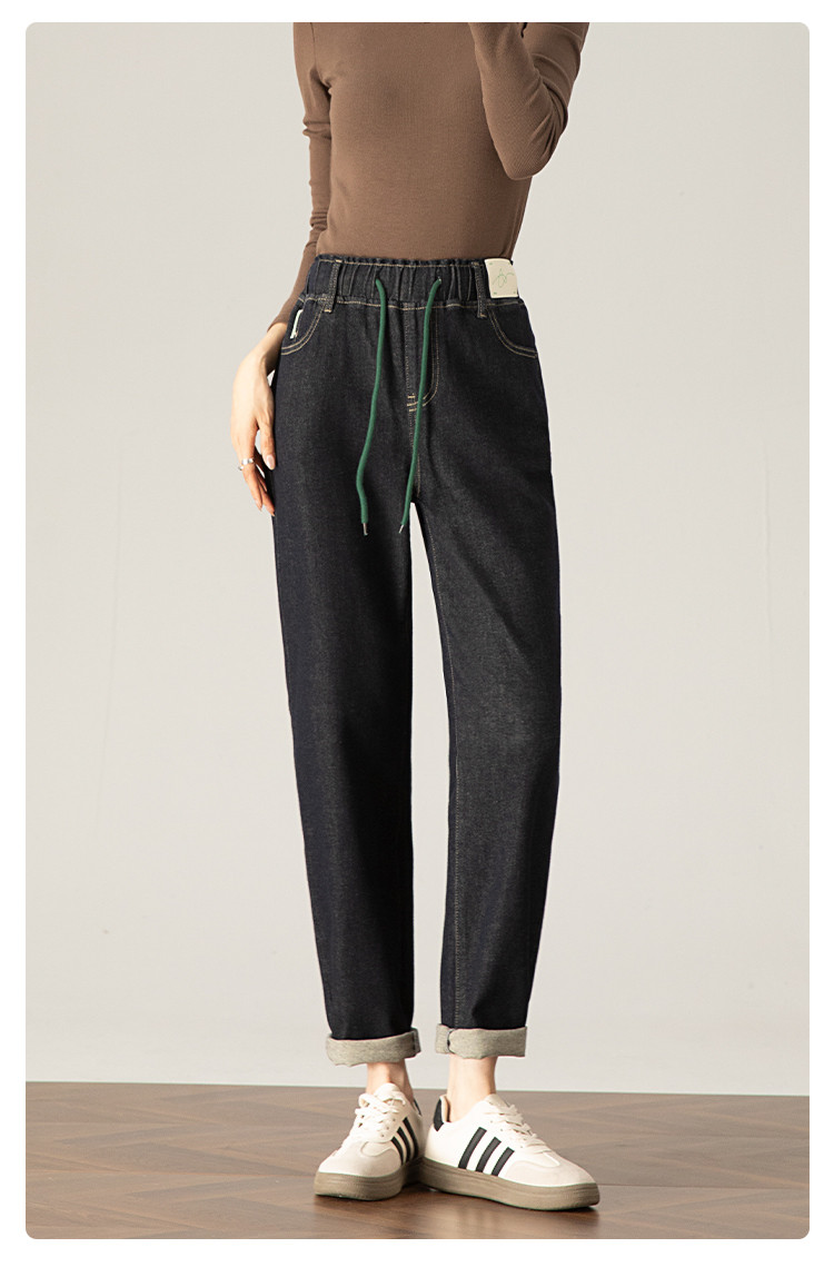 【松量有型】锥形牛仔裤女春秋季畅销款防褪色松紧腰抽绳哈伦裤女 322241