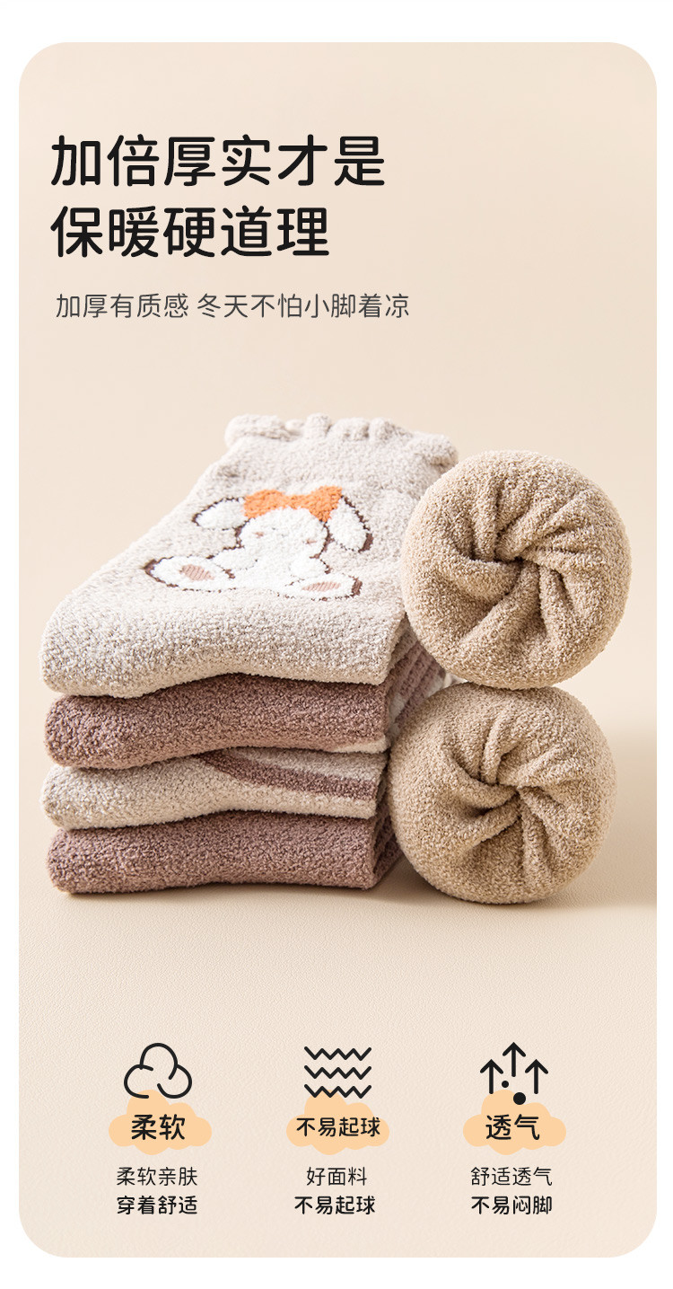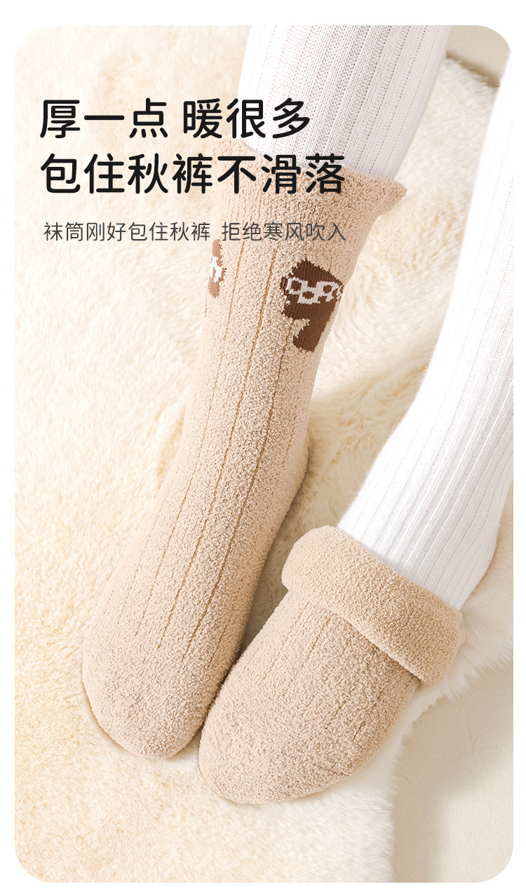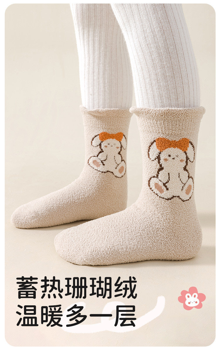 5双装【暖绒雪地袜】加绒加厚女童袜子保暖女童蓄热锁温儿童袜子 633163