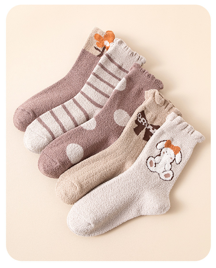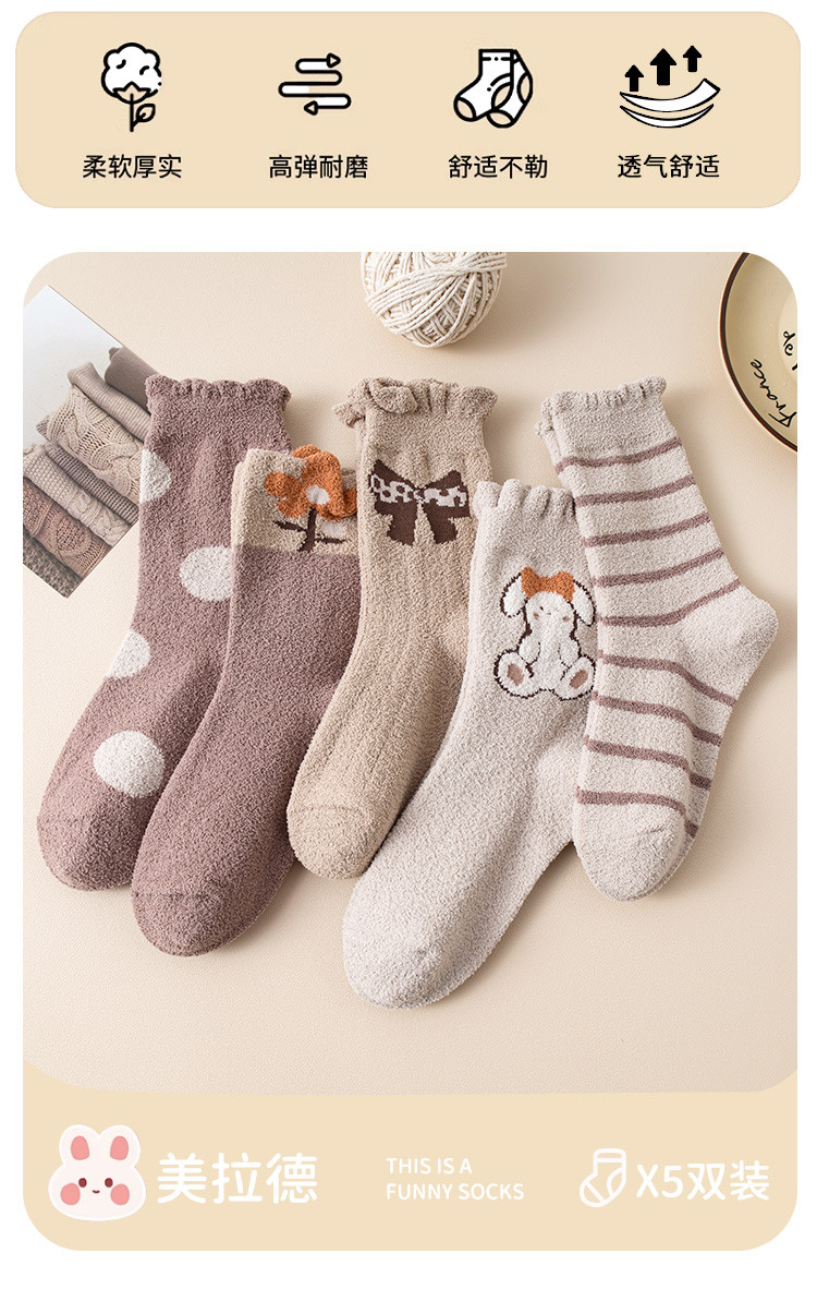 商品名称:5双装【暖绒雪地袜】加绒加厚女童袜子保暖女童蓄热锁温儿童袜子 633163