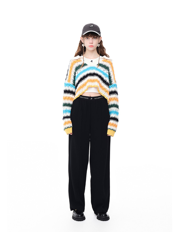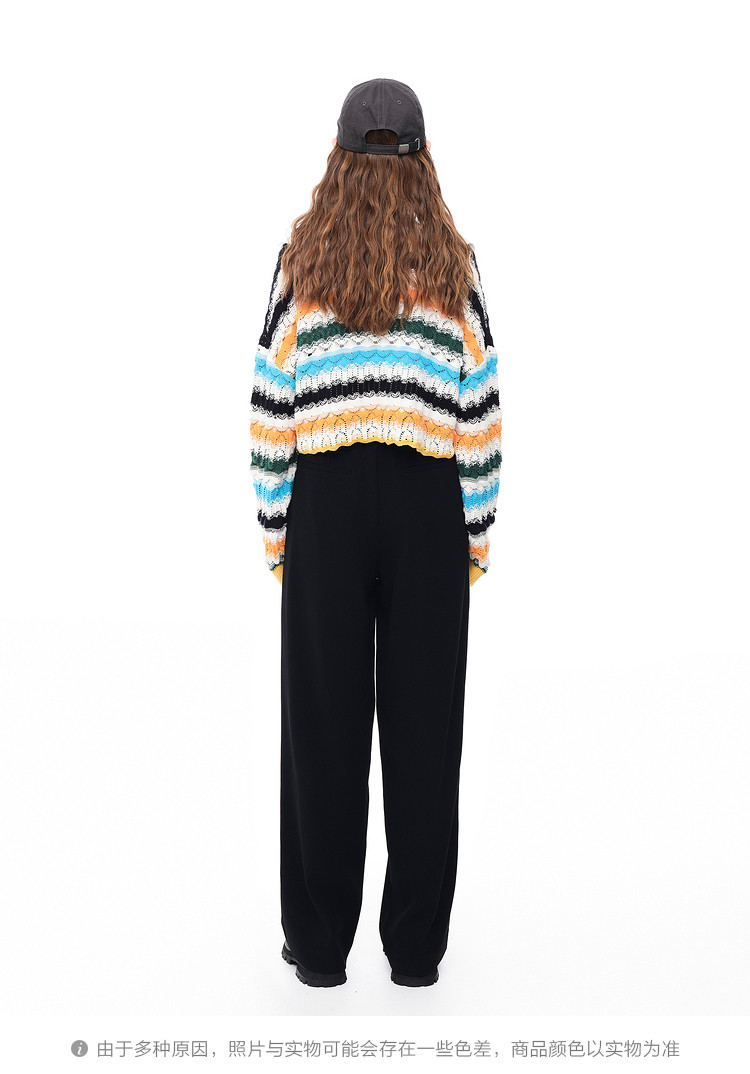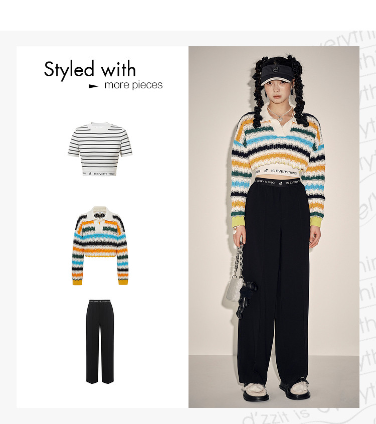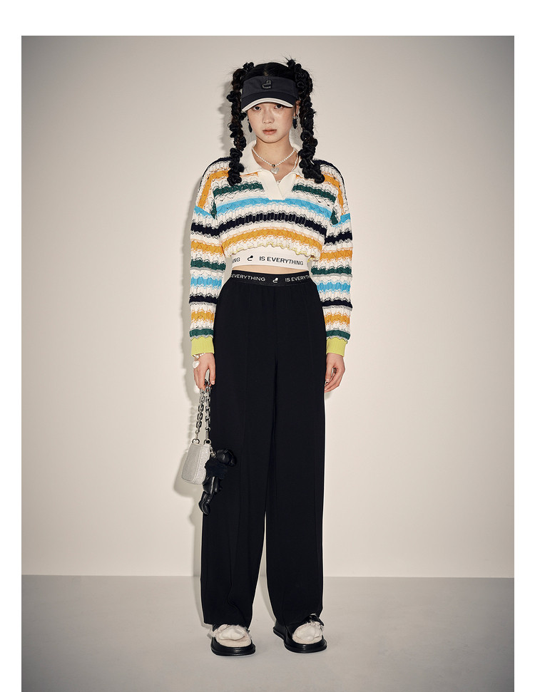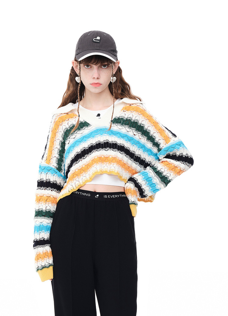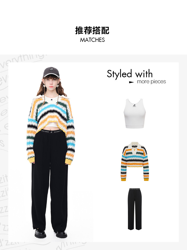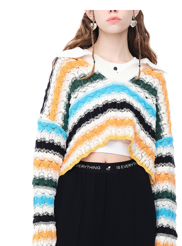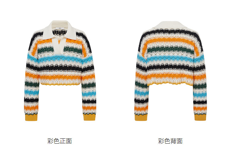 地素 春秋复古文艺彩色条纹设计POLO领针织衫女 639755