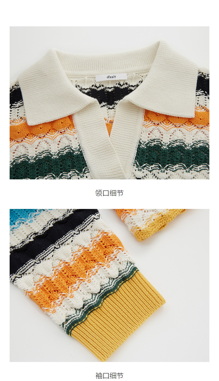 商品名称:地素 春秋复古文艺彩色条纹设计POLO领针织衫女 639755