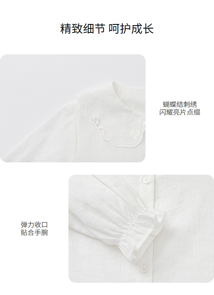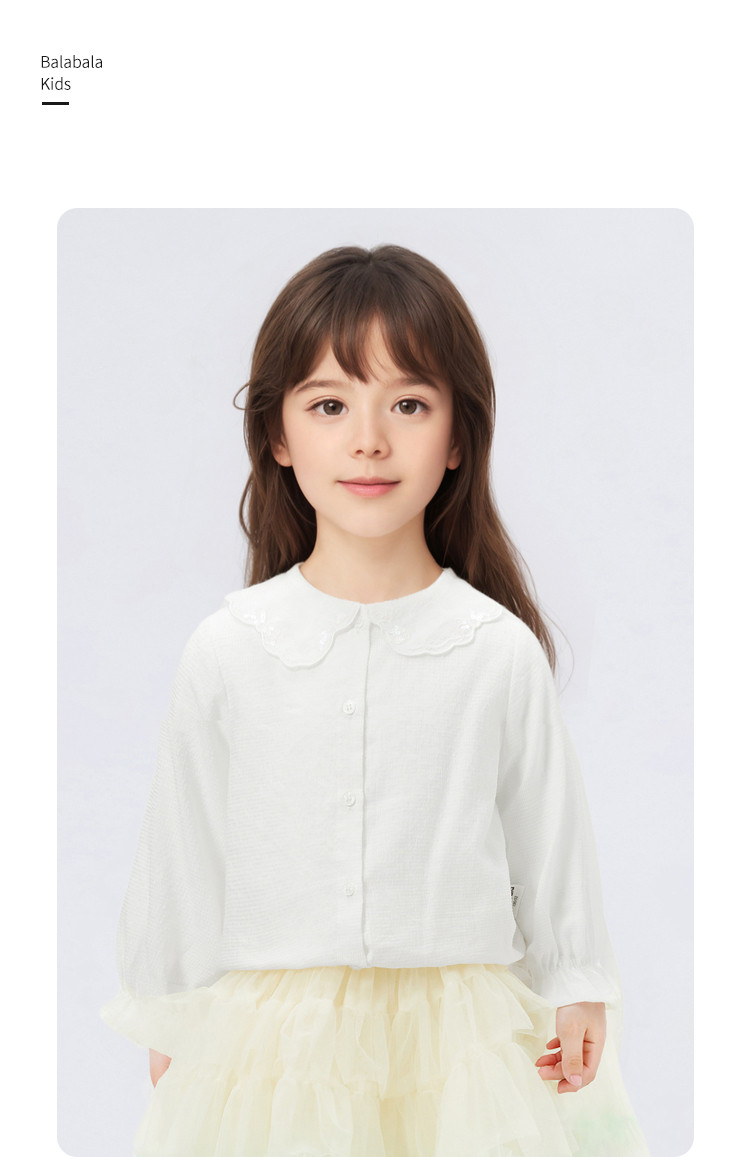 巴拉巴拉女童衬衫儿童甜美绣花洋气春装简约百搭上衣 918853
