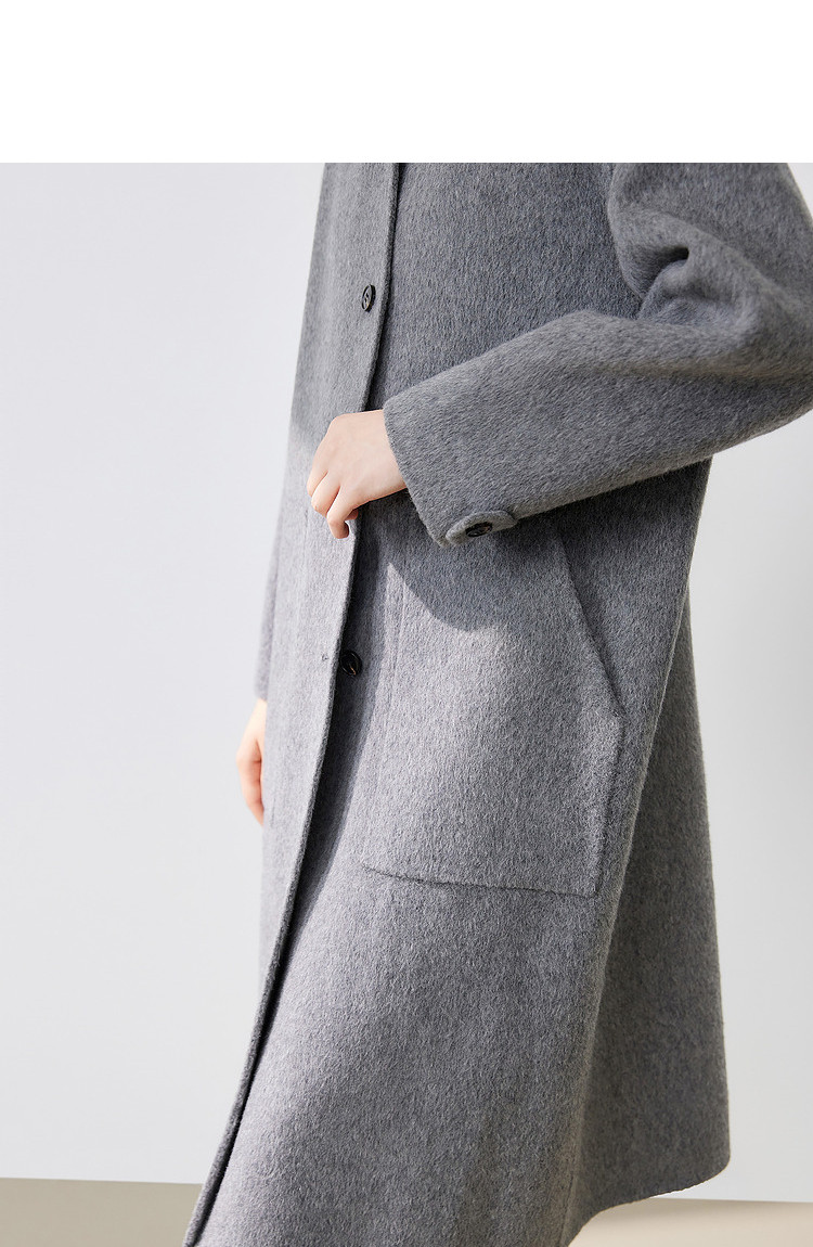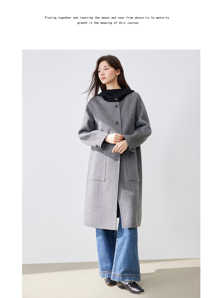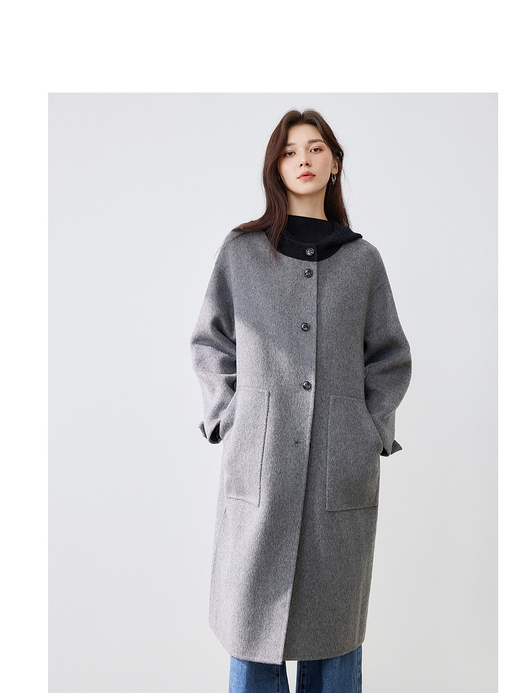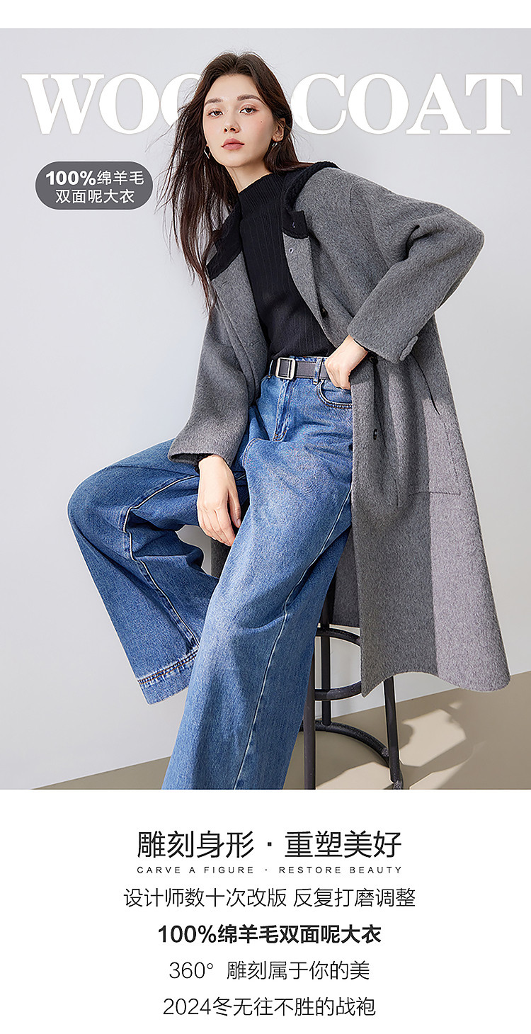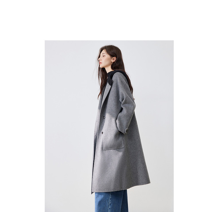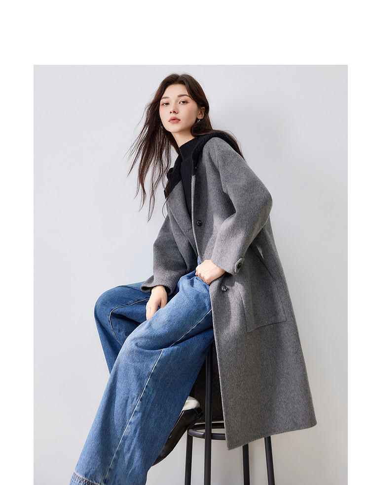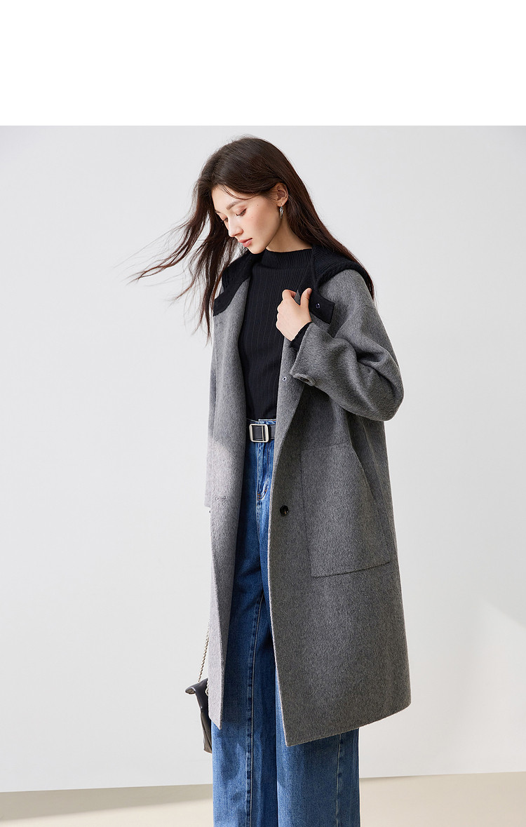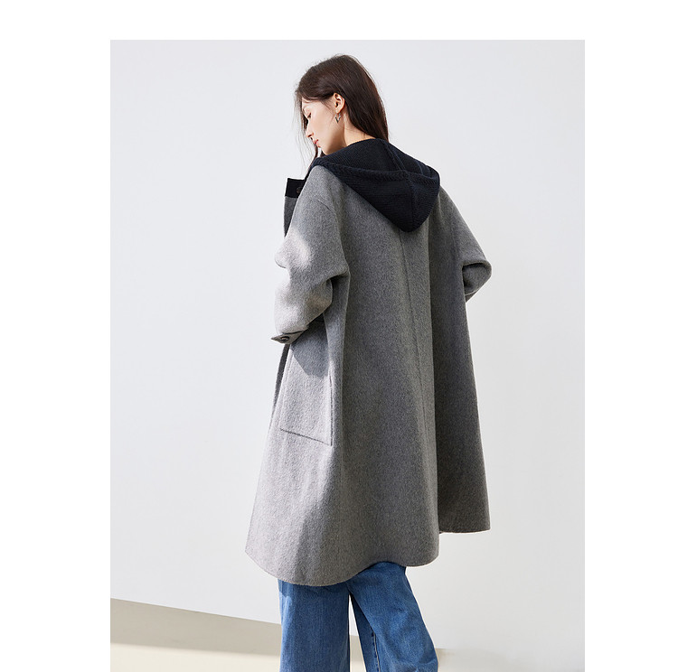 【100%绵羊毛】2024冬季双面呢中长款毛呢外套连帽呢大衣 364564