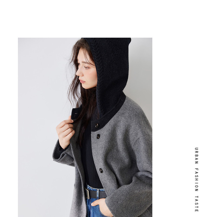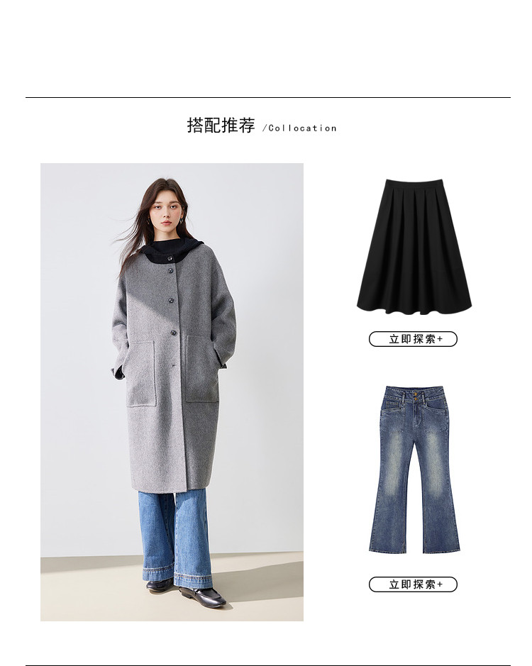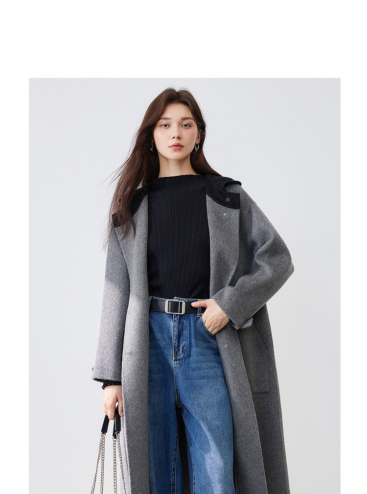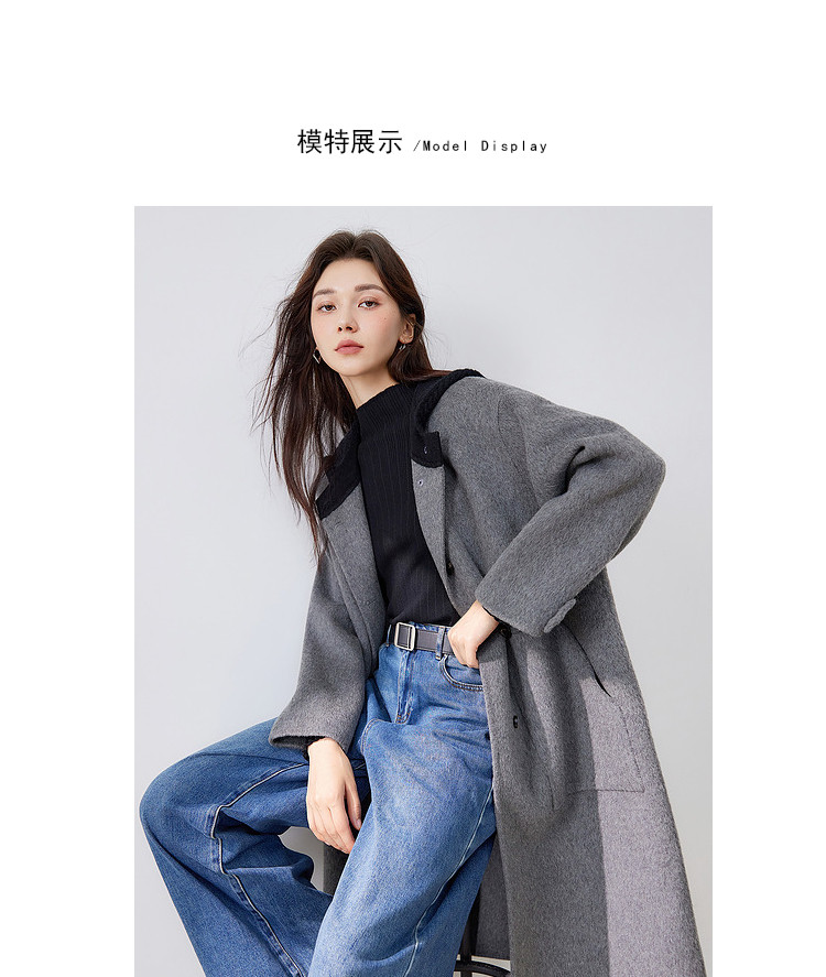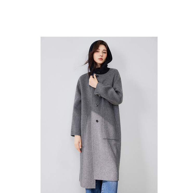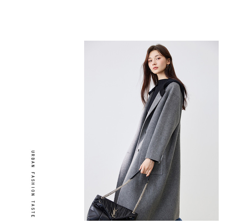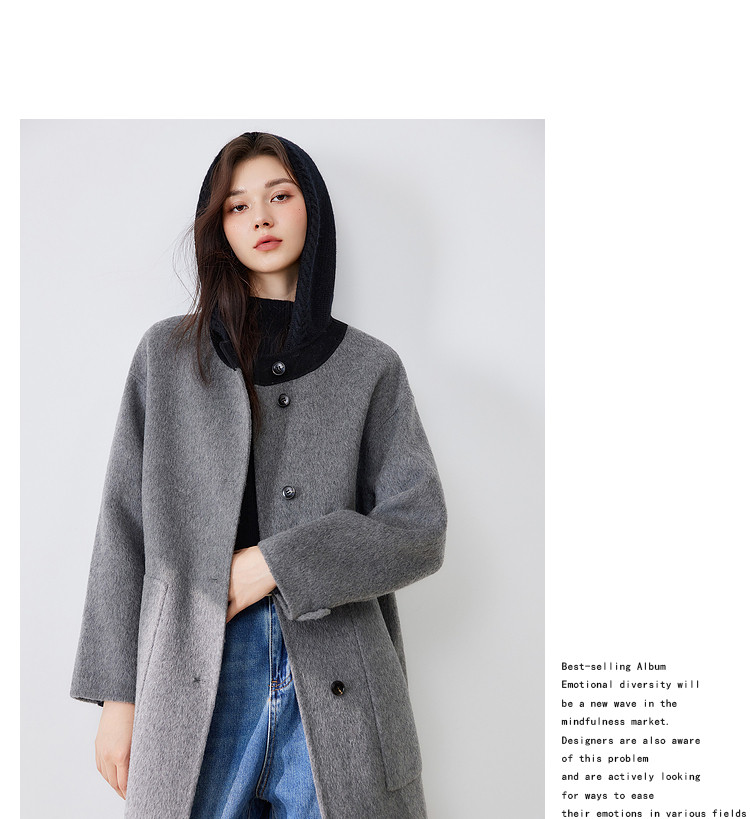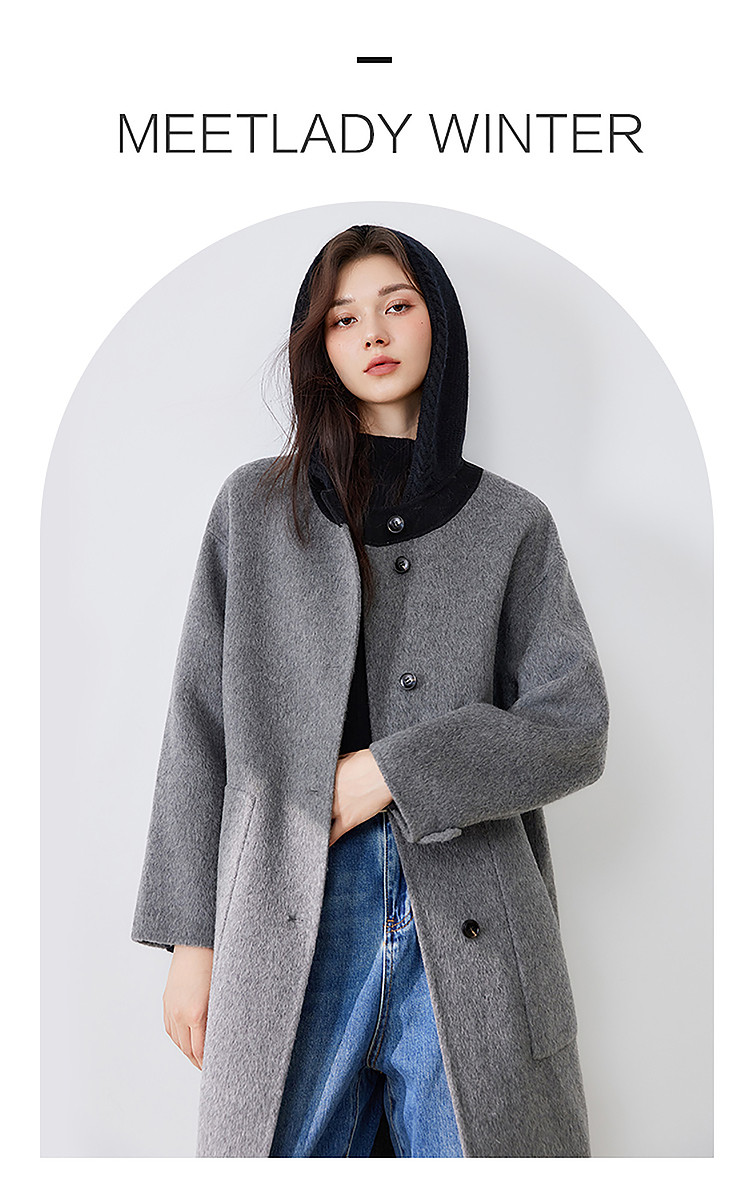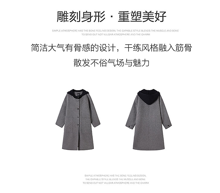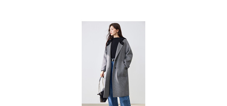 商品名称:【100%绵羊毛】2024冬季双面呢中长款毛呢外套连帽呢大衣 364564