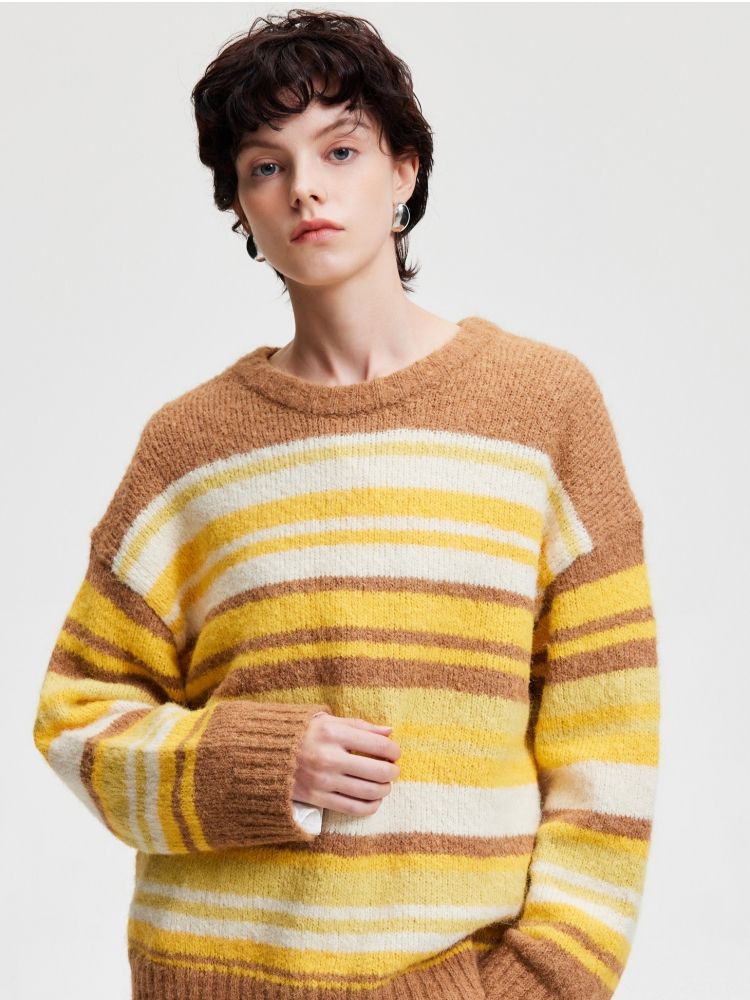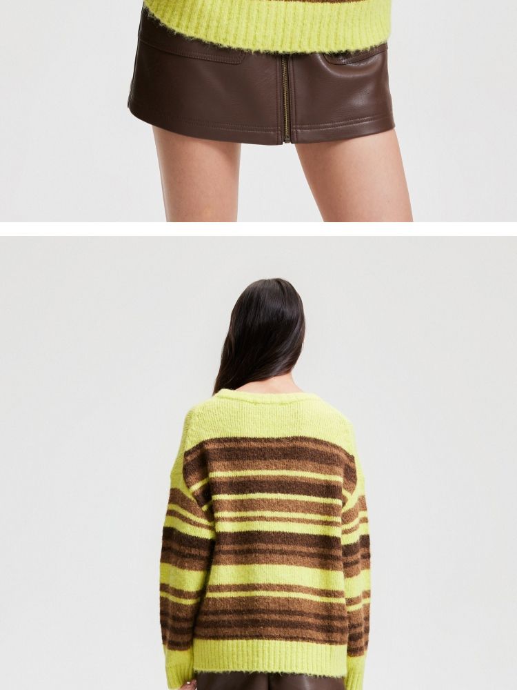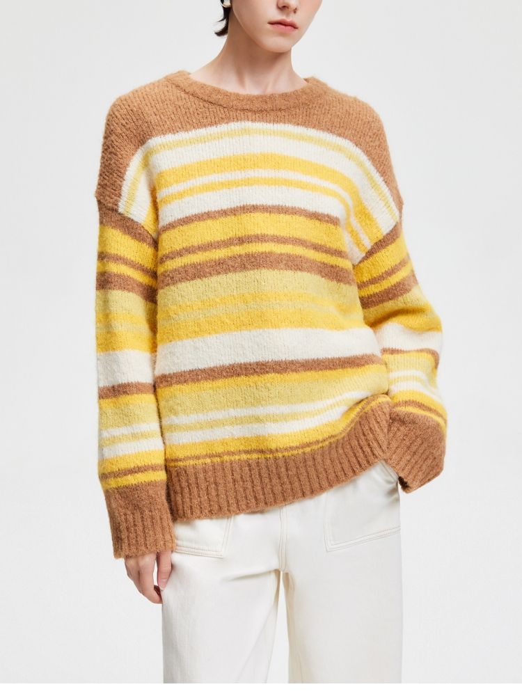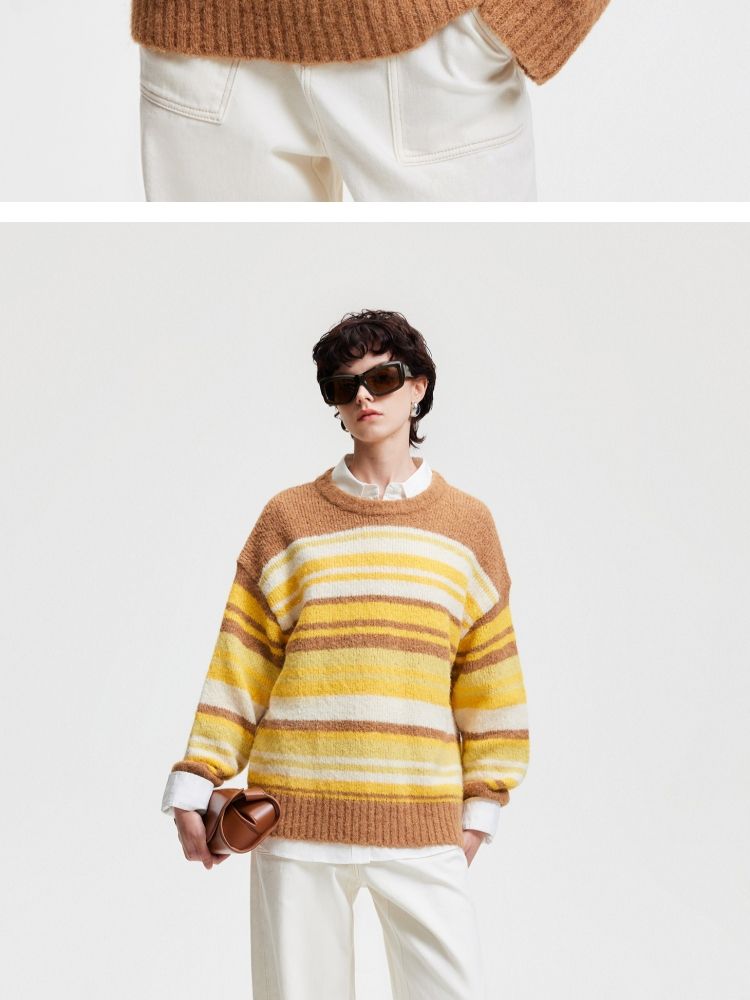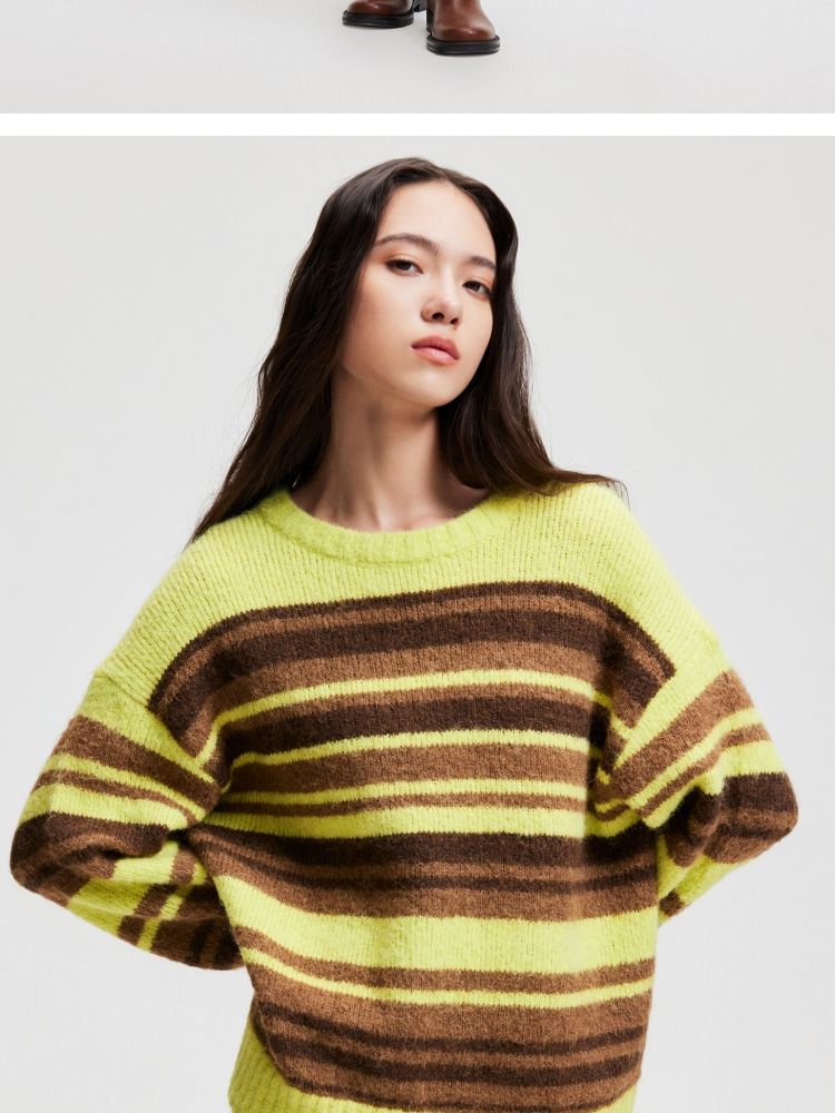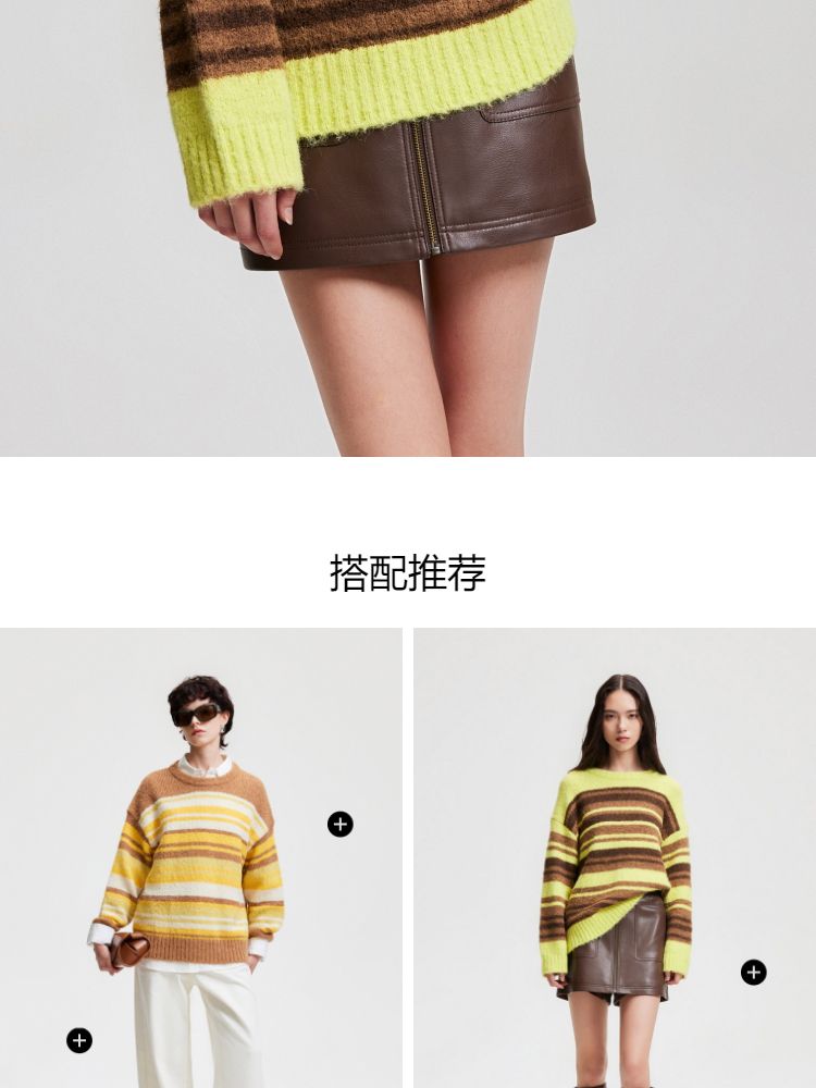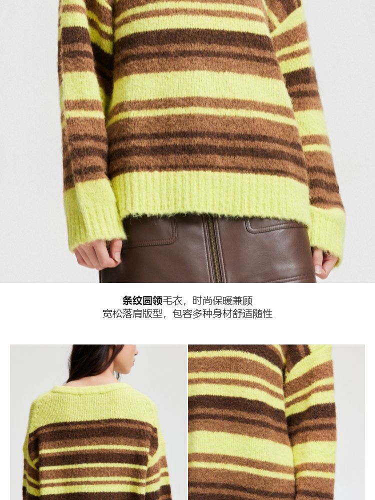 商品名称:【圣诞氛围感】春季休闲撞色条纹圆领宽松针织衫女 846042