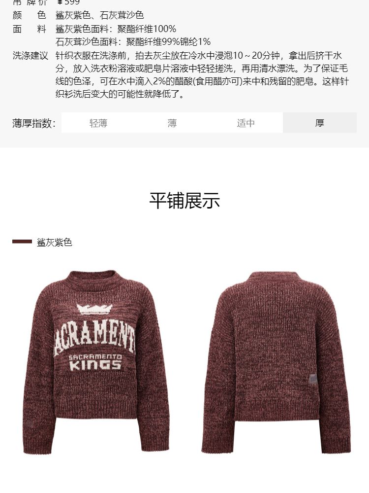 商品名称:【NBA联名款】春季显瘦遮肉慵懒风落肩针织衫女 487066