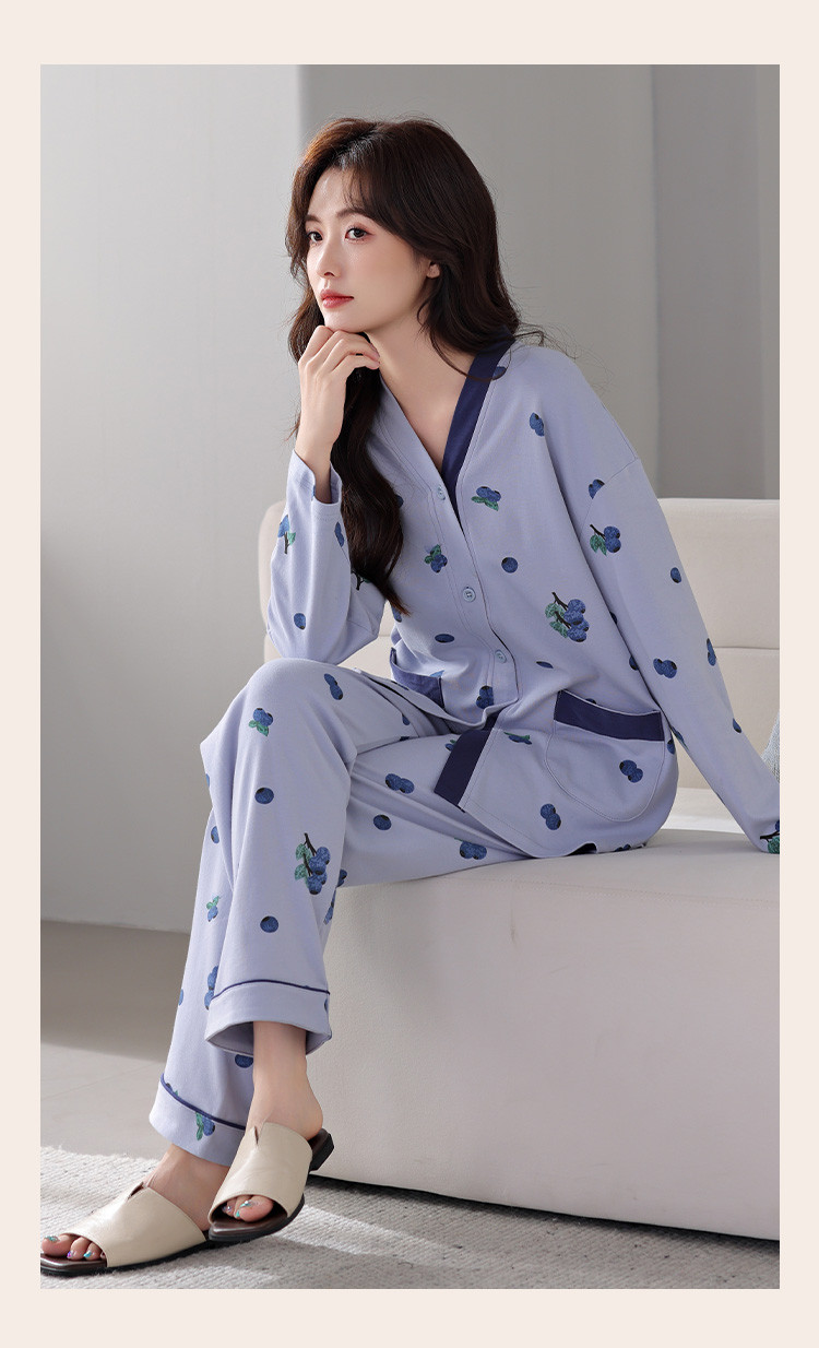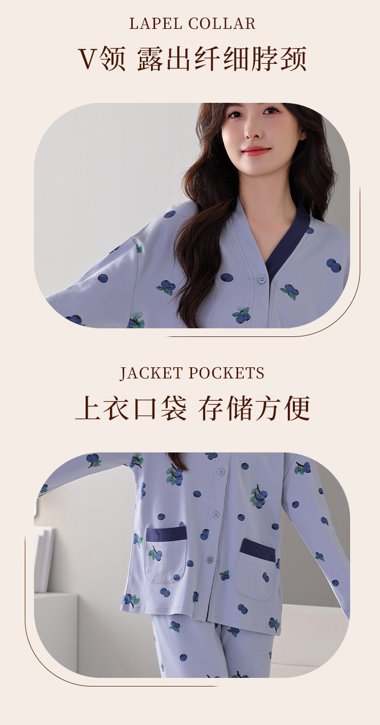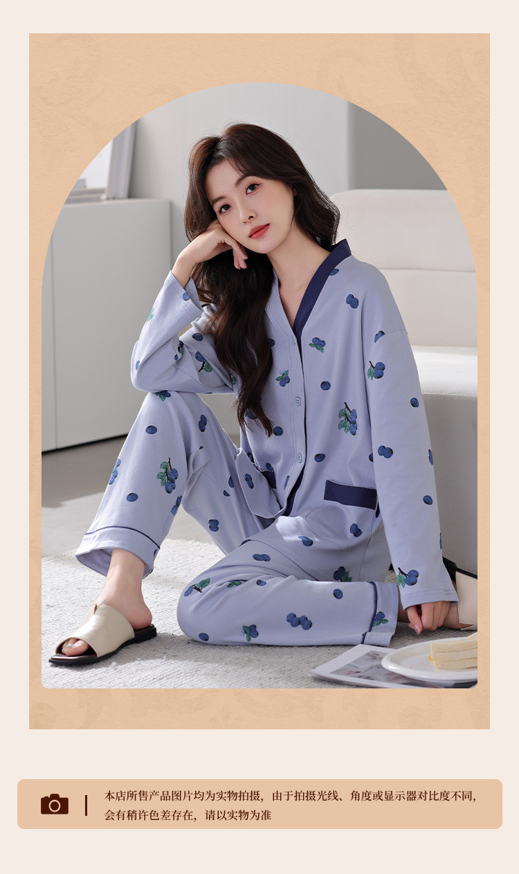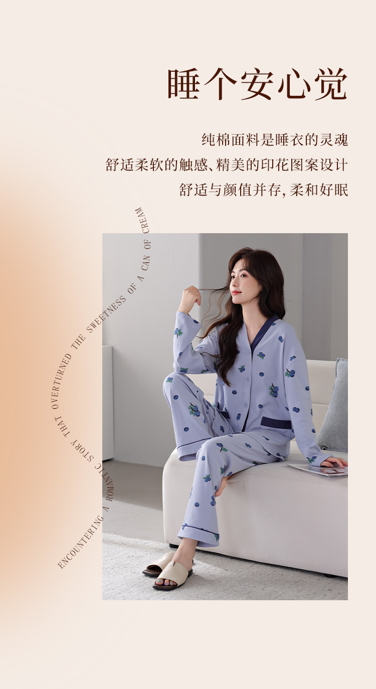 【100%棉】水果印花春秋款长袖睡衣女士居家可外穿家居服套装 924875