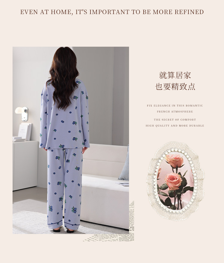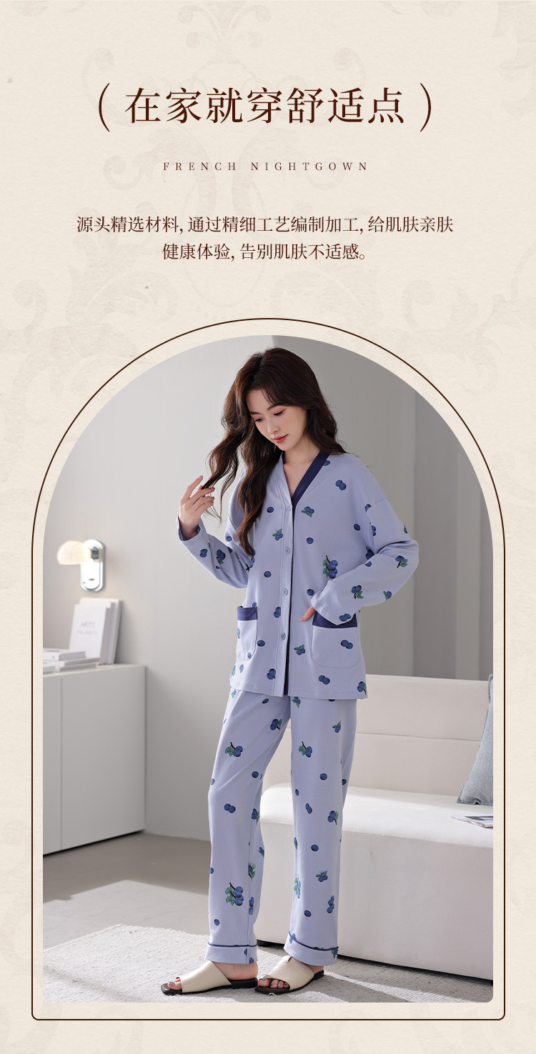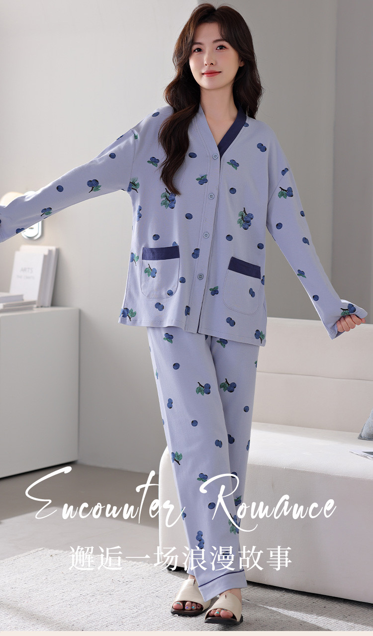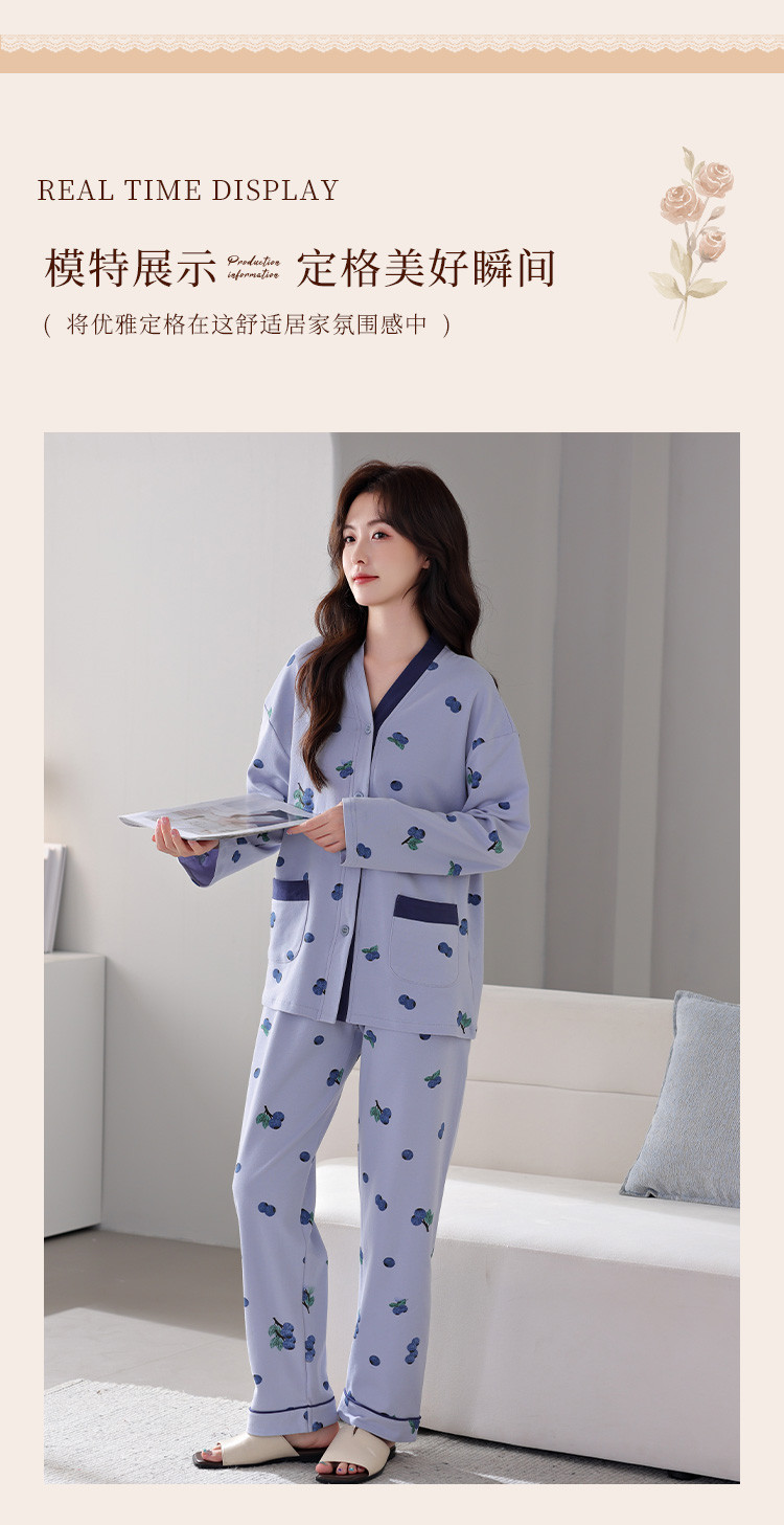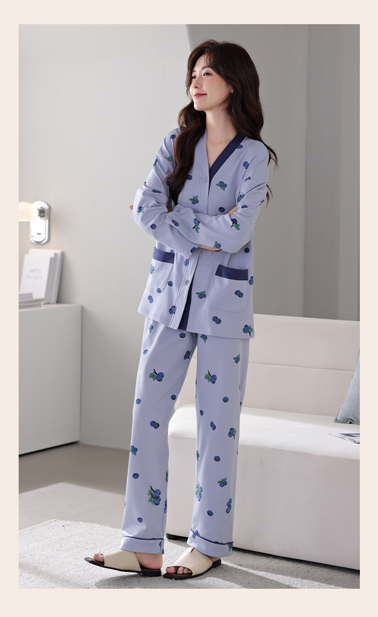 【100%棉】水果印花春秋款长袖睡衣女士居家可外穿家居服套装 924875