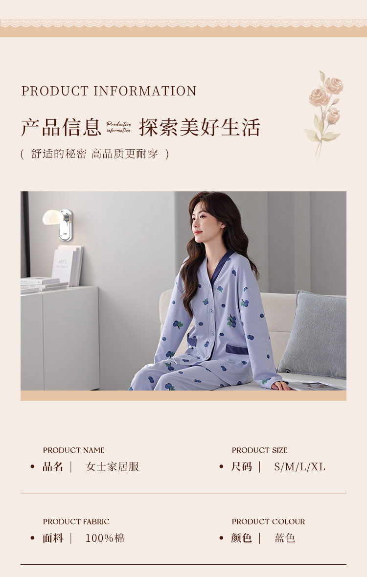 商品名称:【100%棉】水果印花春秋款长袖睡衣女士居家可外穿家居服套装 924875