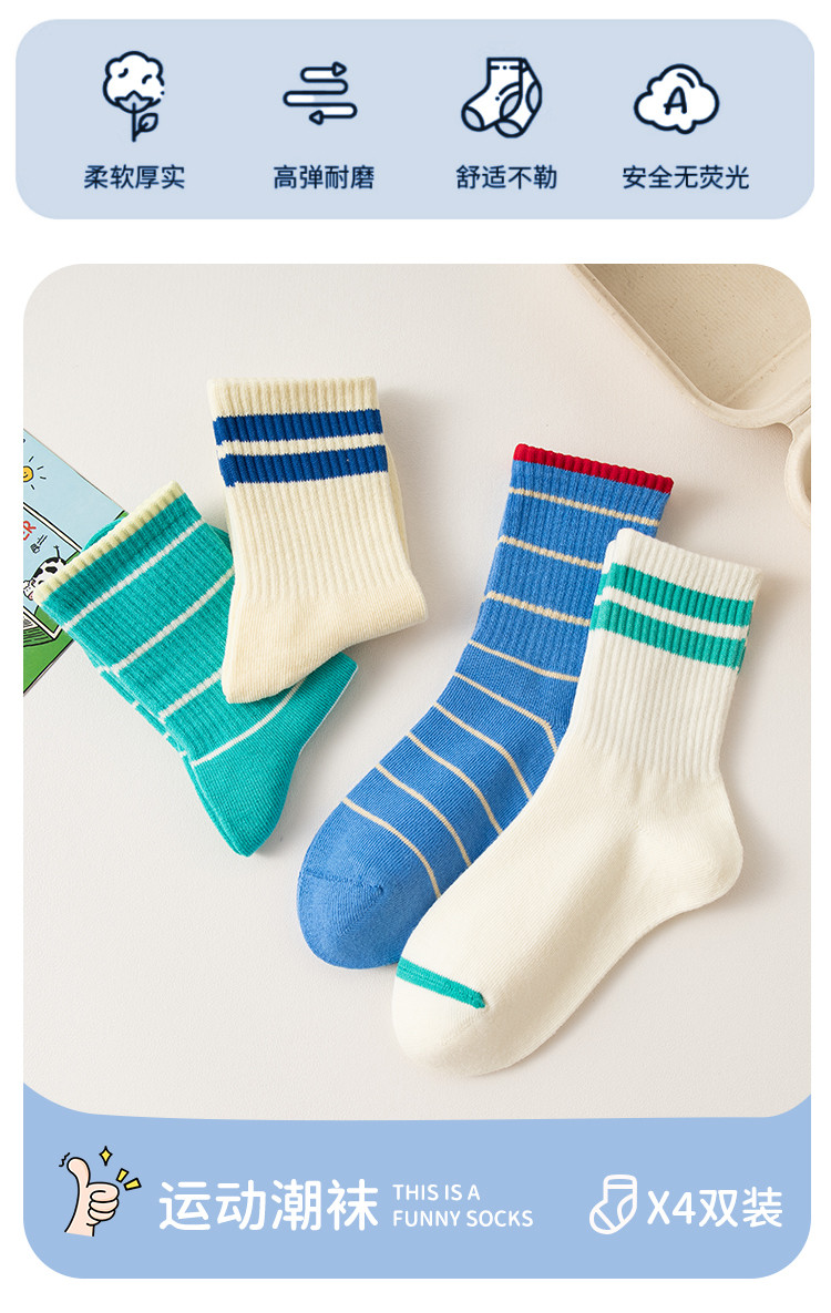 商品名称:无骨袜【上学必备】中大童袜子男童袜子运动棉袜不磨脚亲肤中筒袜 641355