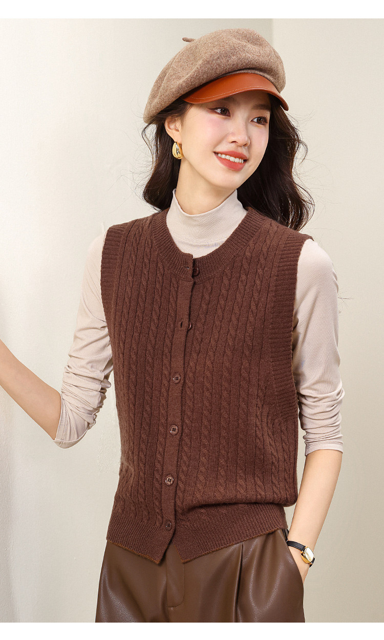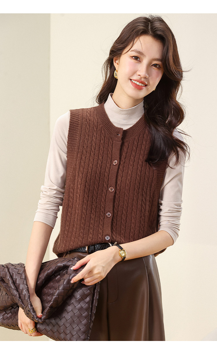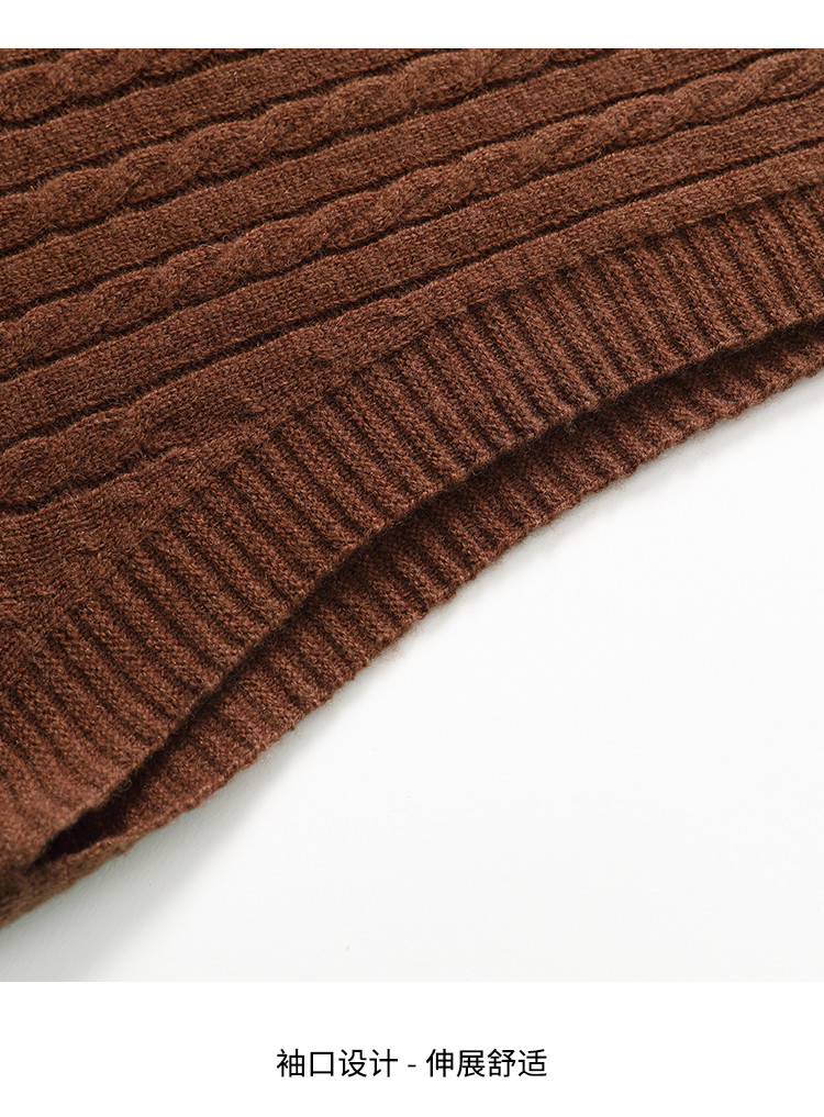 【100%绵羊毛】简约百搭纯色圆领绞花羊毛开衫背心马夹 514323