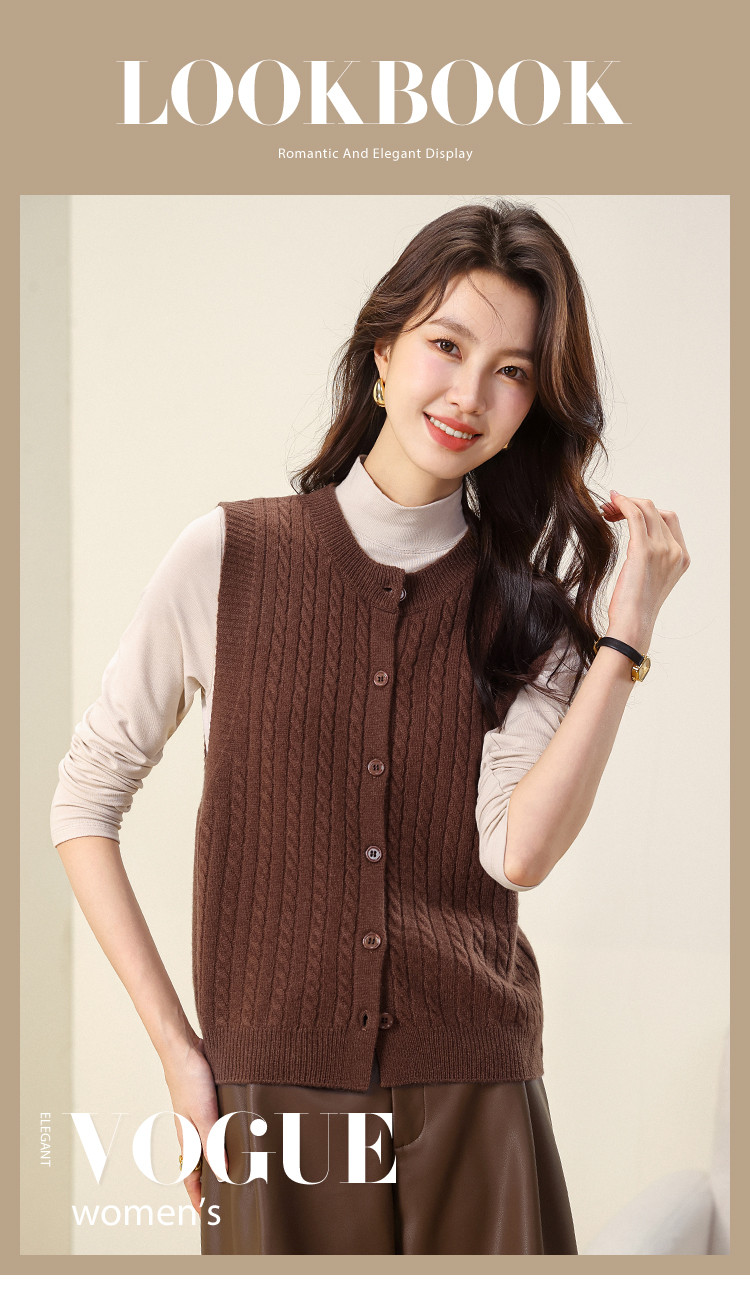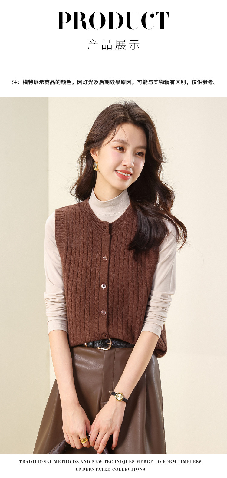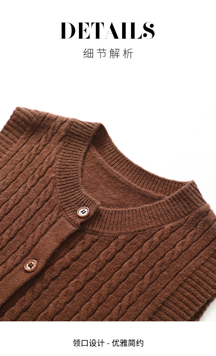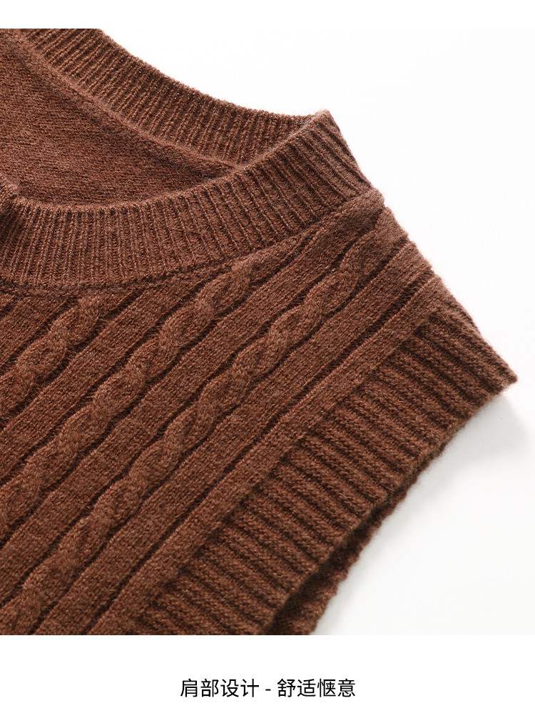 商品名称:【100%绵羊毛】简约百搭纯色圆领绞花羊毛开衫背心马夹 514323
