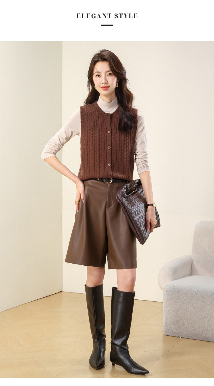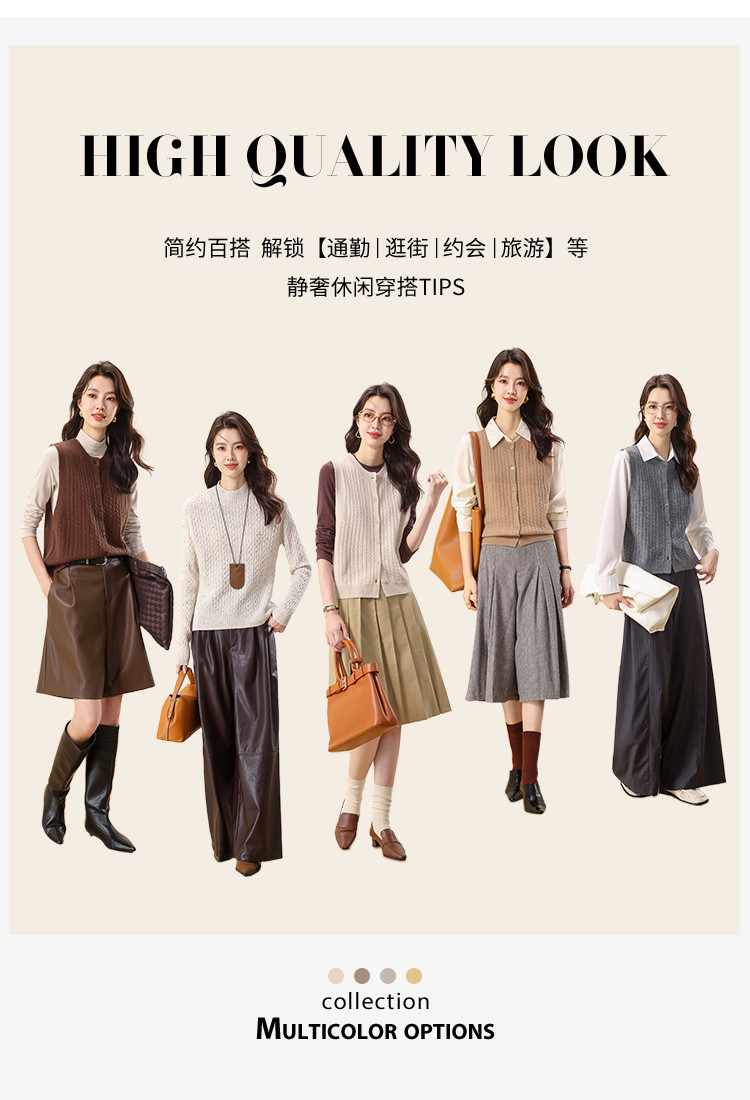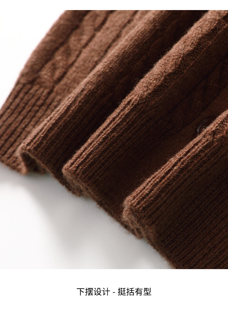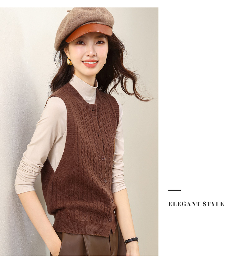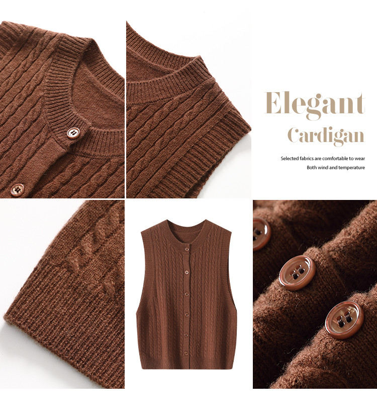 商品名称:【100%绵羊毛】简约百搭纯色圆领绞花羊毛开衫背心马夹 514323