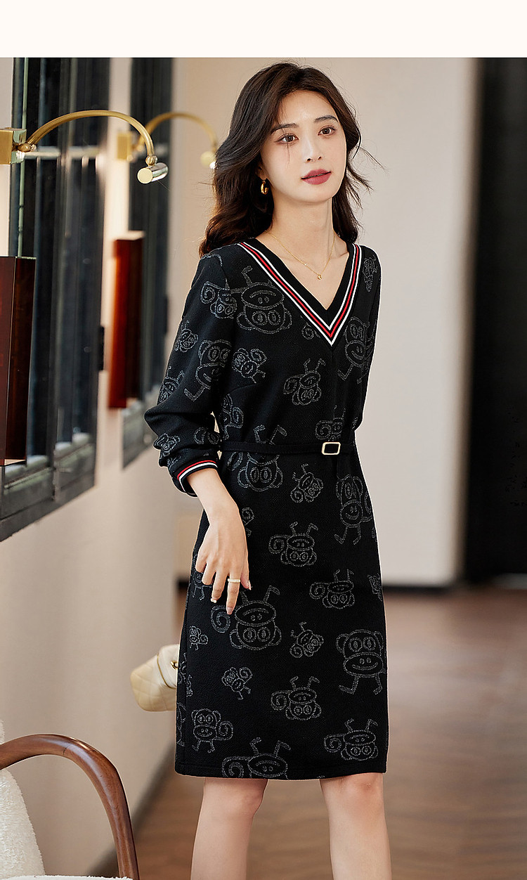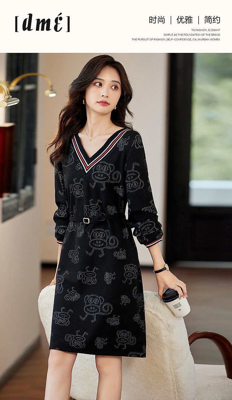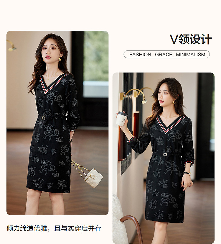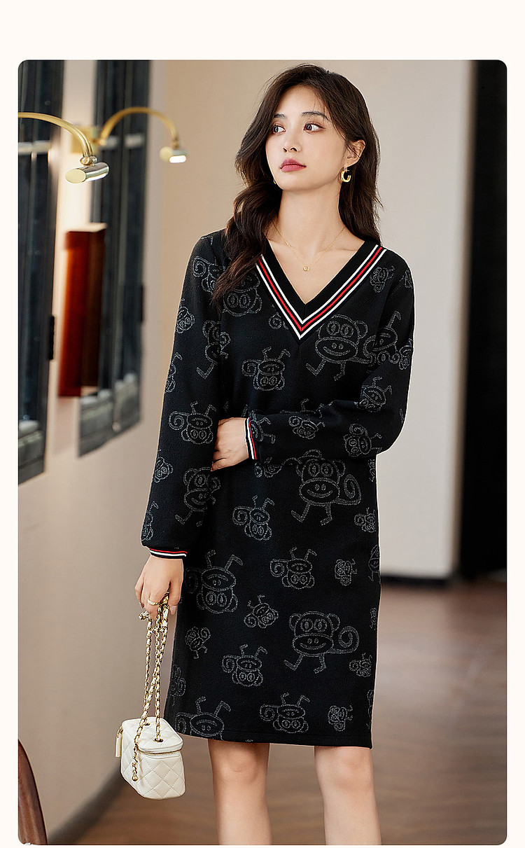 商品名称:【松弛一下】秋季办公室通勤V领宽松遮肉好搭针织连衣裙女中长款 243393