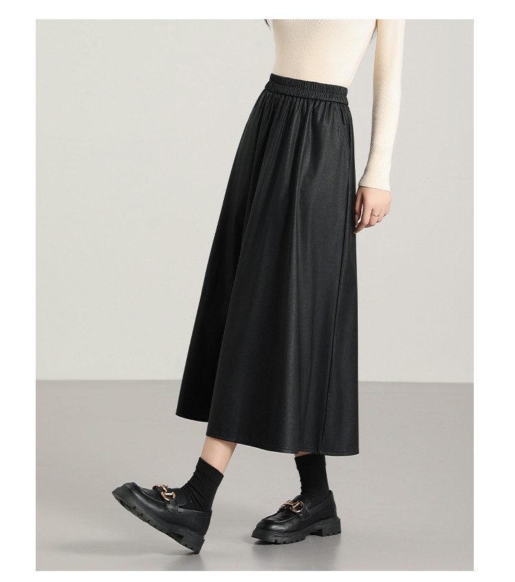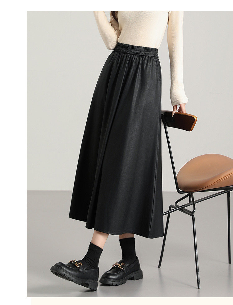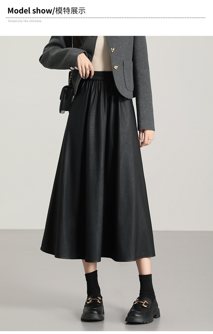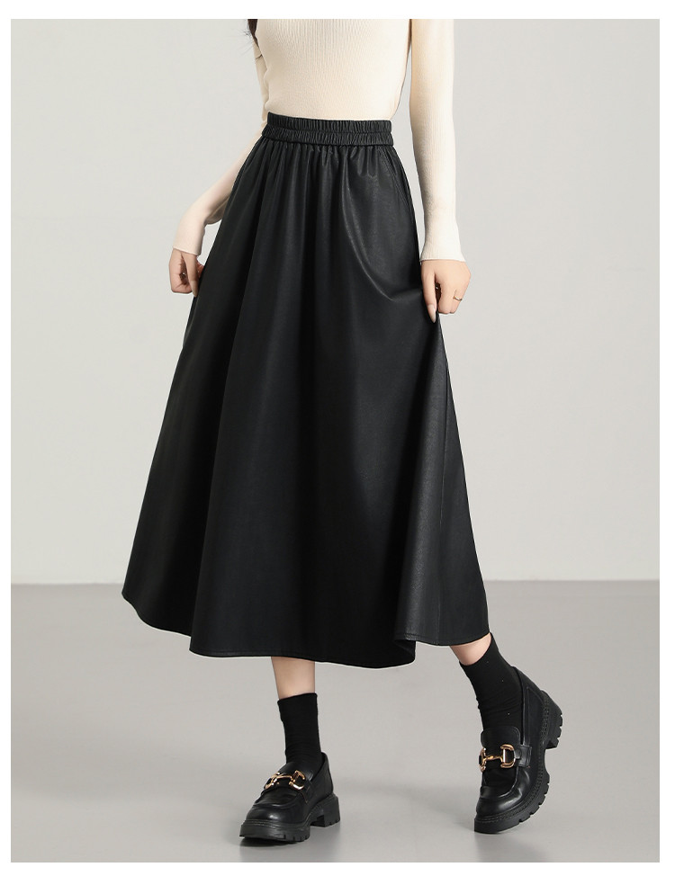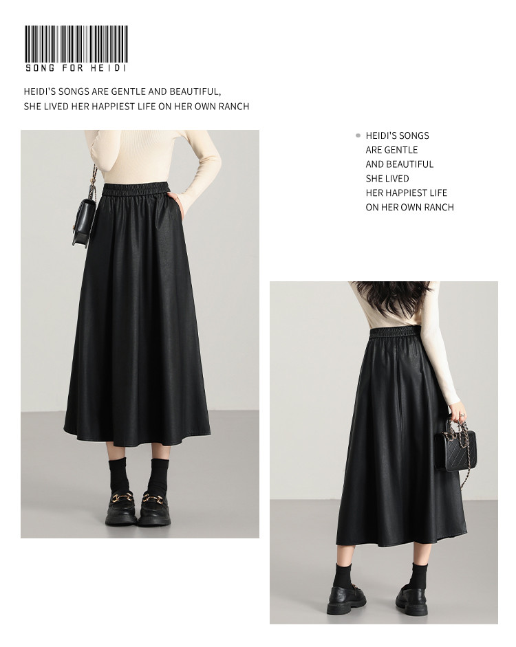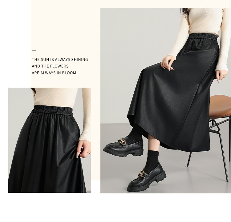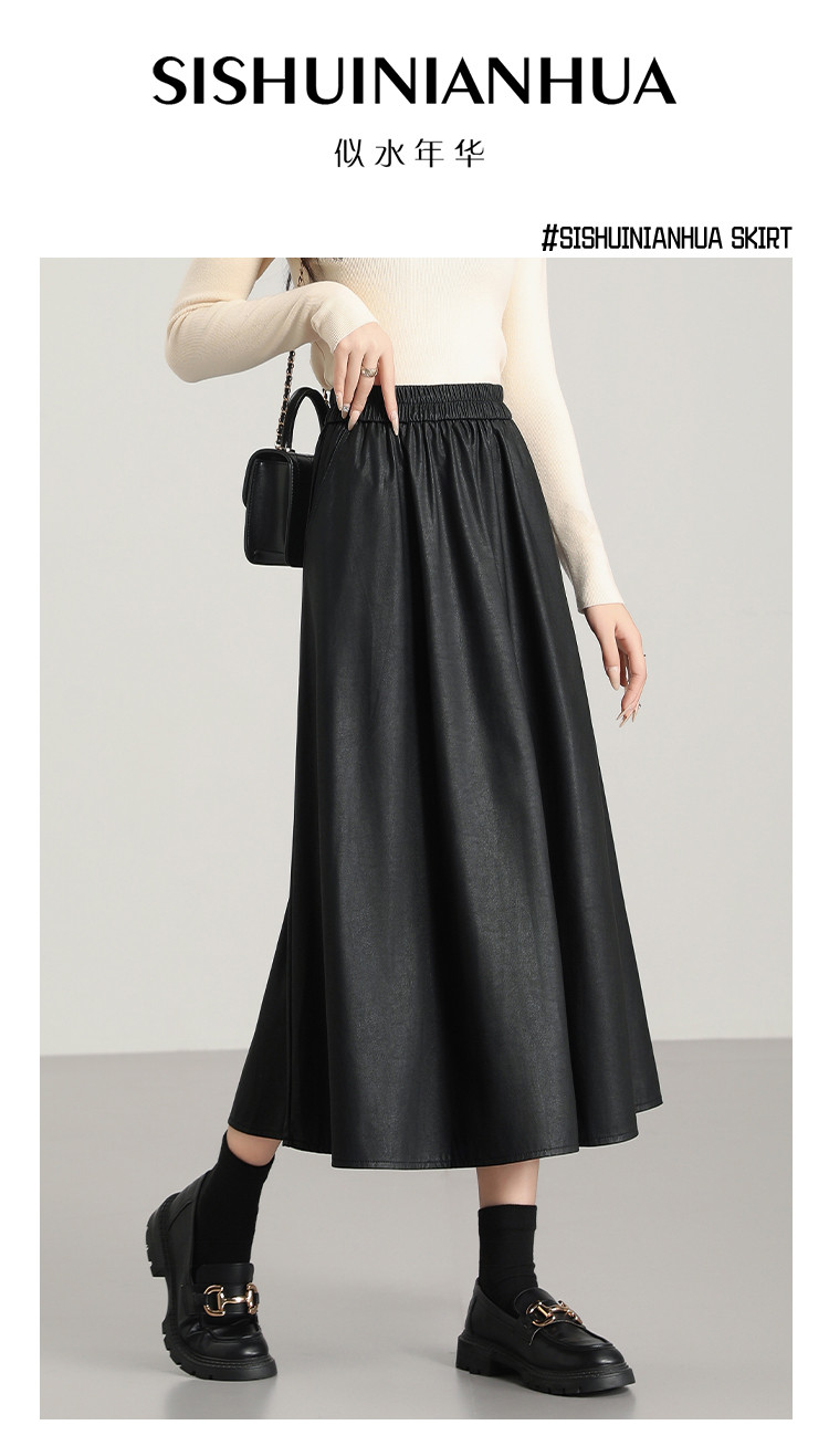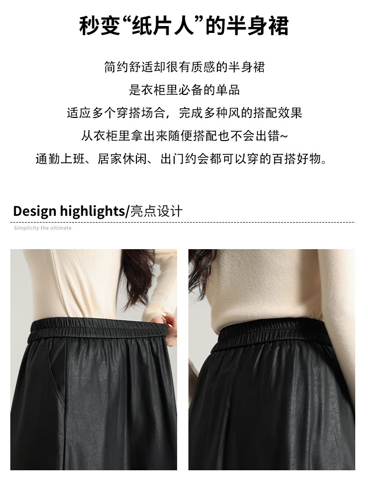 商品名称:轻奢高级感pu皮中长款半截裙春季休闲松紧腰A字裙 295704