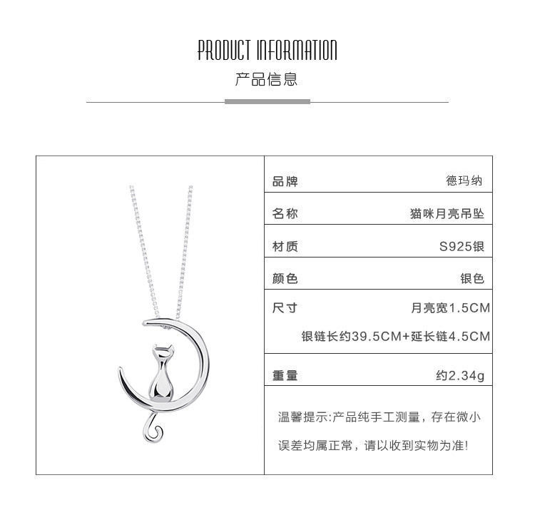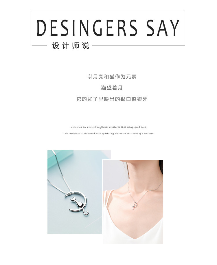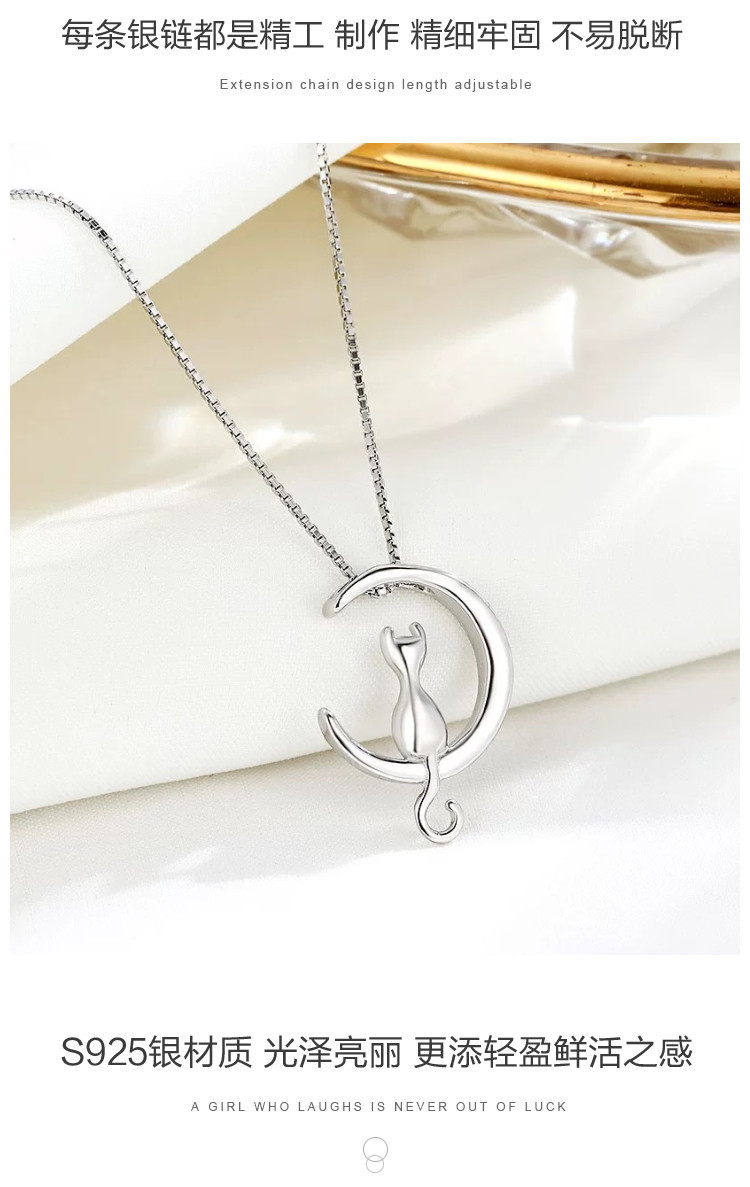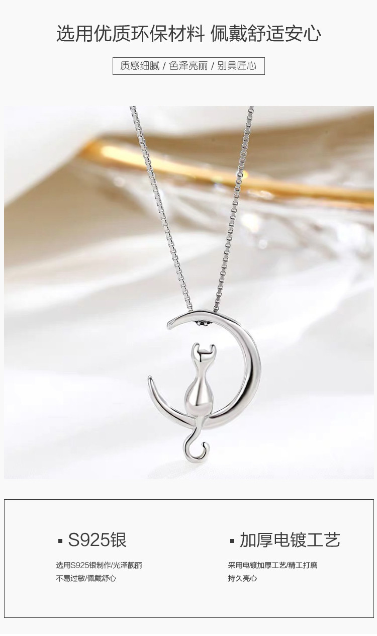 商品名称:小众个性猫咪探月925银项链女设计感锁骨链 154881