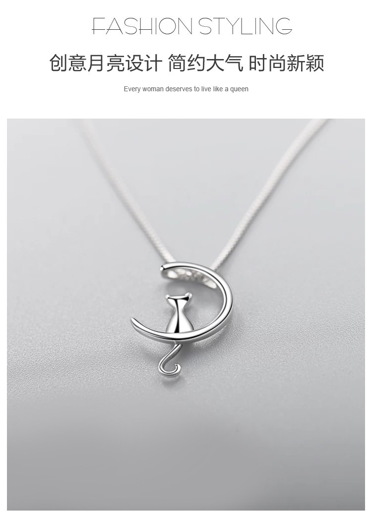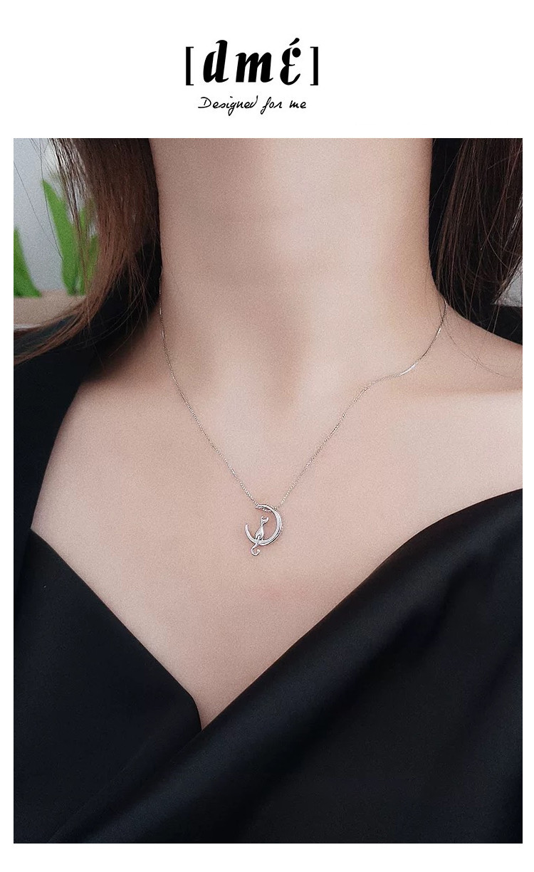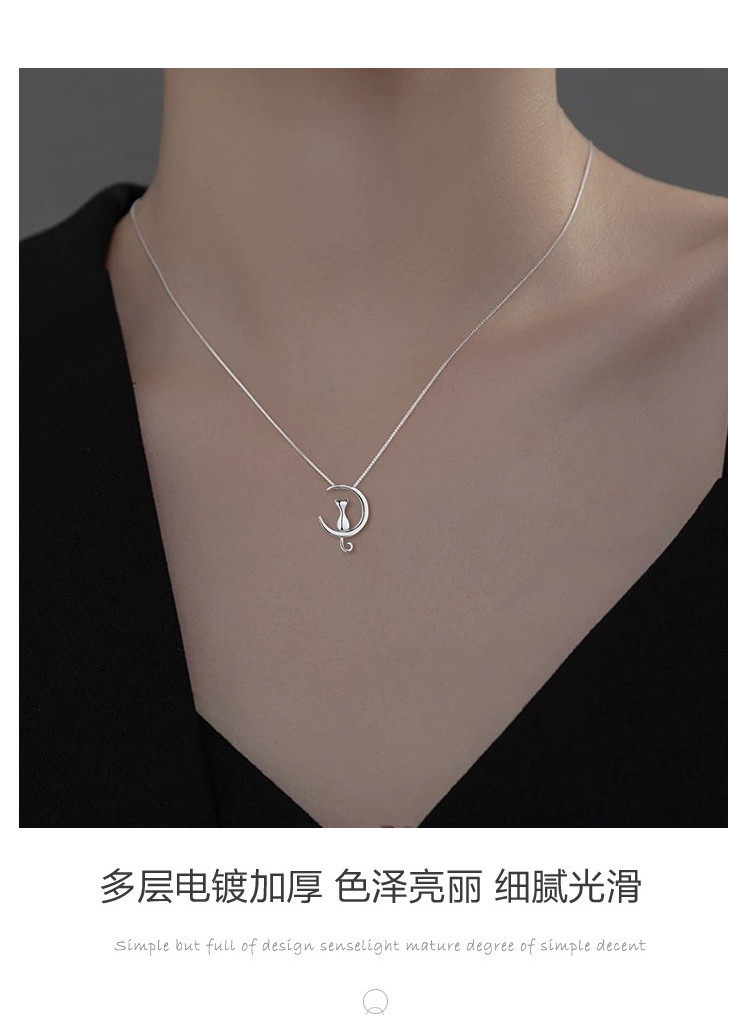 小众个性猫咪探月925银项链女设计感锁骨链 154881