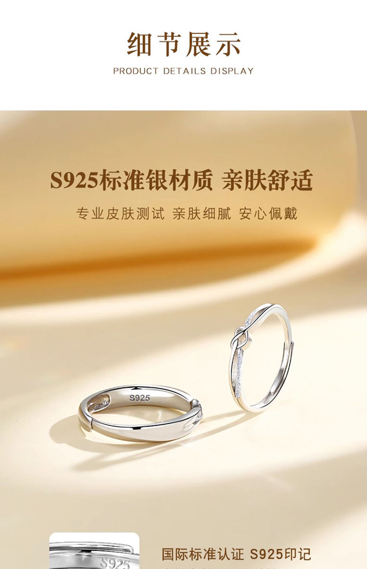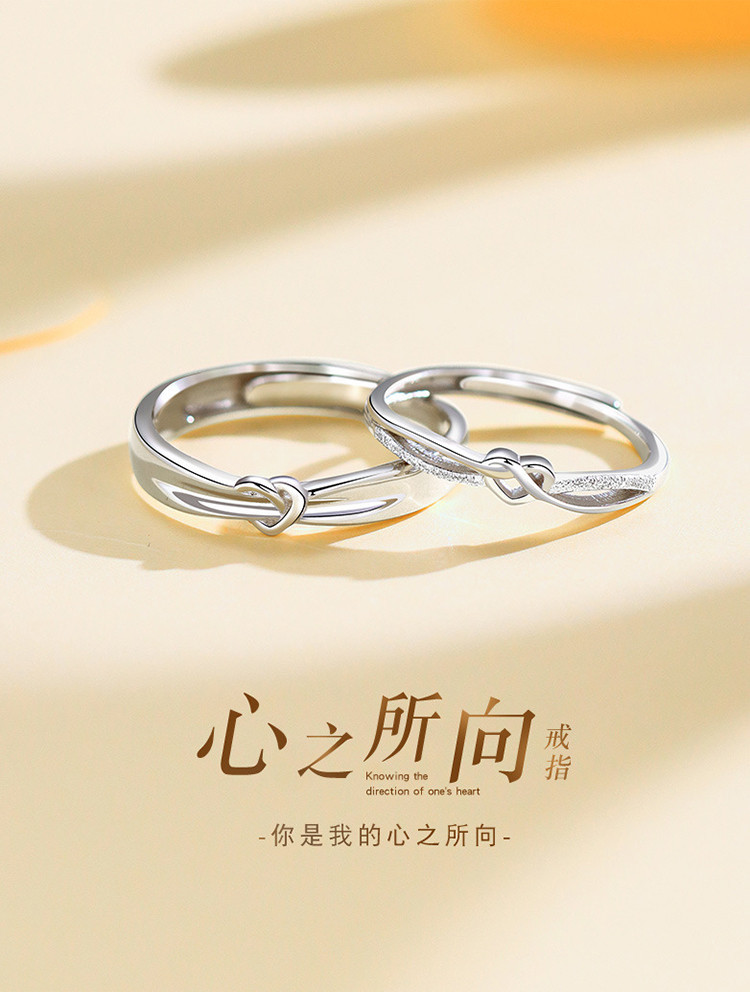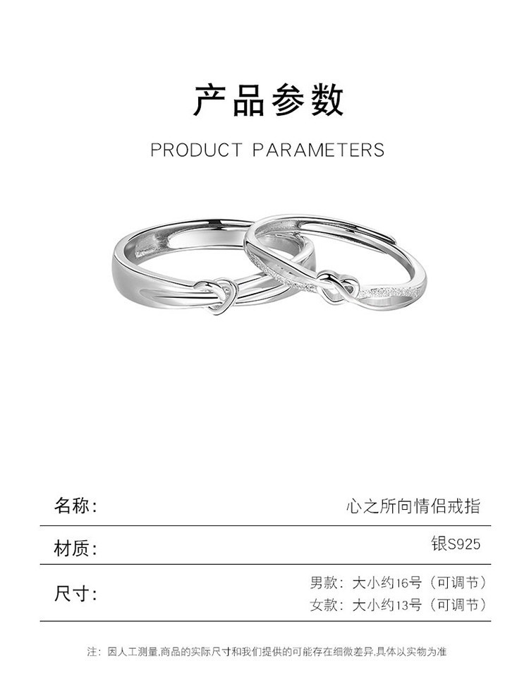 商品名称:心之所向s925银情侣戒指男女小众简约对戒情人节礼物 294145