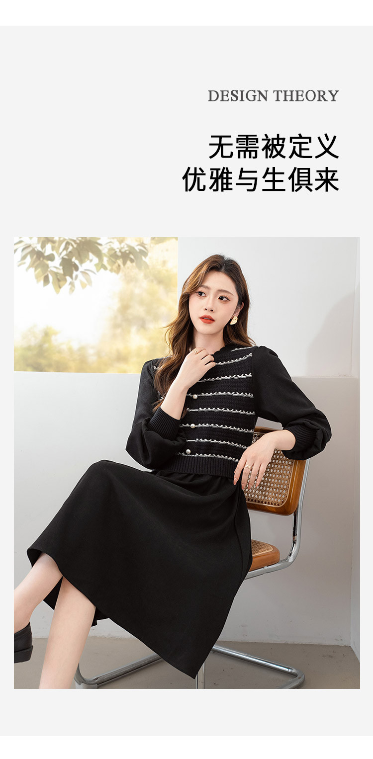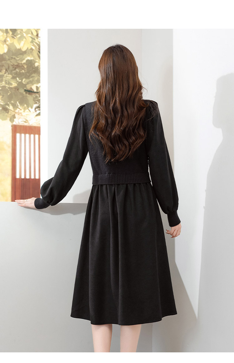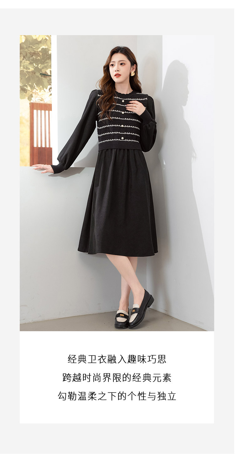 商品名称:高级感气质假两件针织拼接连衣裙女春季小个子时尚百搭显瘦中长裙 873240