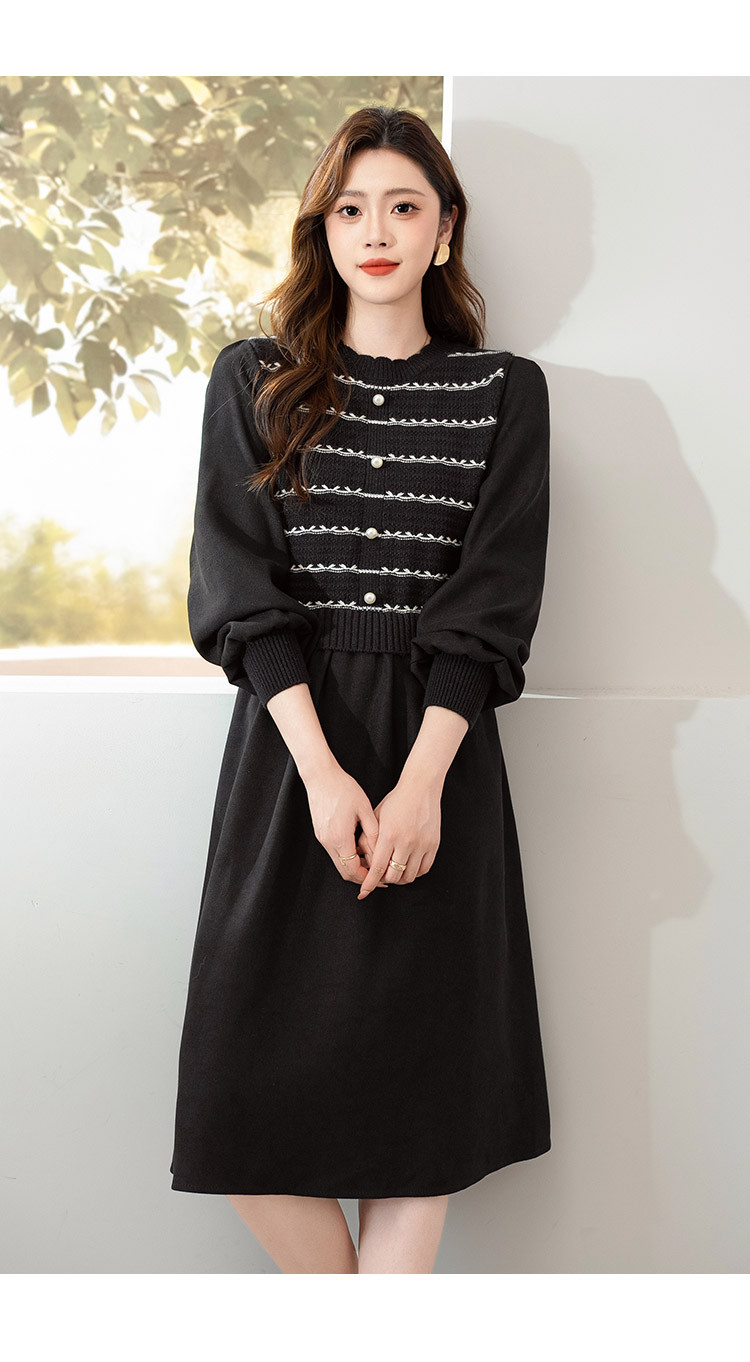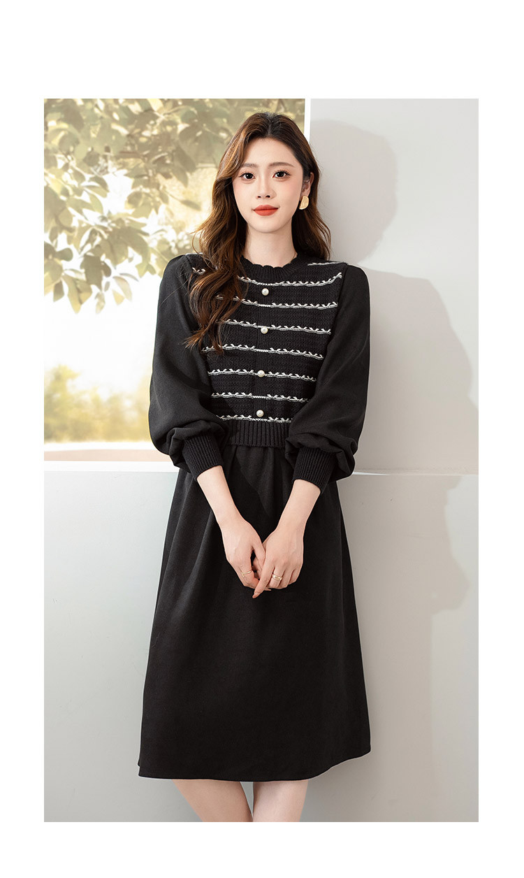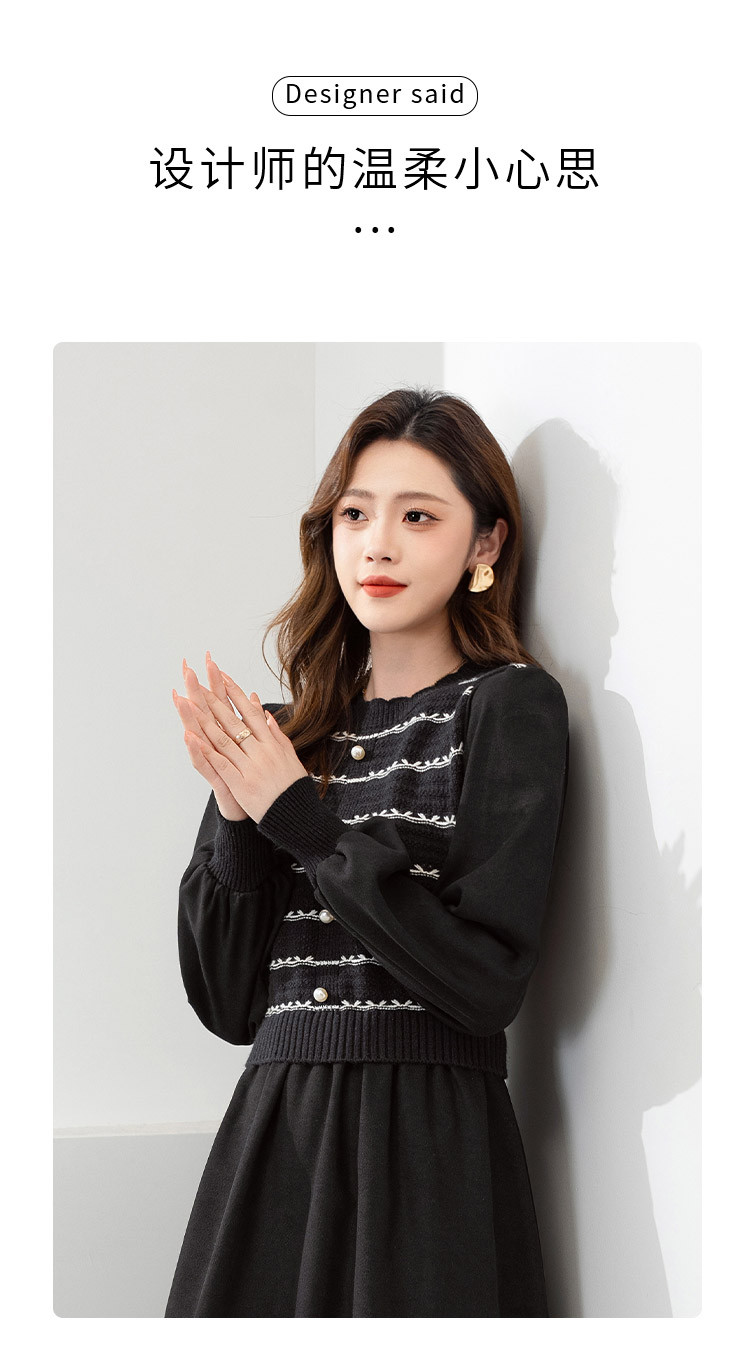 高级感气质假两件针织拼接连衣裙女春季小个子时尚百搭显瘦中长裙 873240