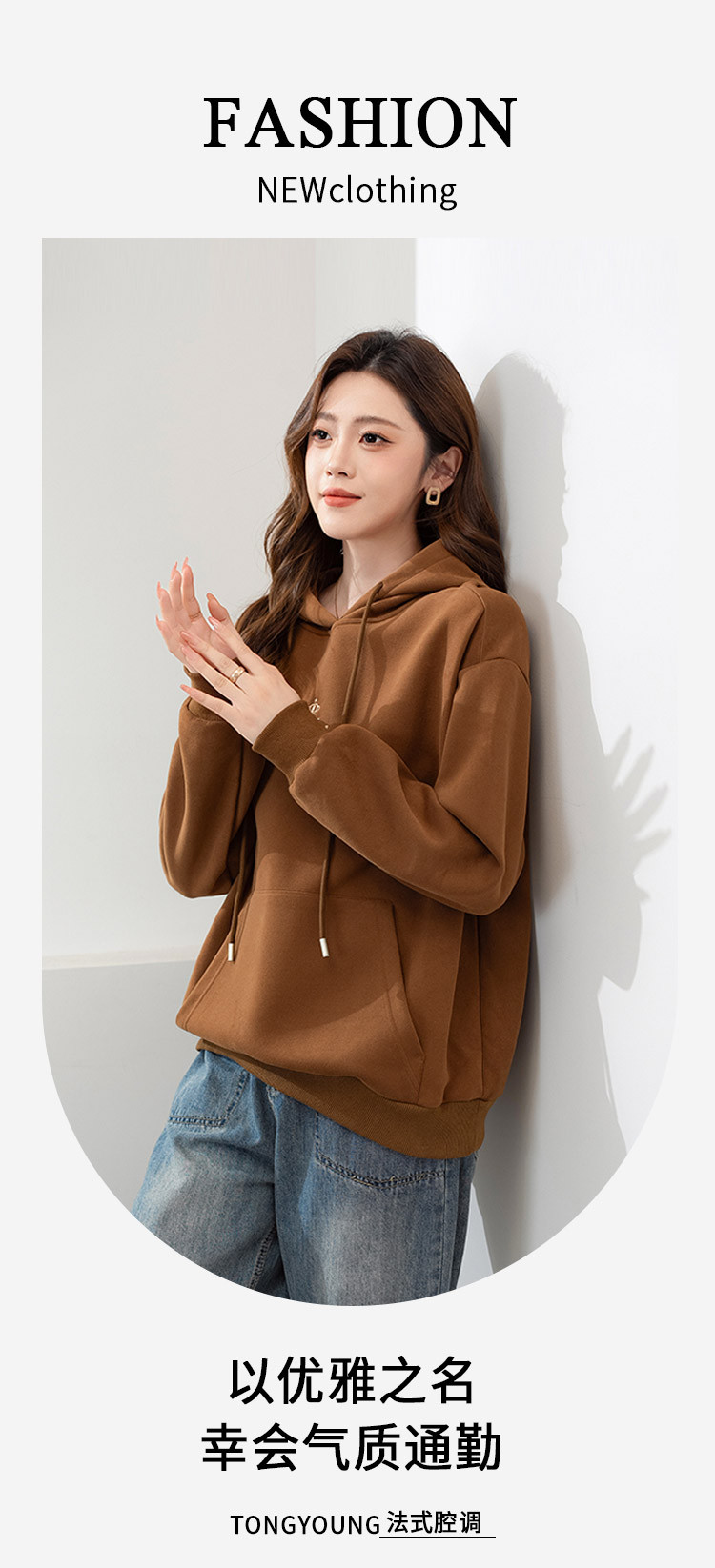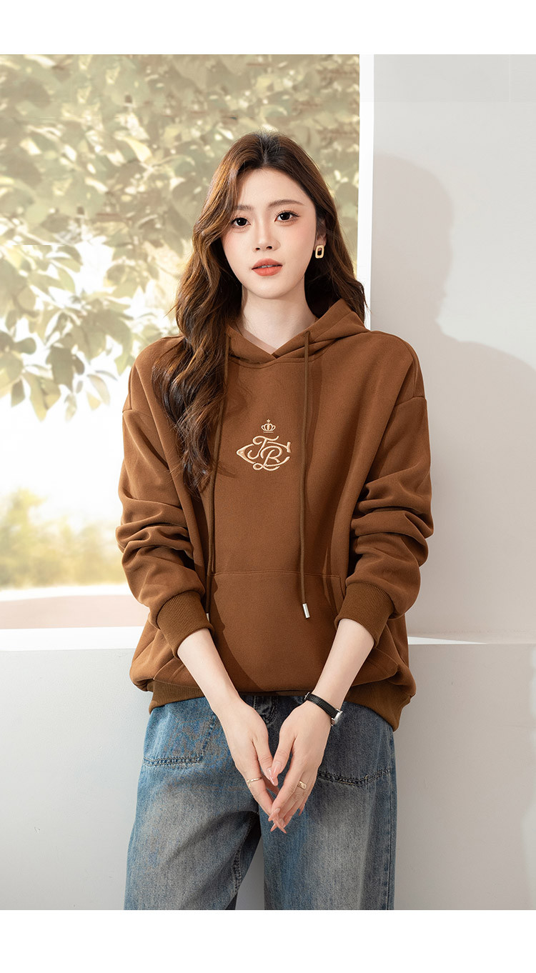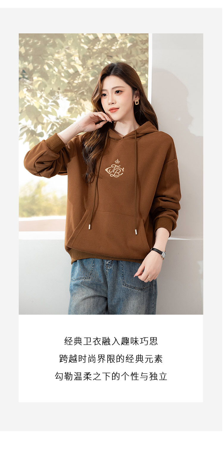 商品名称:时尚通勤百搭减龄连帽女式卫衣女春季小个子宽松休闲显瘦上衣潮 381720