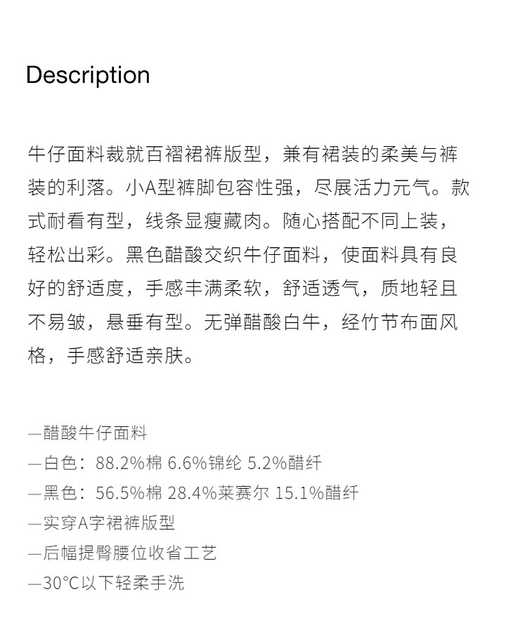 商品名称:春装气质简约显瘦a字百褶裙裤牛仔短裤女 493263