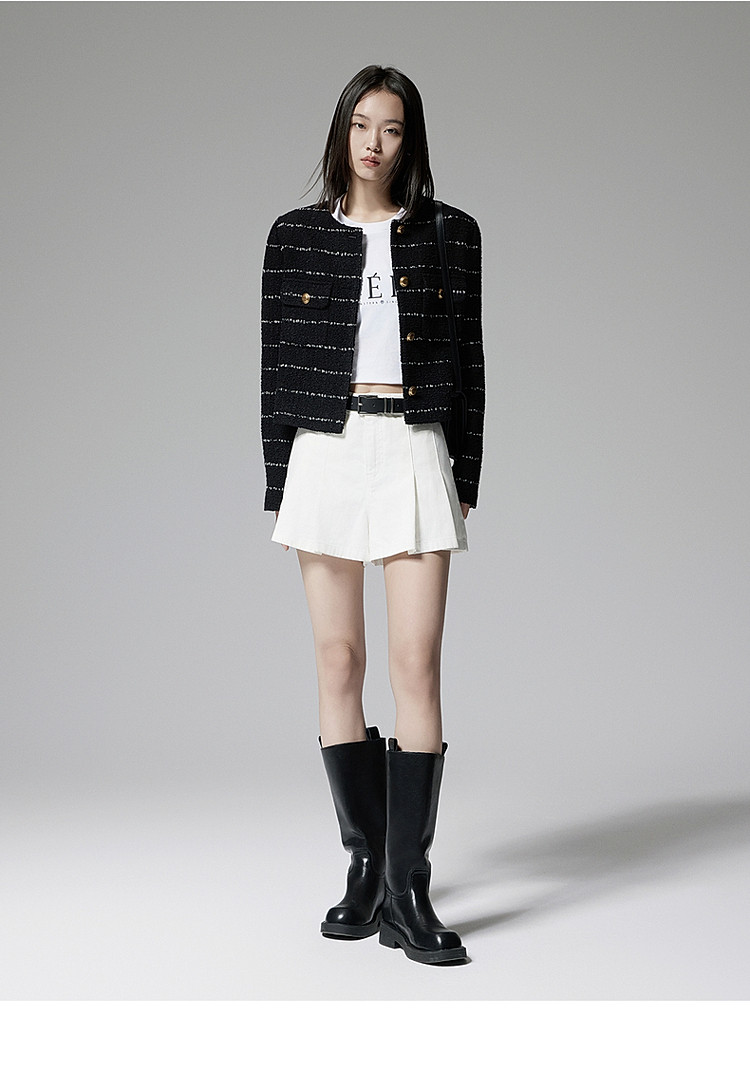 春装气质简约显瘦a字百褶裙裤牛仔短裤女 493263