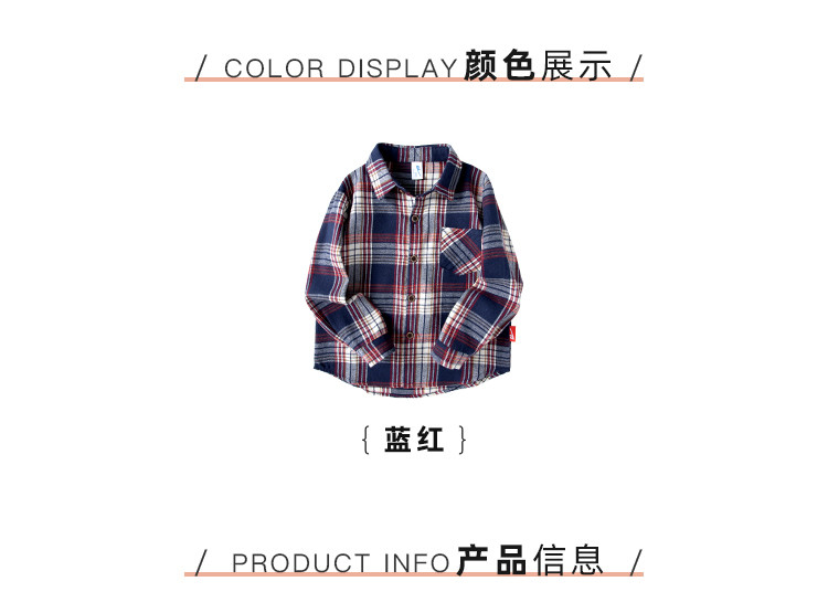 商品名称:【加绒可选】春季男童中大童时尚休闲蓝红格纹儿童衬衫 614547