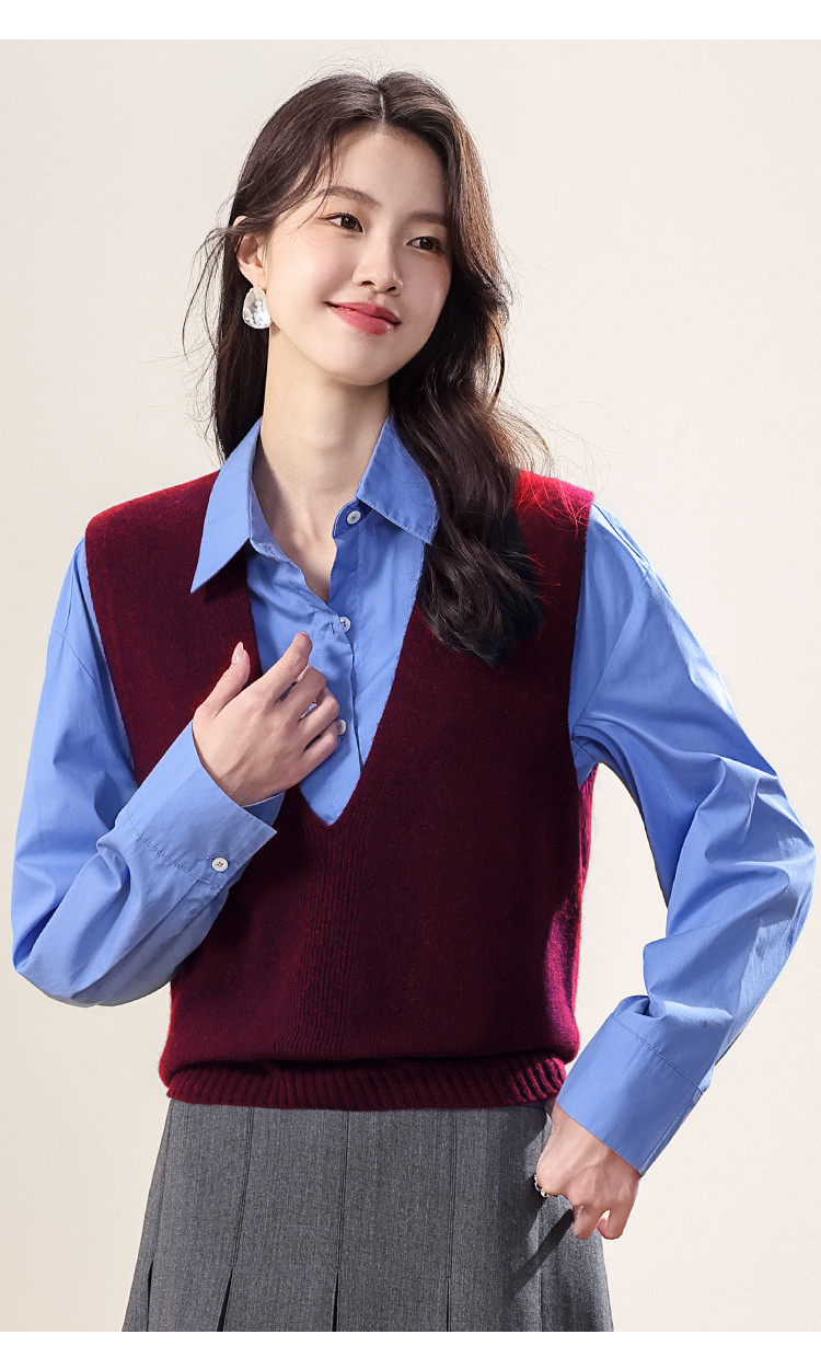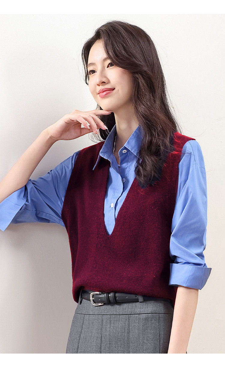 纯色V领春款100羊毛背心无袖毛衣坎肩马甲羊毛衫 994451