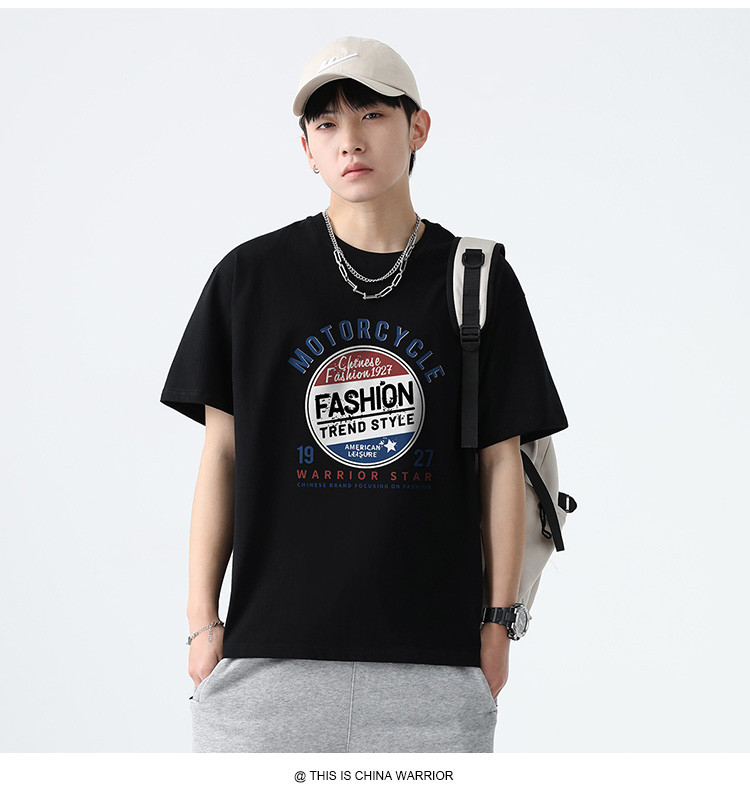 商品名称:男式打底衫夏季纯棉百搭胸前大logo圆领短袖舒适文化衫上衣潮 210963
