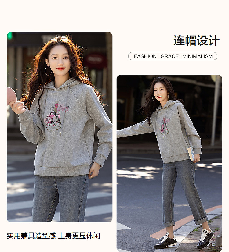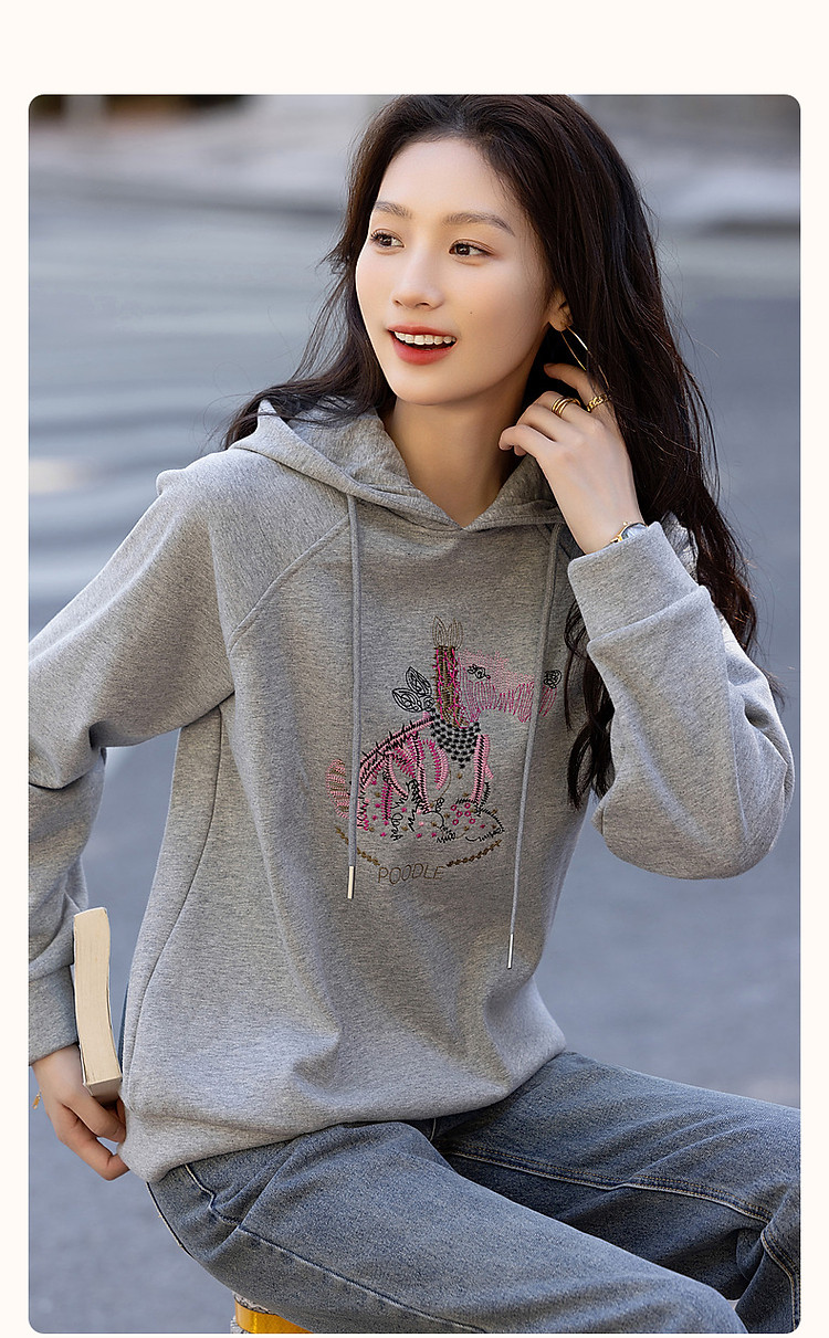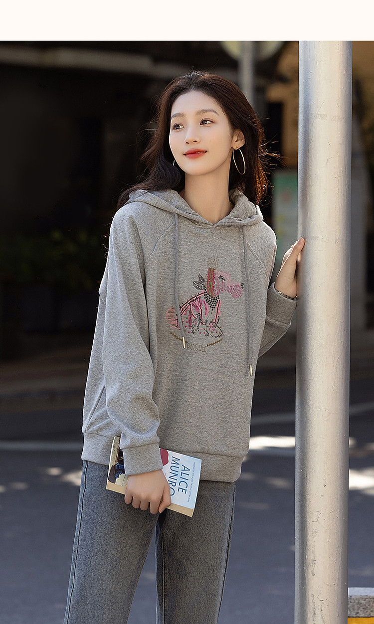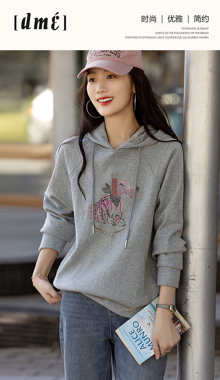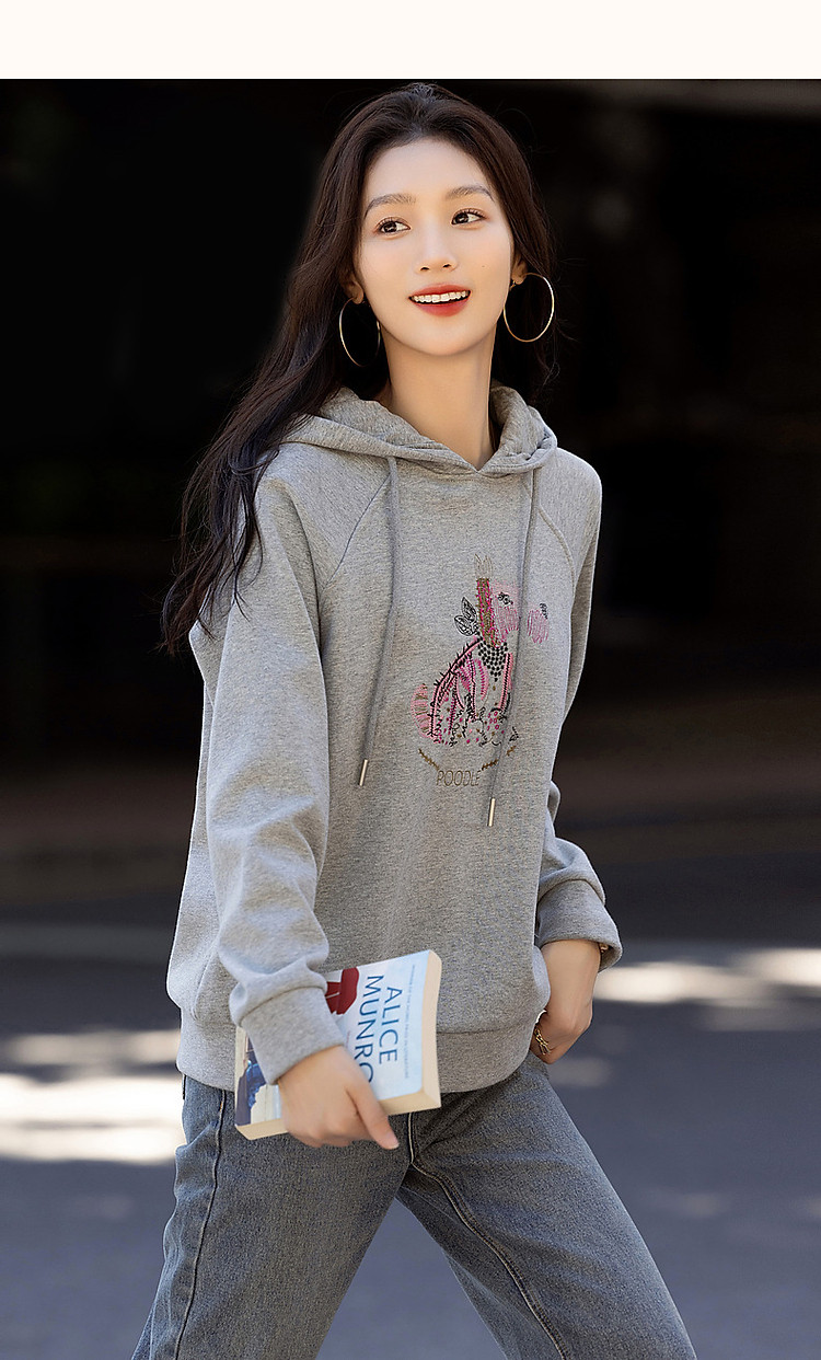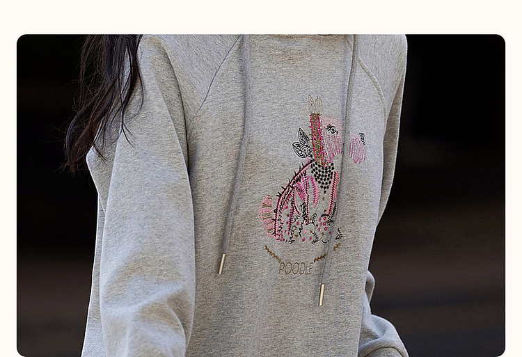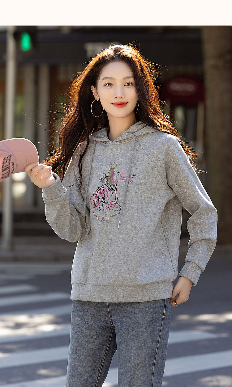 商品名称:【童话动物小镇】冬云感纯棉加绒连帽萌狗绣花舒适遮肉卫衣女上衣 511681