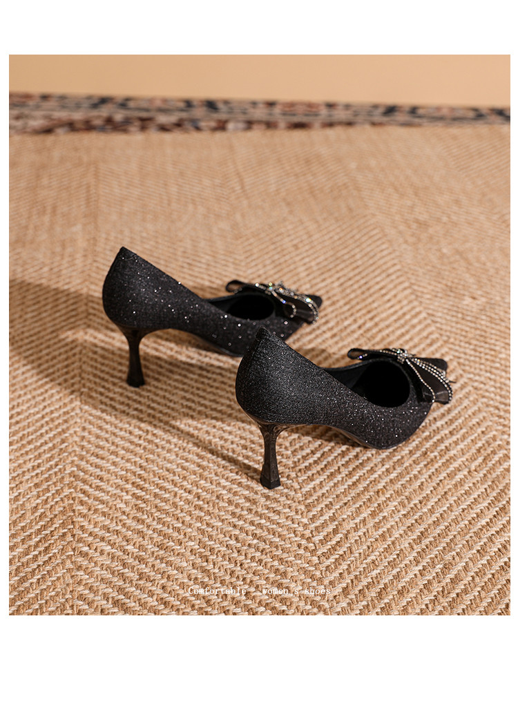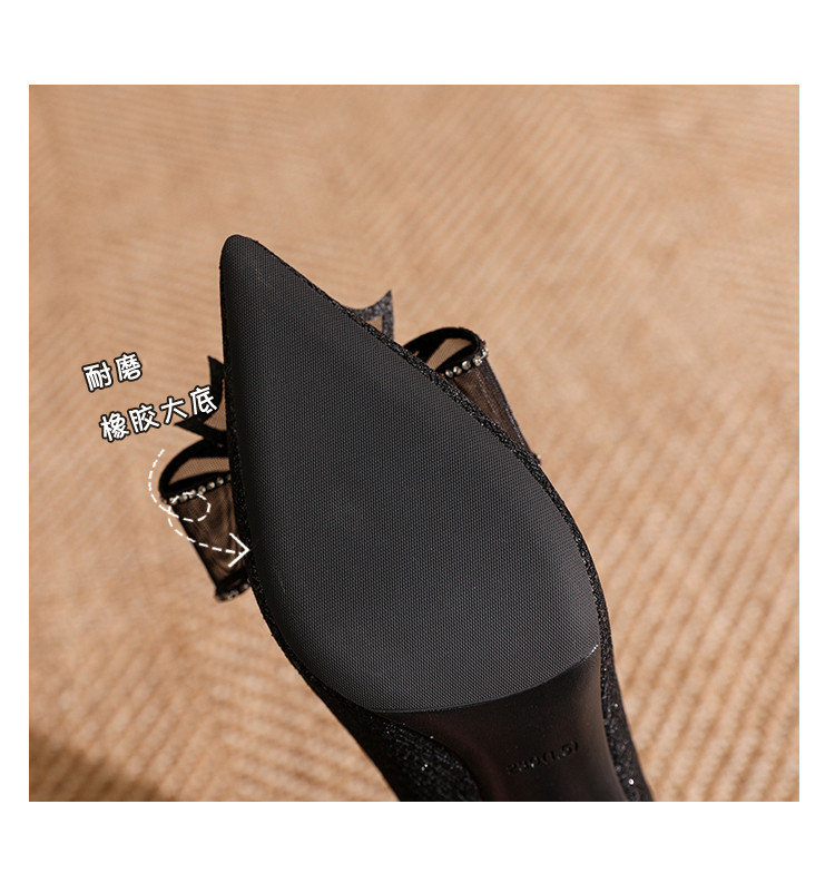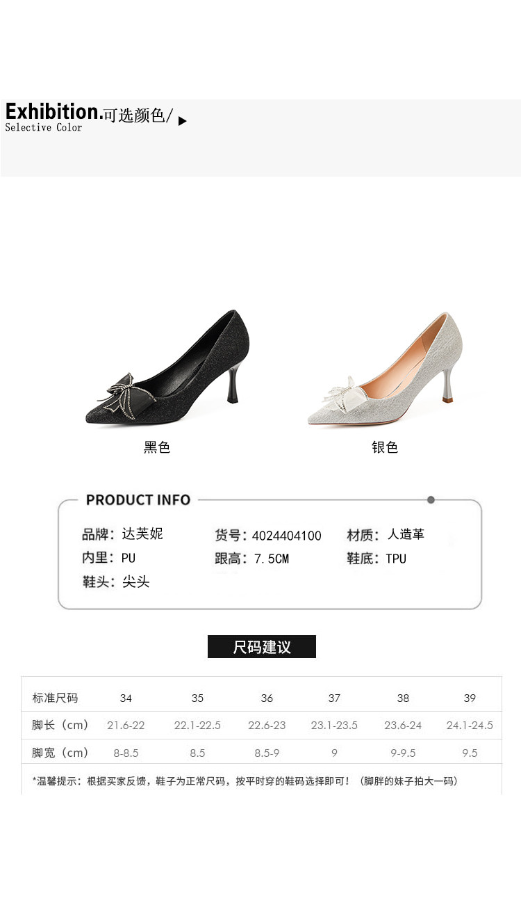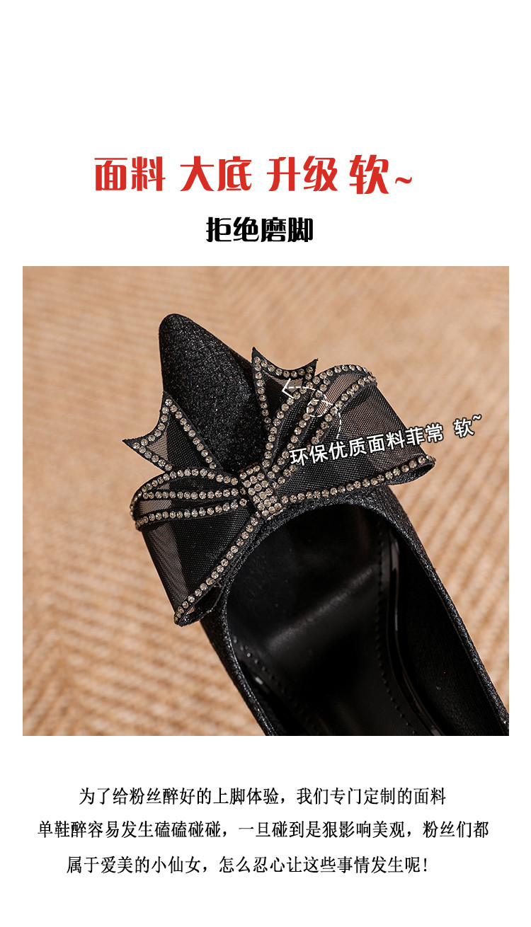 商品名称:春夏时尚蝴蝶结细跟高跟鞋女气质尖头单鞋时装鞋一脚蹬职场通勤鞋 331543