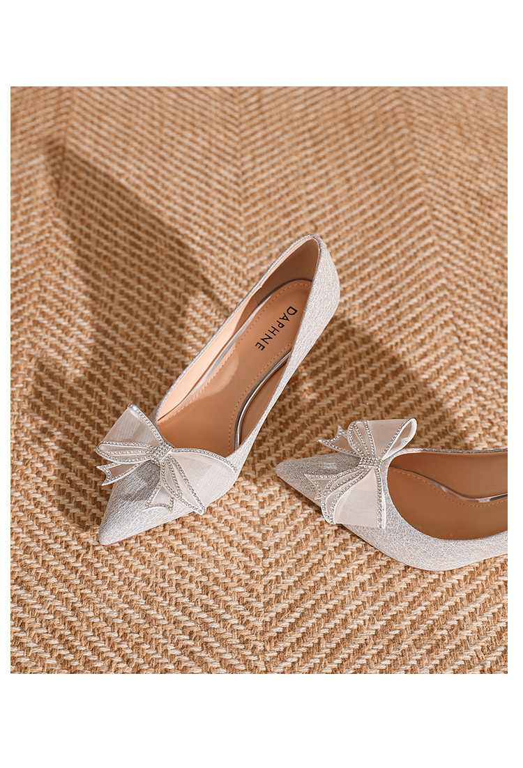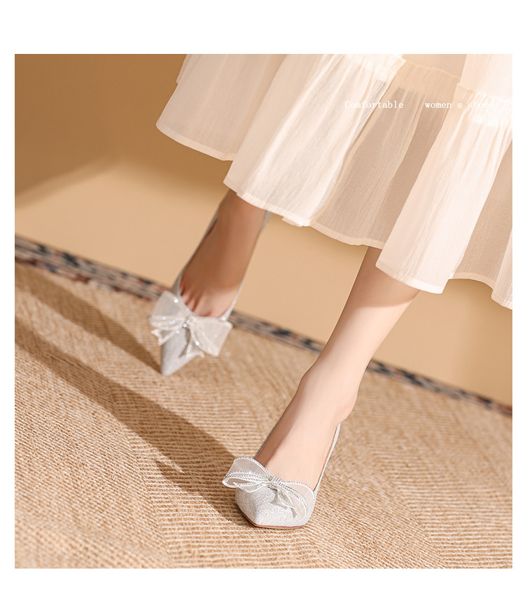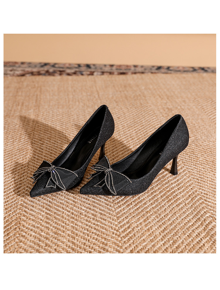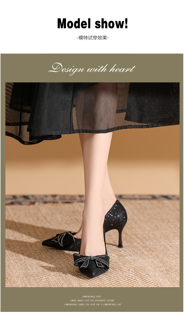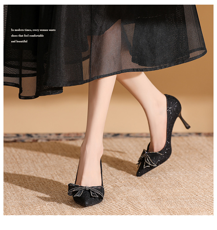 商品名称:春夏时尚蝴蝶结细跟高跟鞋女气质尖头单鞋时装鞋一脚蹬职场通勤鞋 331543