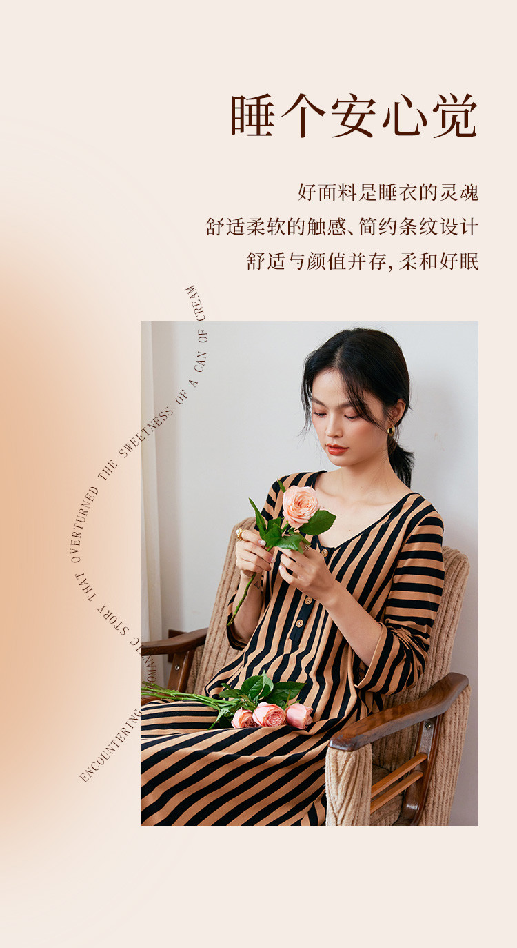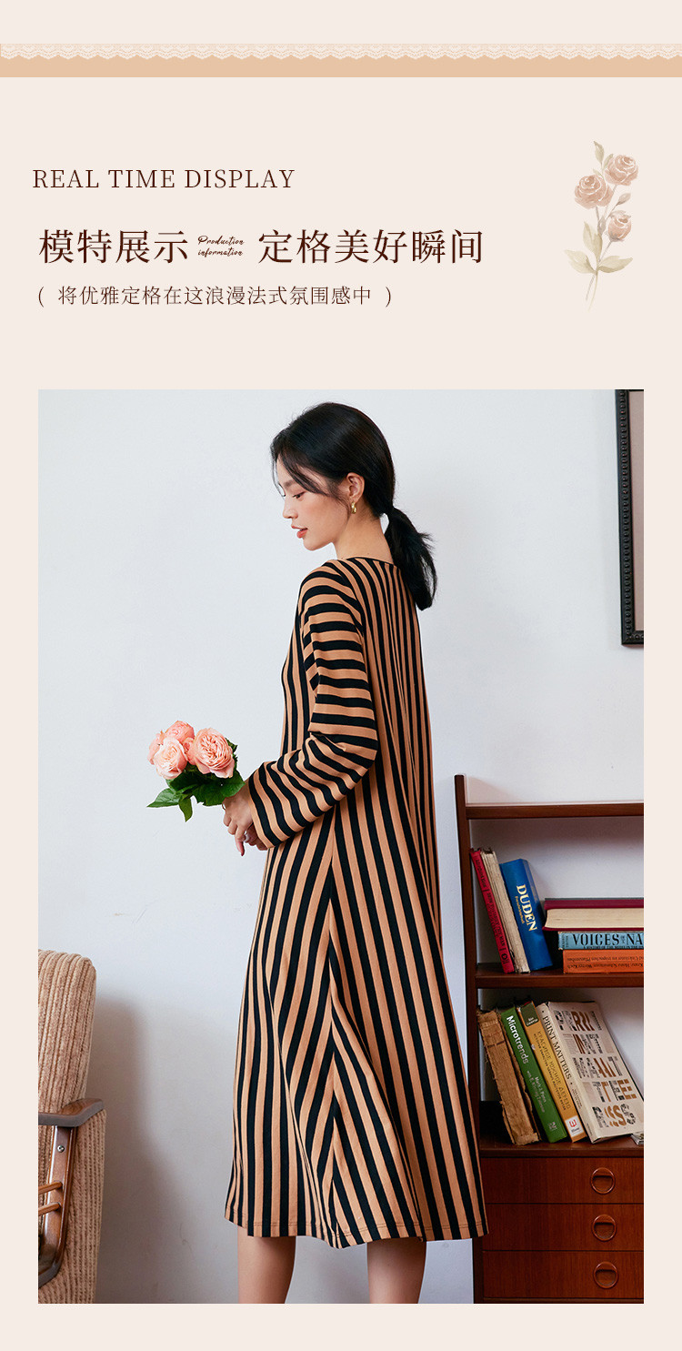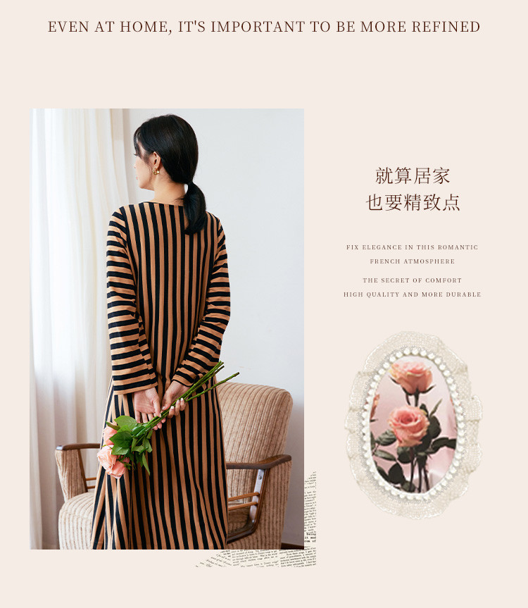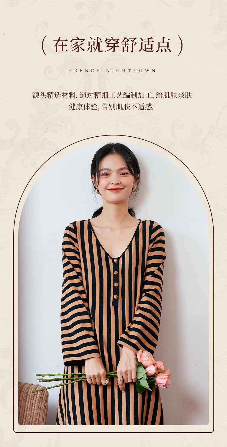 商品名称:【时尚条纹】法式轻奢长袖睡裙春秋款高级感女士睡衣家居服可外穿 626571