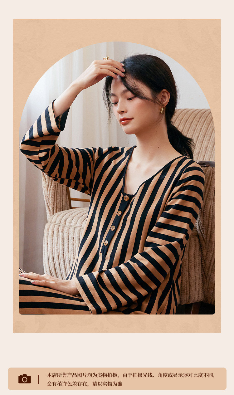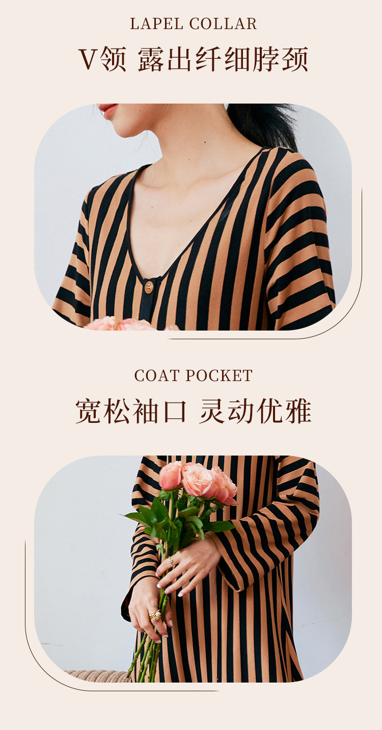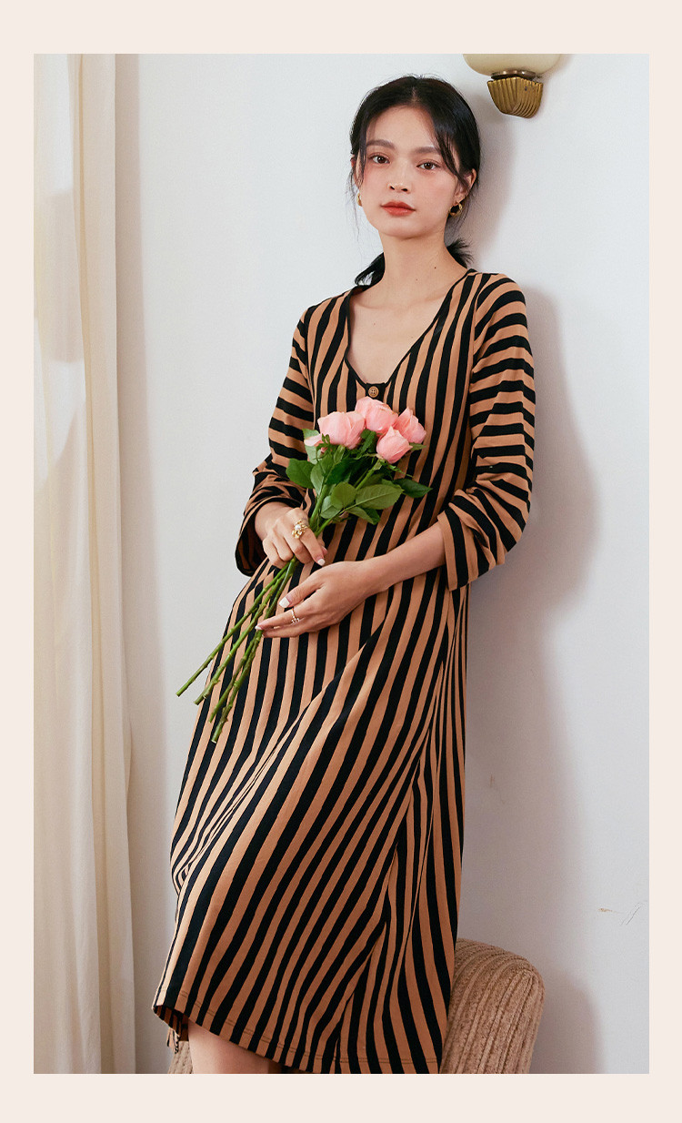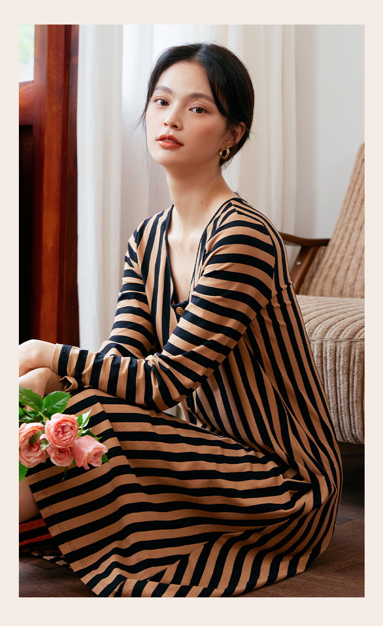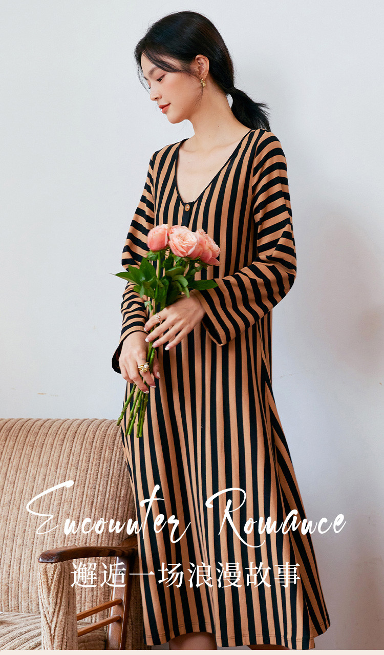 商品名称:【时尚条纹】法式轻奢长袖睡裙春秋款高级感女士睡衣家居服可外穿 626571